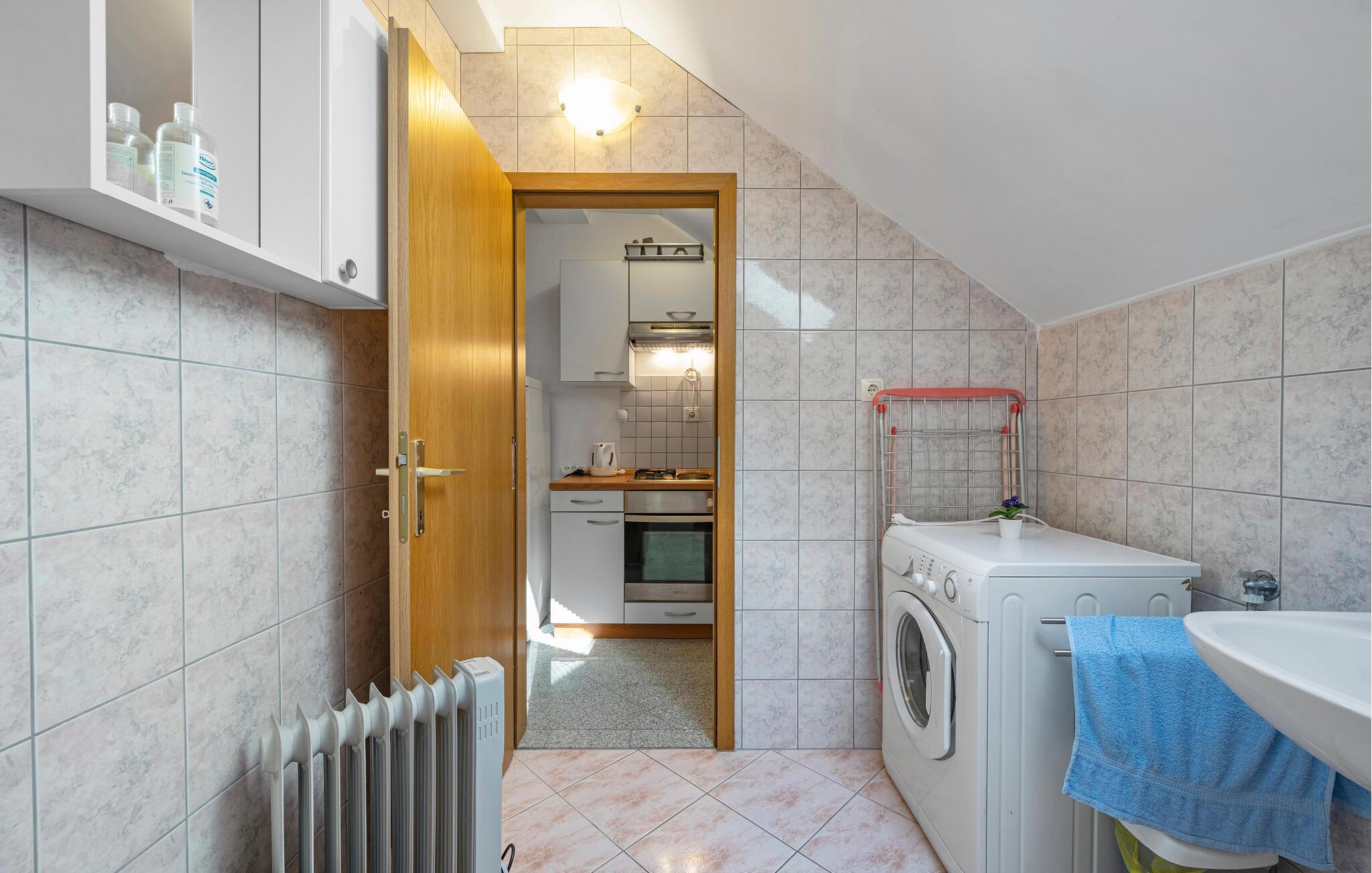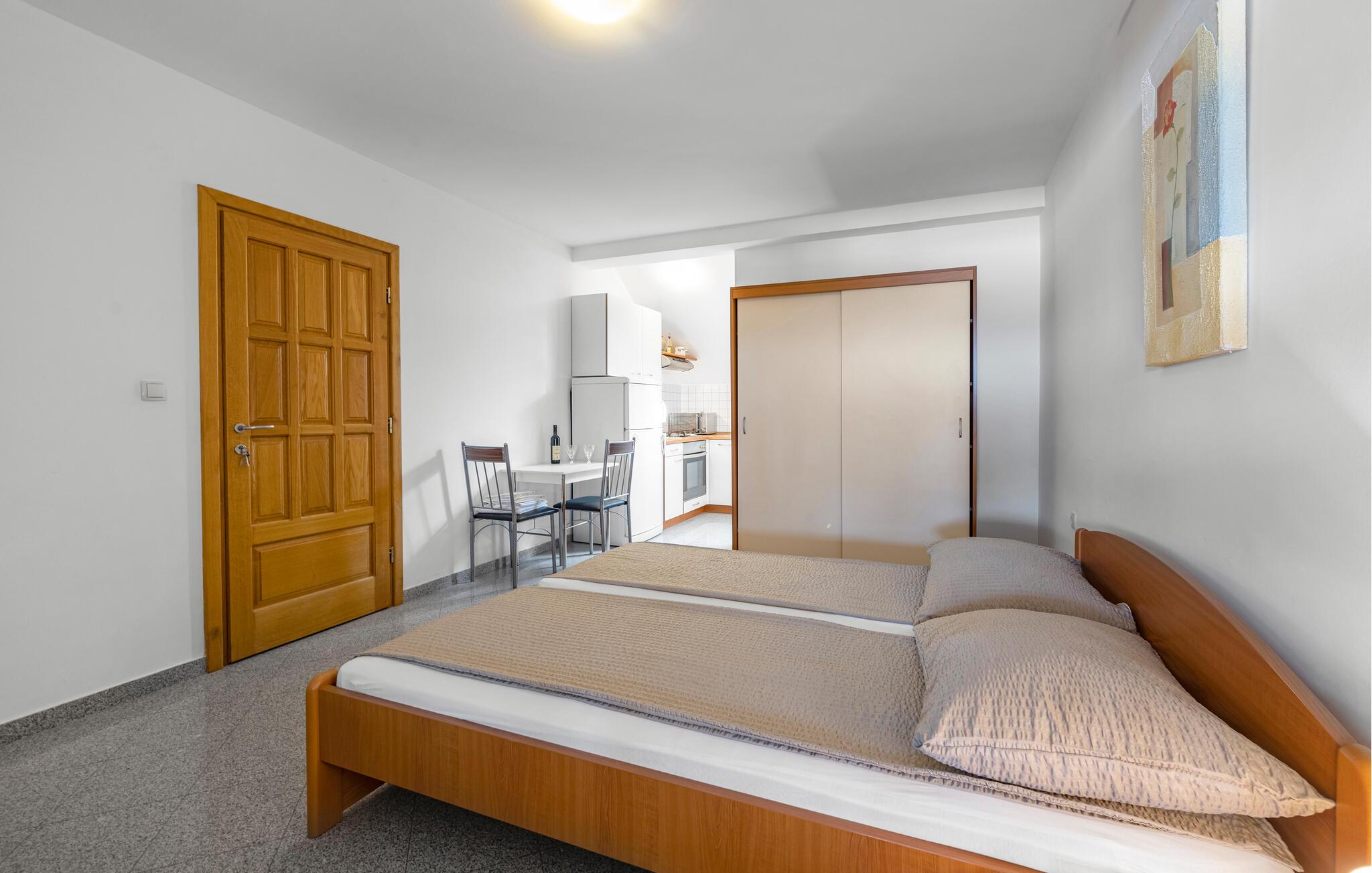 Glæd jer til en afslappende ferie i jeres ferielejlighed, som tilbyder en perfekt blanding af komfort og middelhavsliv. Tilbered lækre måltider i køkkenet, nyd hyggelige stunder ved spisebordet med et glas vin, og slap af efter en begivenhedsrig dag på den behagelige sofa med en film eller en god serie.