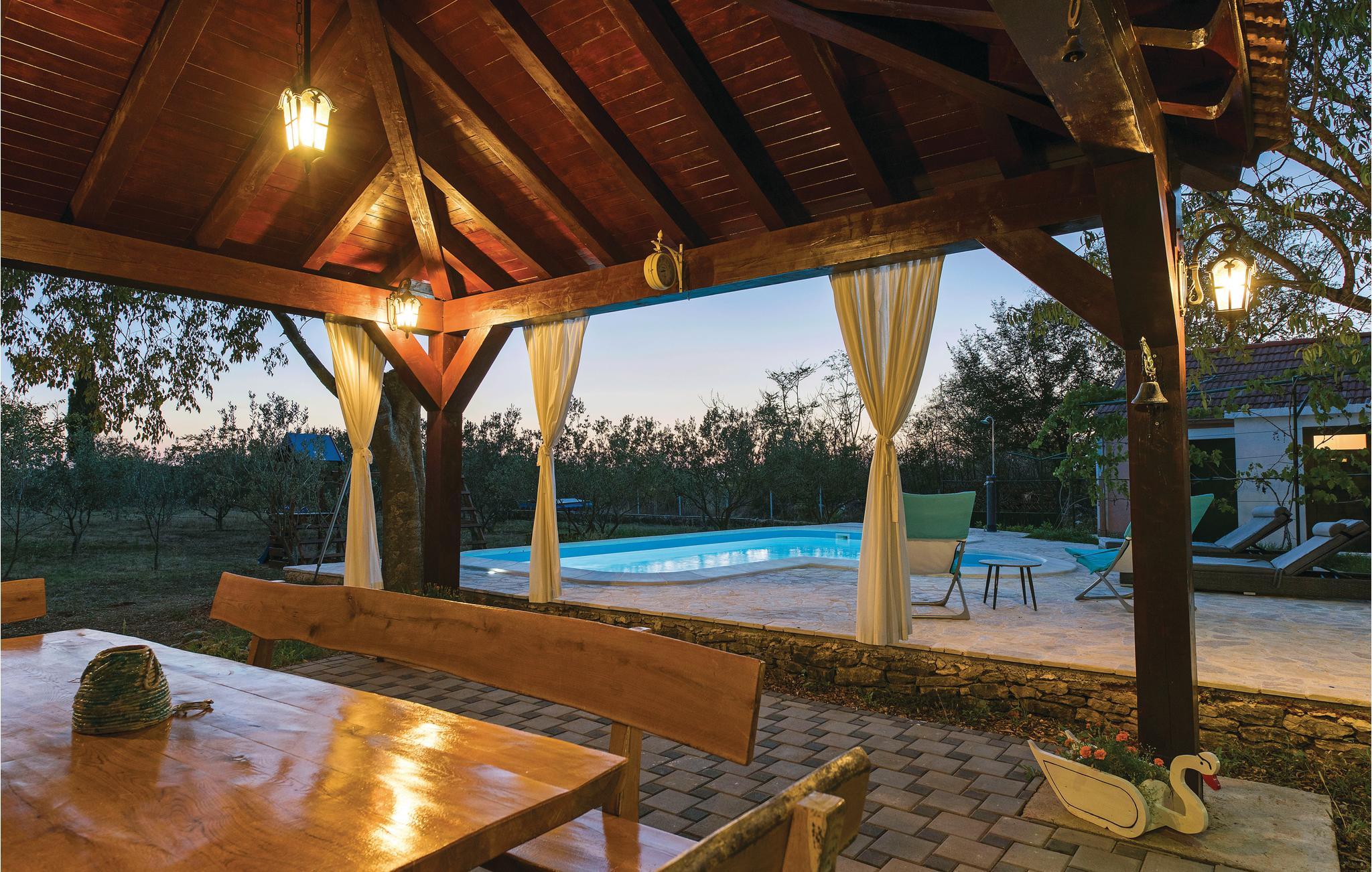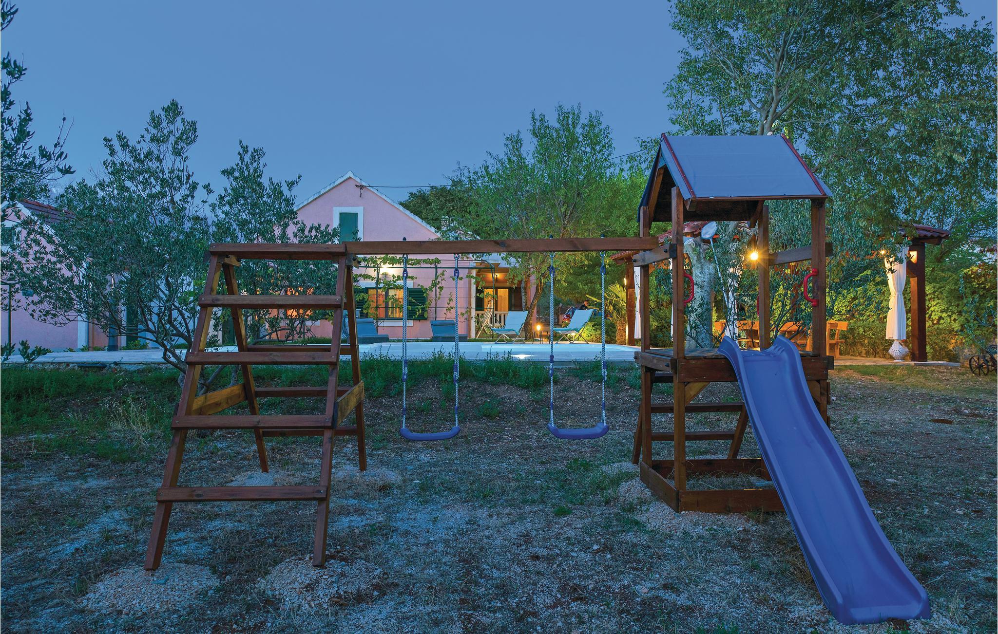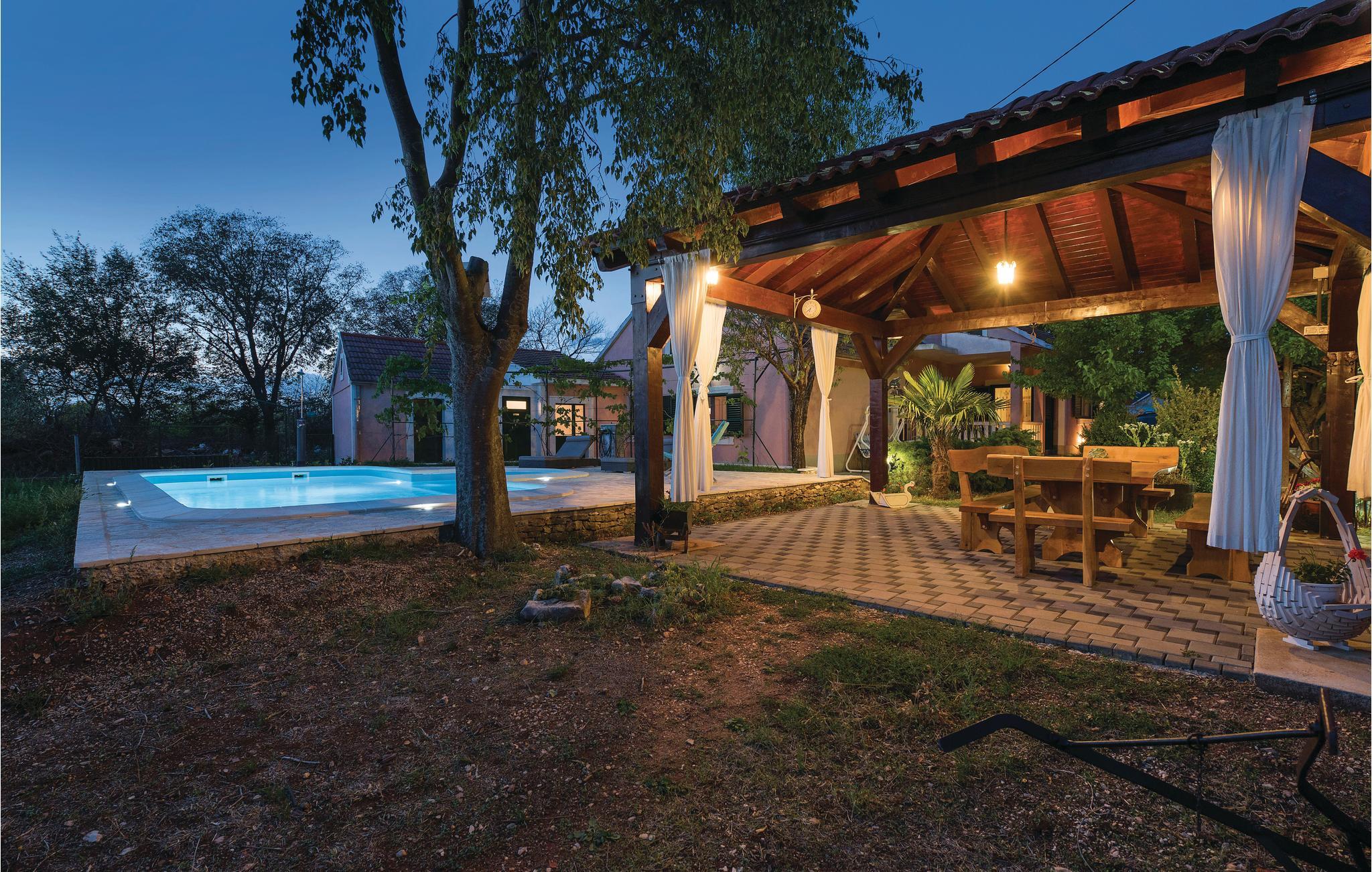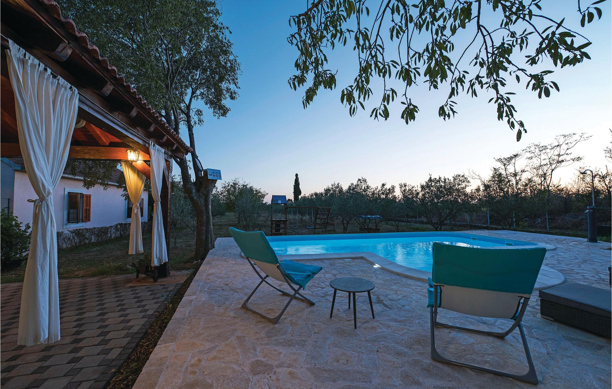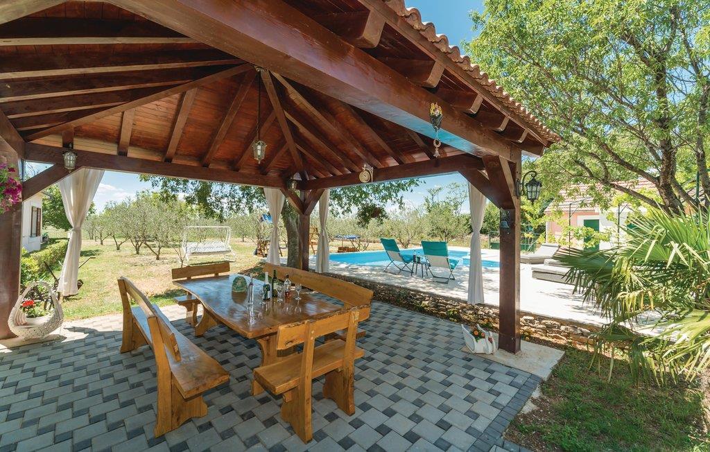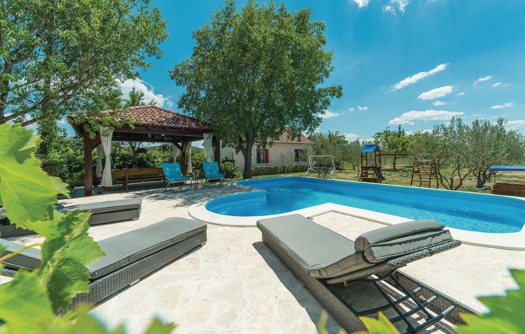 Dette helt traditionelle feriehus ligger i Šibeniks bagland, ikke langt fra den skønne nationalpark Krka. Tag en forfriskende svømmetur i jeres helt egen pool og lav mad til familien på husets grill og nyd det lækre resultat på den overdækkede terrasse. Her kommer børnene heller ikke til at kede sig. I regionen er der et fint net af cykelstier, I kan bl.a. cykle til nationalparken Krka. Bjerget Promina udfordrer de vandreglade der gerne vil en tur i højderne. Besøg også de skønne byer Zadar og Šibenik, som begge bugner af seværdigheder, underholdningsmuligheder og gastronomiske templer.