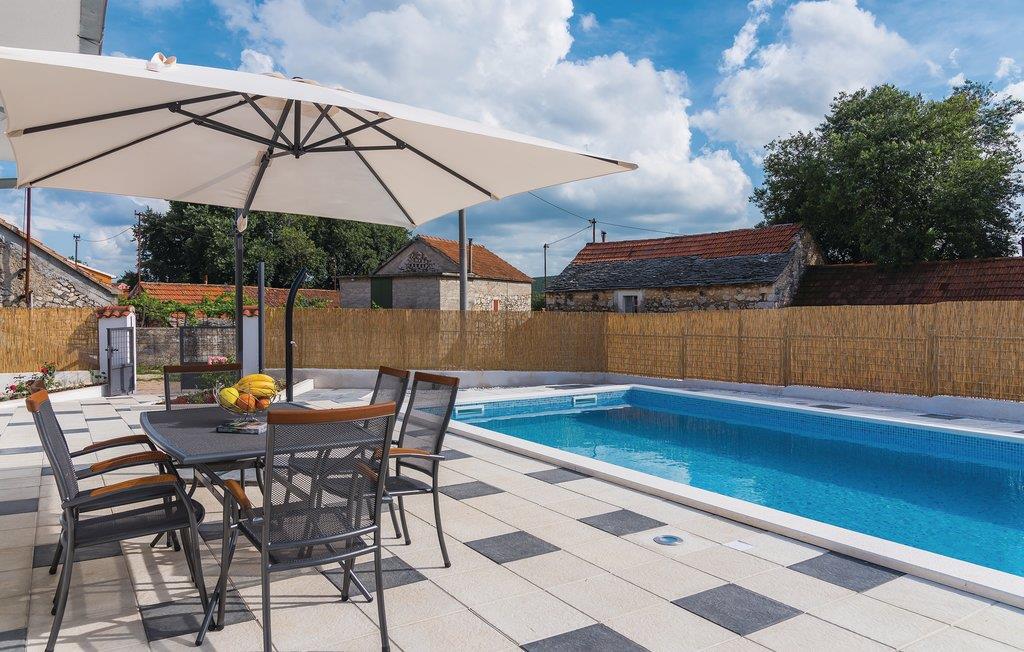 Omgivet af natur og den solforvænte mediterrane landskab ligger dette feriehus med helt privat pool. Den indhegnede have er ideel til jeres husdyr, som også er velkomne i dette enkelt og praktisk indrettede feriedomicil. Der er kun ti minutter i bil til den skønne nationalpark Krka. Nyd den uberørte natur og tag på udflugter på cykel eller gåben på de mange stier der snor sig gennem det bakkede landskab. I byen Šibenik er der dejligt livligt, her er det oplagt at se Den Hellige Jakobs katedral og Den Hellige Nikolas fæstning.