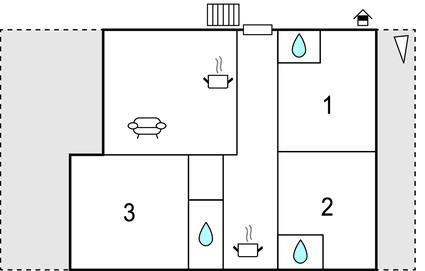 Badeværelse (nr. 3) - WC. Varmt og koldt vand. Bruser