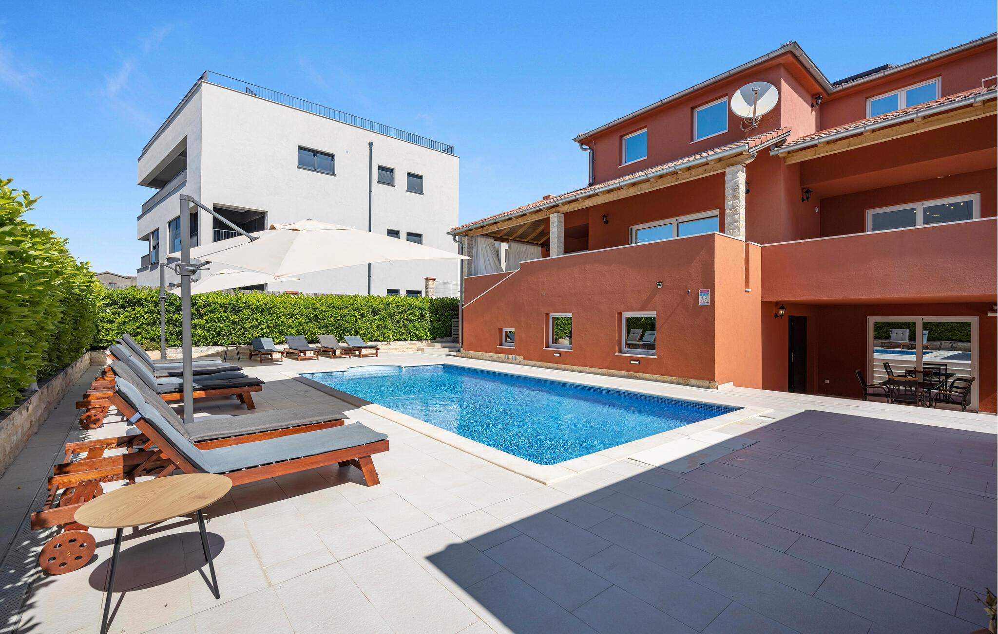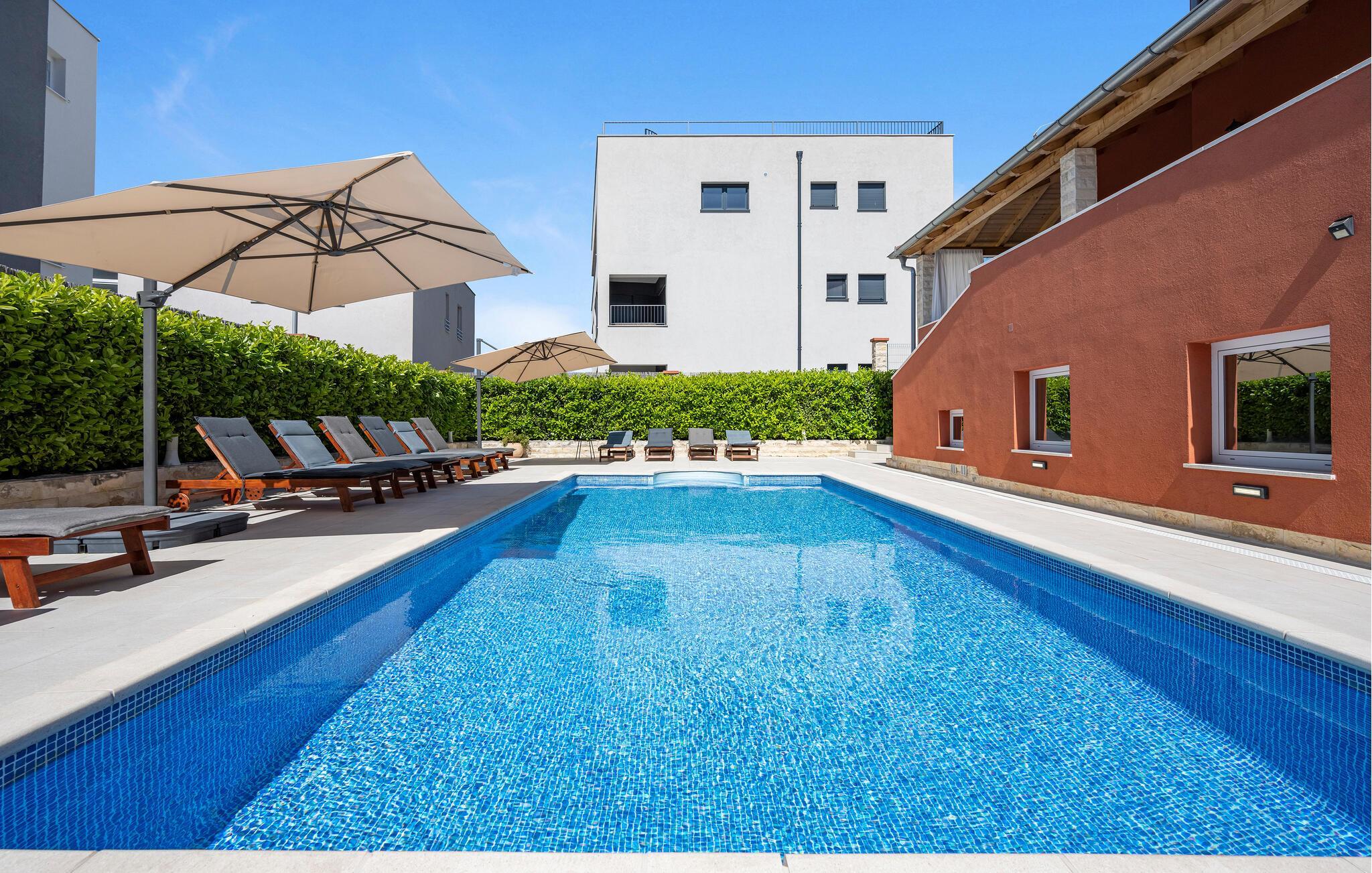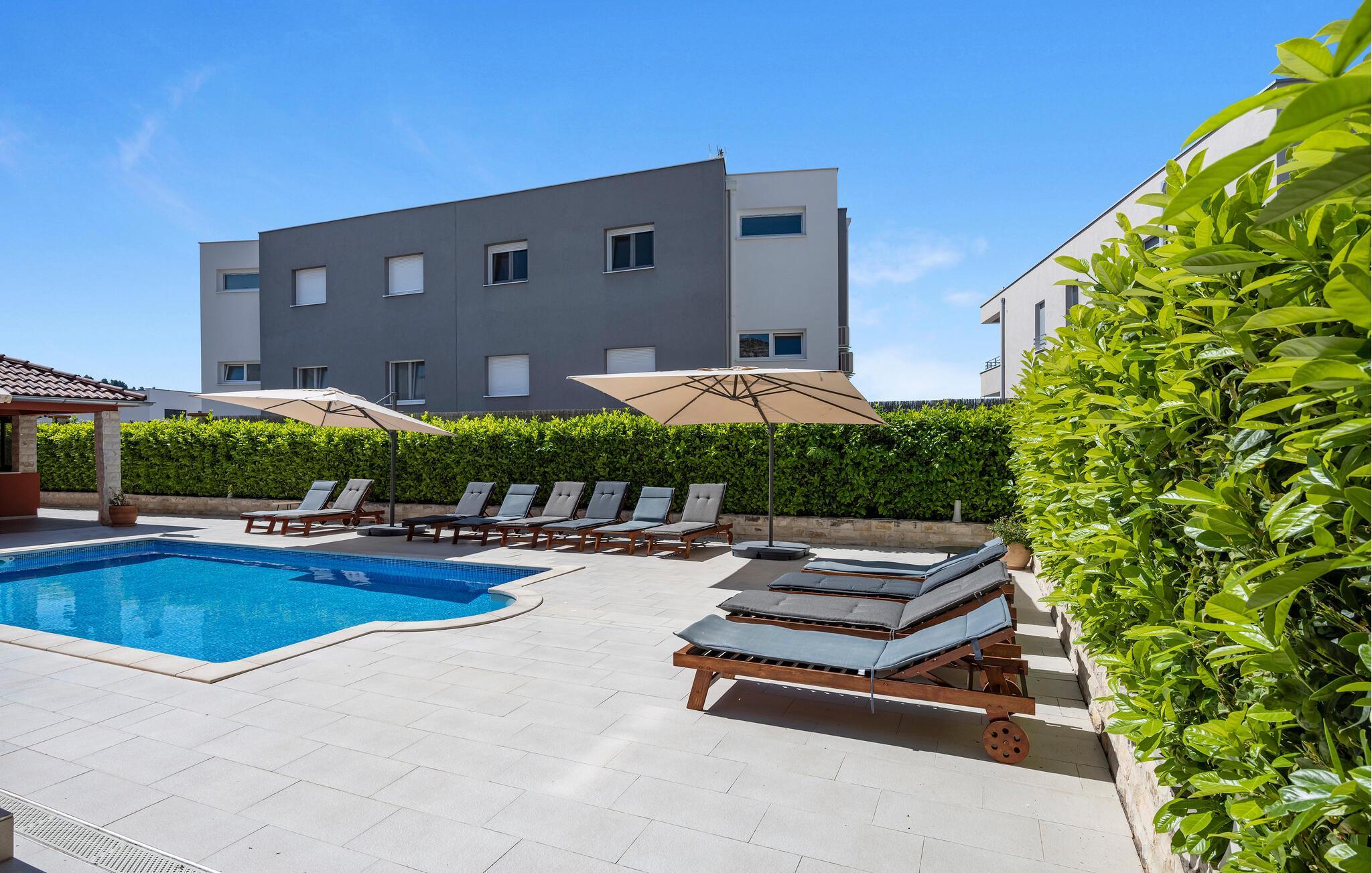 Forkæl jer selv med en solrig pause i dette rummelige feriehus med pool nær stranden.
