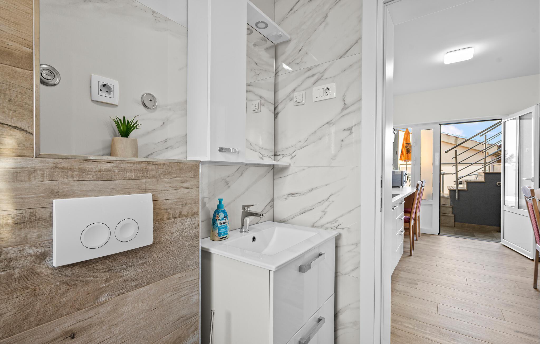 Denne ferielejlighed har en lys og venlig atmosfære. Den tilbyder en skøn oase, hvor I kombinerer en strandferie med spændende udflugter. Slap af og tilbered lækre retter i det åbne køkken, og sæt jer ved spisebordet. Planlæg jeres udflugter sammen, og slap af om aftenen med et brætspil eller stream en film.