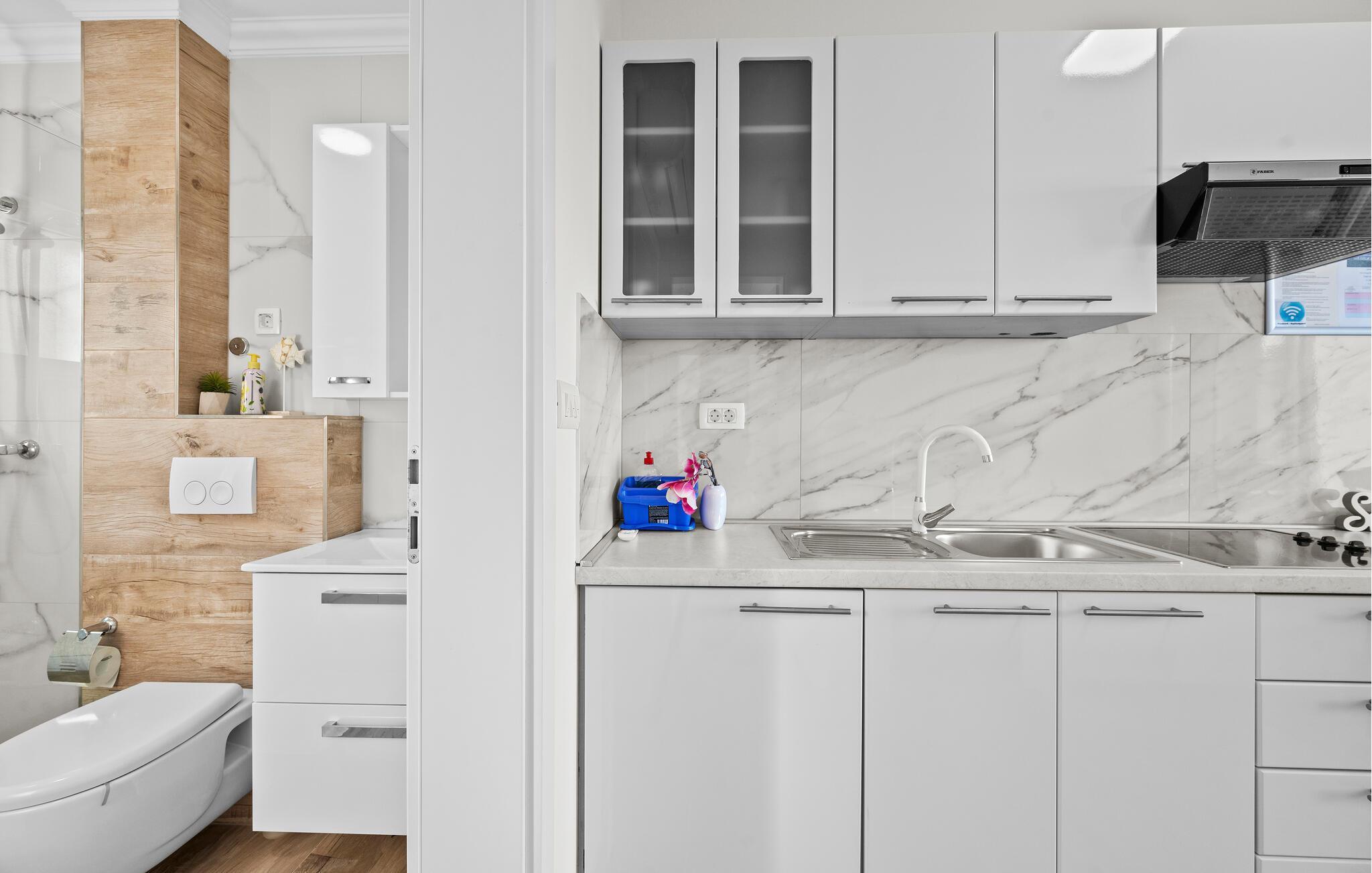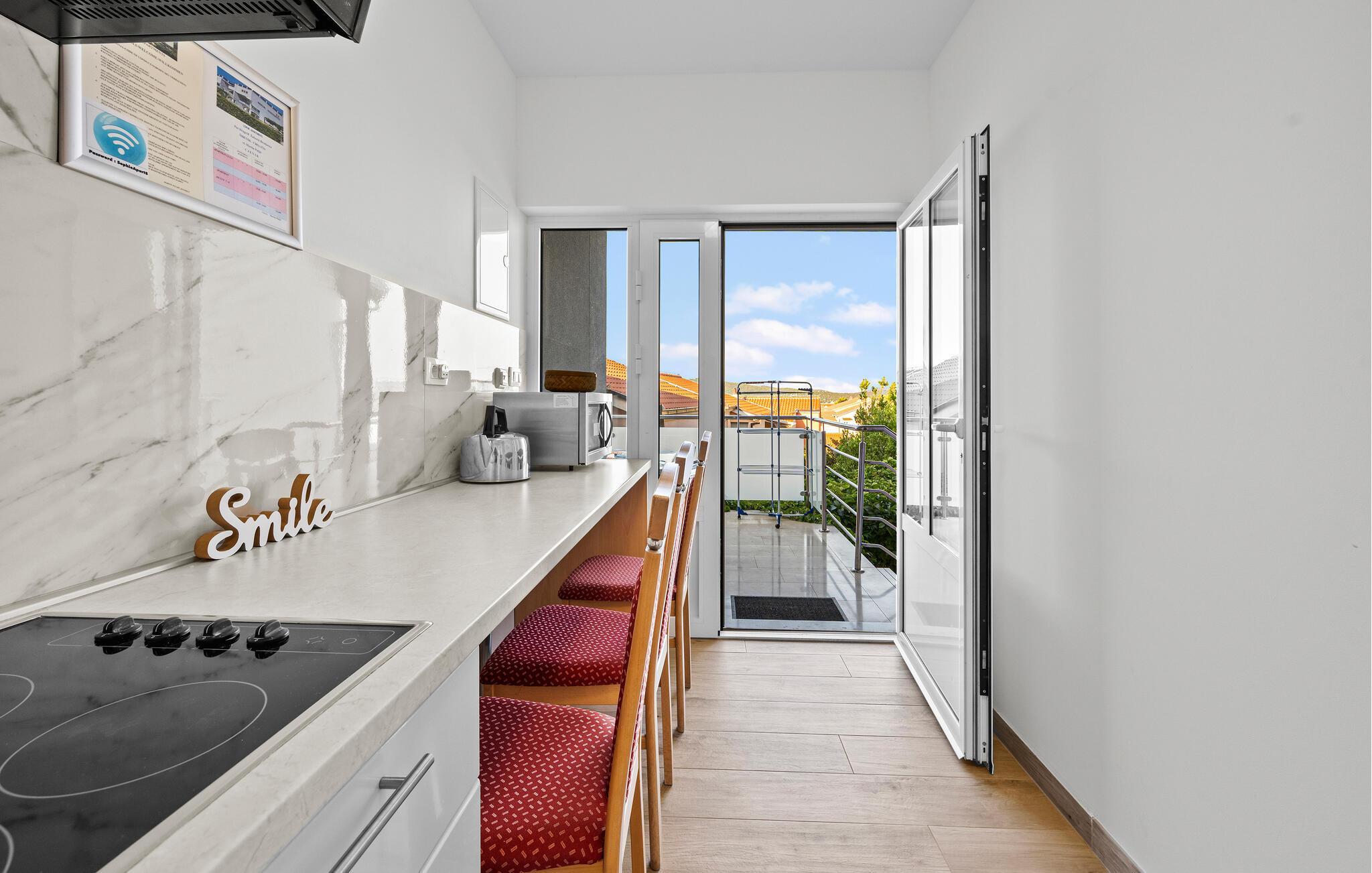 Velkommen til denne lyse og muntre ferielejlighed. Her kan I hygge jer med venner eller familie, mens I udforsker denne solbeskinnede region ved Adriaterhavet. Tilbered lækre måltider med friske råvarer fra markedet, planlæg jeres aktiviteter ved spisebordet, og afslut en lang dag under den blå himmel med en hyggelig spilleaften eller en film.