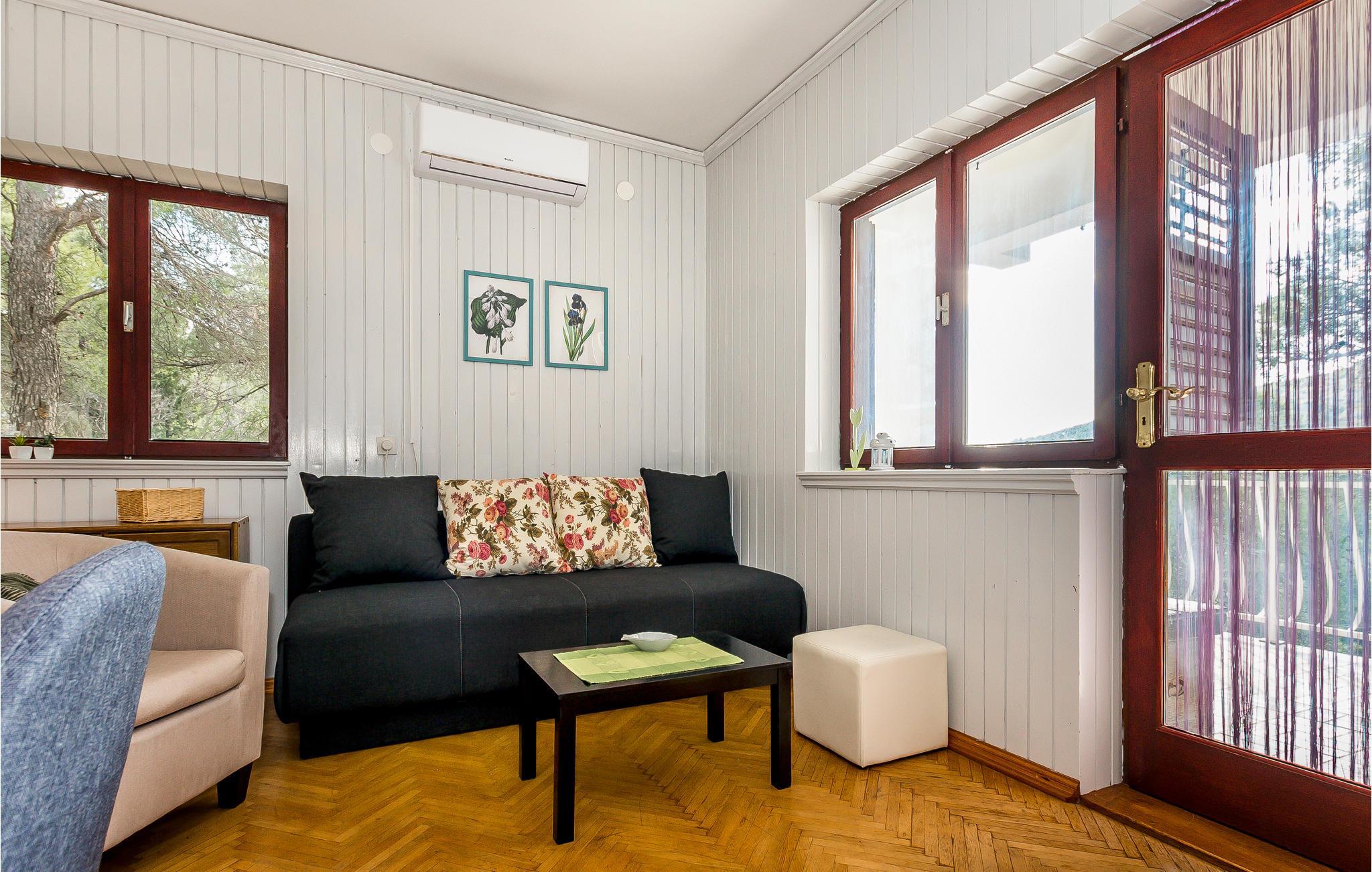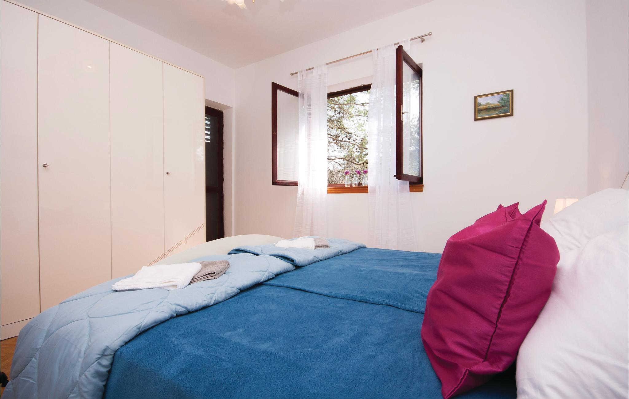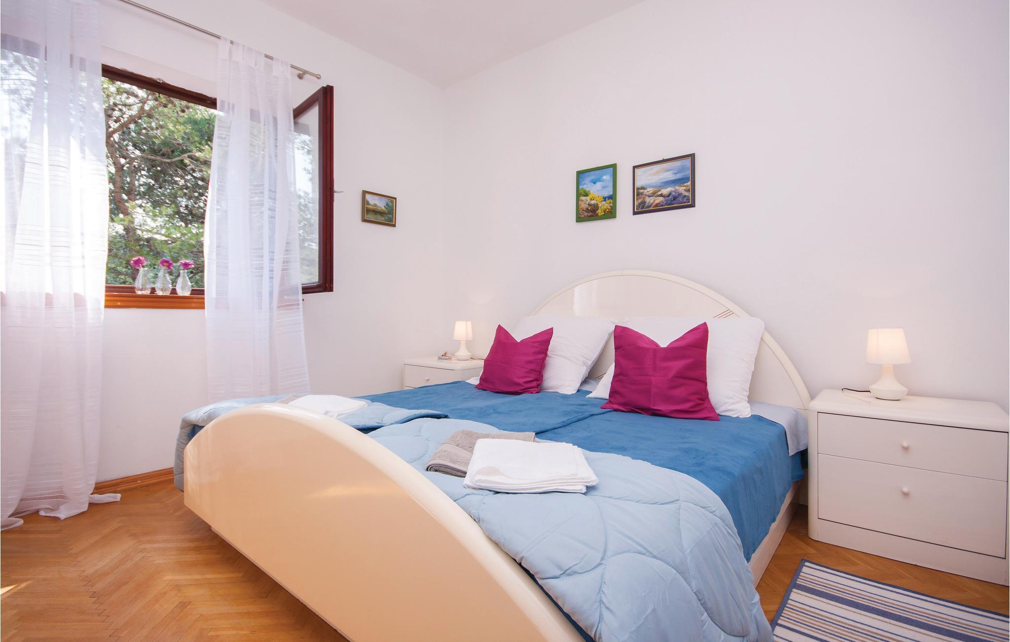 Denne skønt og praktisk indrettede ferielejlighed ligger omgivet af en velduftende pinjeskov, i den lille by Zaton ved Šibenik. Lejligheden ligger på første sal i en ejendom og har en terrasse, hvorfra I kan nyde en pragtfuld havudsigt. Her står grillen, hvor I kan lave nem og lækker feriemad. Besøg den historiske by Šibenik med en rig kulturhistorie, og gå afslappede ture langs strandpromenaden. Tag også på tur til nationalparkerne Krka og Kornati-øerne, hvor der venter jer uforglemmelige naturskønheder.
