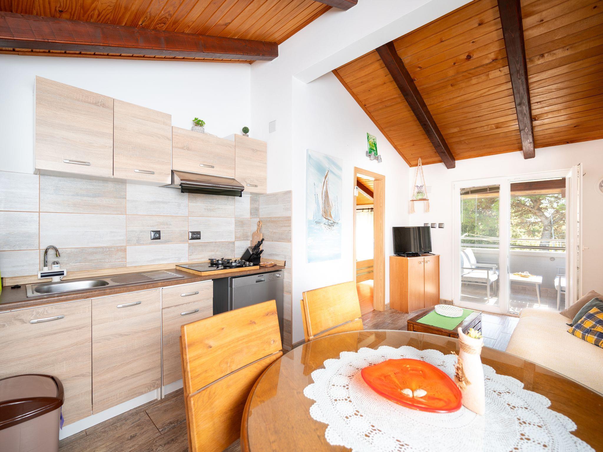 Ferienwohnung bietet Platz für 4 Gäste. Die Betten sind in Schlafzimmern, die es 1 gibt, und in Wohnzimmer, innerhalb einer Gesamtfläche von 39m2, angeordnet. Die Gäste haben eine eigene Terrasse zur Verfügung, auf der sie in warmen Sommernächten genießen können. Es ist erlaubt, Speisen auf dem Gemeinschafts-Grill vorzubereiten. IM PREIS INBEGRIFFEN: Kurtaxe, Endreinigung, Klimatisierung, Internet, Wäschewaschen, Bootsanlegeplatz, Bügeleisen, Bügelbrett, Föhn. Die Verfügbarkeit zusätzlicher Dienstleistungen in Ihrem reservierten Termin und die Preise derselben (falls nicht aufgeführt) müssen im Voraus überprüft werden. Zusätzliche Dienstleistungen die in der Zahlungsaufforderung nicht aufgeführt sind werden direkt beim Vermieter bezahlt, angenommen der Gast nutzt auch diese. Ermäßigung auf den Grundpreis: Gratistag 14=13 (bei einem Aufenthalt von 14 Tagen oder mehr erhalten Sie einen Gratistag für den Aufenthalt bis 31.12.26).