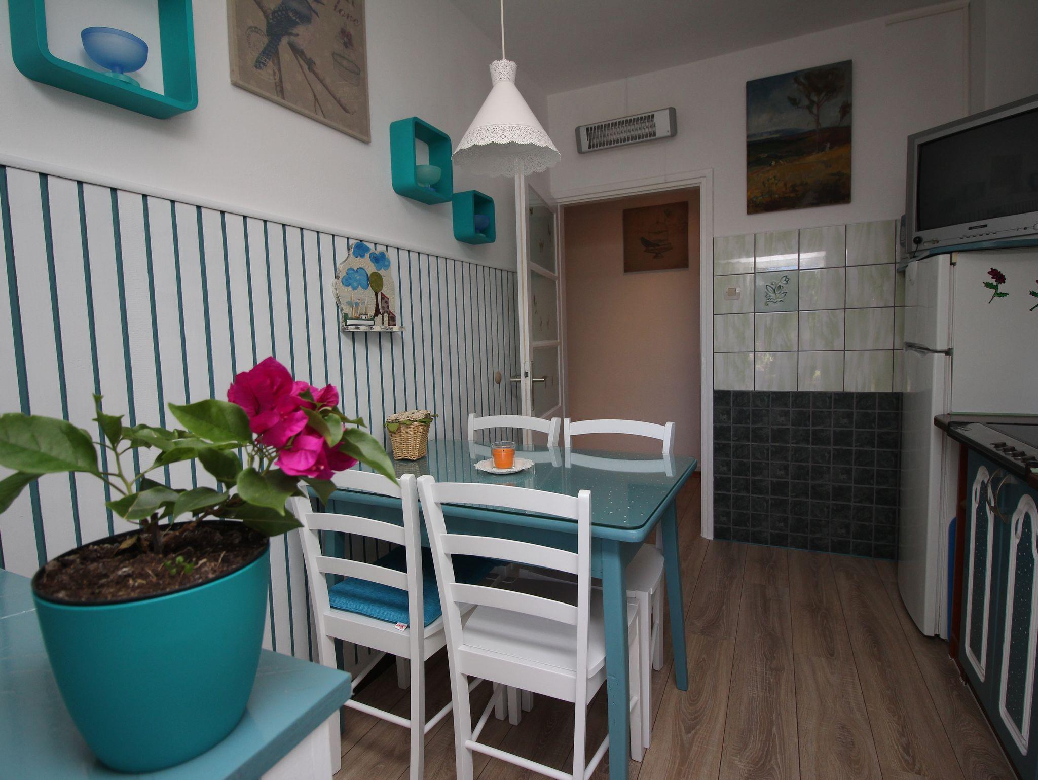 Ferienwohnung bietet Platz für 4 Gäste. Die Betten sind in Schlafzimmern, die es 2 gibt, innerhalb einer Gesamtfläche von 59m2, angeordnet. Die Gäste haben eine eigene Terrasse zur Verfügung, auf der sie in warmen Sommernächten genießen können. Das Apartment bietet Meerblick. Es ist erlaubt, Speisen auf dem Gemeinschafts-Grill vorzubereiten. In der Unterkunftseinheit besteht die Möglichkeit des Mitbringens von Haustieren gegen Aufpreis. Durch die Terrasse der gebuchten Unterkunftseinheit gehen auch andere Gäste oder Vermieter. IM PREIS INBEGRIFFEN: Kurtaxe, Endreinigung, Klimatisierung, Parkplatz, Internet. UNVERBINDLICHE ZUSÄTZLICHE KOSTEN: Haustiere (10,00 € pro Nacht). Die Verfügbarkeit zusätzlicher Dienstleistungen in Ihrem reservierten Termin und die Preise derselben (falls nicht aufgeführt) müssen im Voraus überprüft werden. Zusätzliche Dienstleistungen die in der Zahlungsaufforderung nicht aufgeführt sind werden direkt beim Vermieter bezahlt, angenommen der Gast nutzt auch diese.