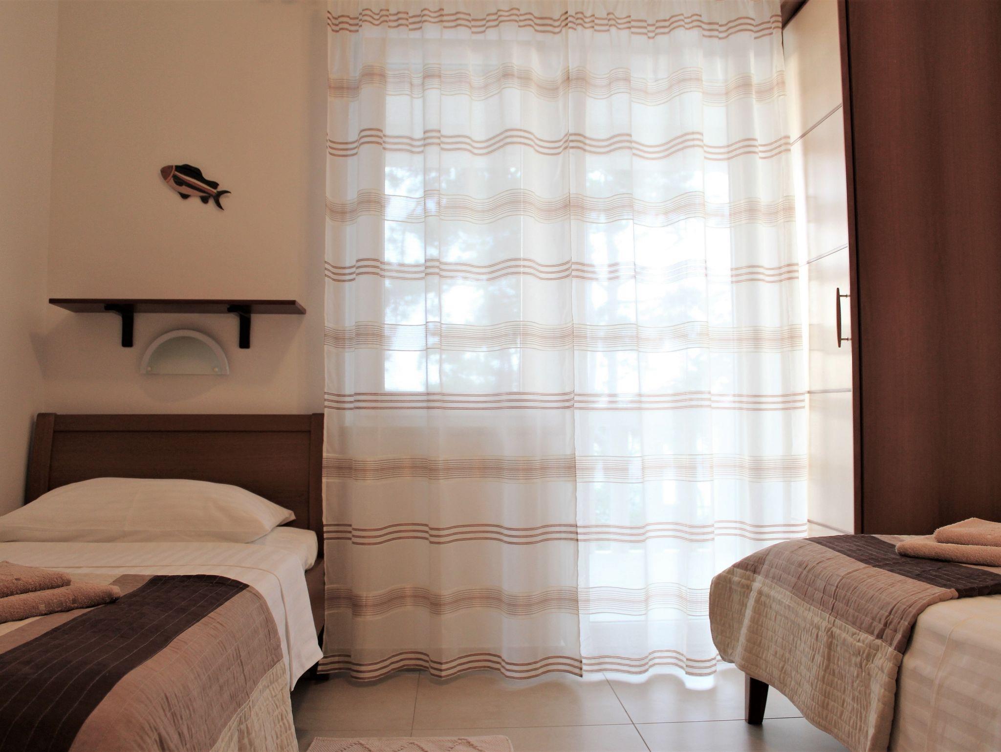 Ferienwohnung bietet Platz für 4 Gäste. Die Betten sind in Schlafzimmern, die es 2 gibt, innerhalb einer Gesamtfläche von 46m2, angeordnet. Die Gäste haben eine eigene Terrasse zur Verfügung, auf der sie in warmen Sommernächten genießen können. Das Apartment bietet Meerblick. Es ist erlaubt, Speisen auf dem Gemeinschafts-Grill vorzubereiten. IM PREIS INBEGRIFFEN: Kurtaxe, Endreinigung, Klimatisierung, Parkplatz, Internet, Bügeleisen, Bügelbrett, Föhn. Die Verfügbarkeit zusätzlicher Dienstleistungen in Ihrem reservierten Termin und die Preise derselben (falls nicht aufgeführt) müssen im Voraus überprüft werden. Zusätzliche Dienstleistungen die in der Zahlungsaufforderung nicht aufgeführt sind werden direkt beim Vermieter bezahlt, angenommen der Gast nutzt auch diese.