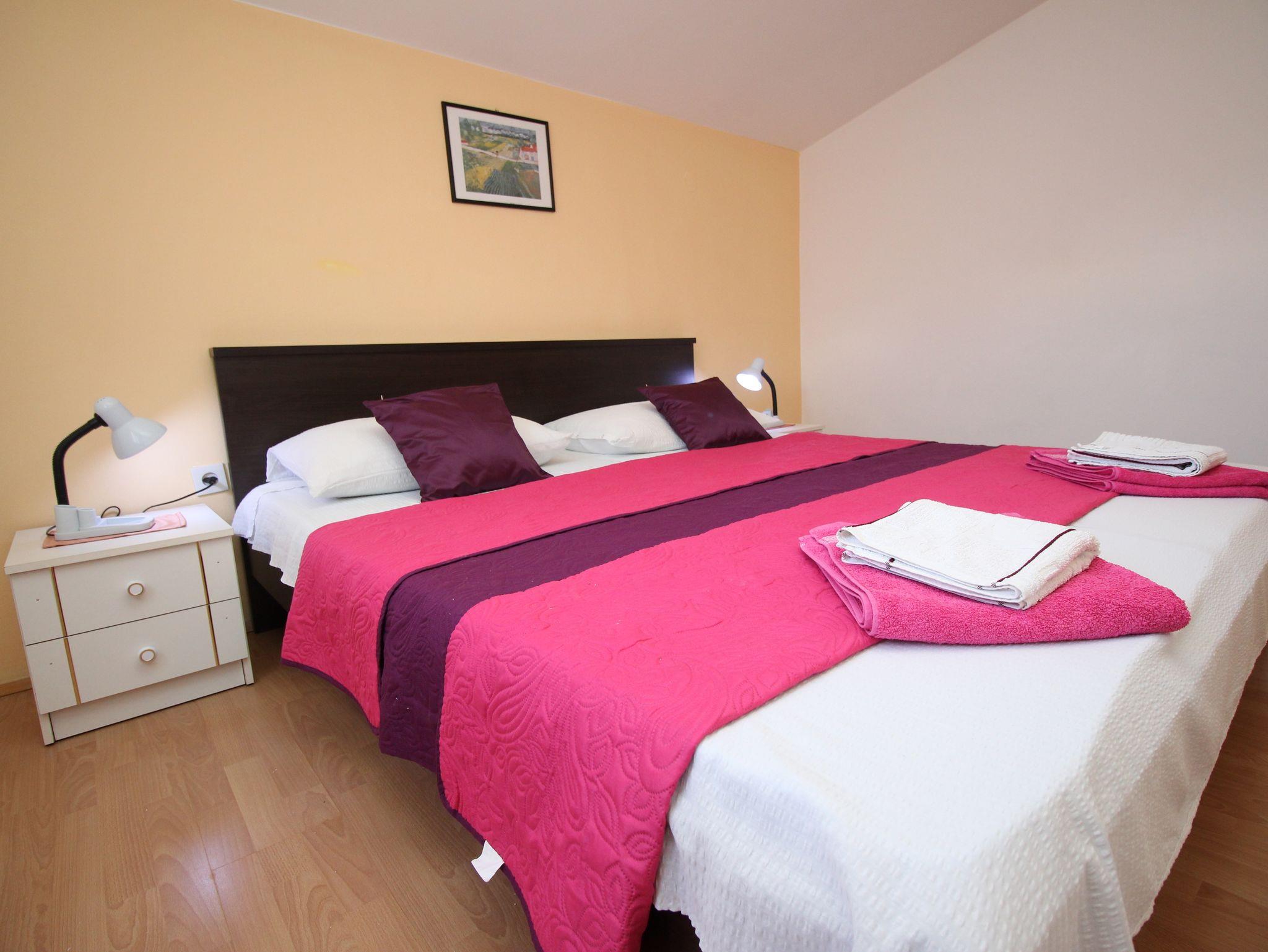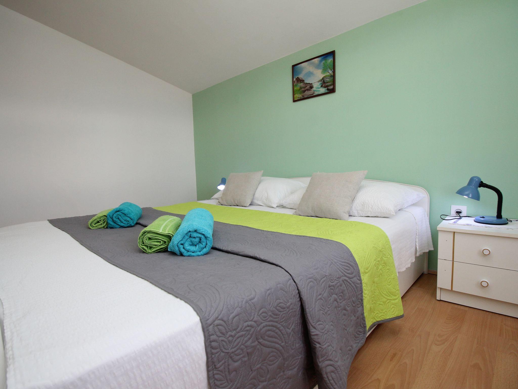 Ferienwohnung bietet Platz für 6 Gäste. Die Betten sind in Schlafzimmern, die es 3 gibt, innerhalb einer Gesamtfläche von 65m2, angeordnet. Die Gäste haben eine eigene Terrasse zur Verfügung, auf der sie in warmen Sommernächten genießen können. Das Apartment bietet Meerblick. Es ist erlaubt, Speisen auf dem Gemeinschafts-Grill vorzubereiten. In der Unterkunftseinheit besteht die Möglichkeit des Mitbringens von Haustieren gegen Aufpreis. IM PREIS INBEGRIFFEN: Kurtaxe, Endreinigung, Klimatisierung, Parkplatz, Internet. UNVERBINDLICHE ZUSÄTZLICHE KOSTEN: Haustiere (12,00 € pro Nacht). Die Verfügbarkeit zusätzlicher Dienstleistungen in Ihrem reservierten Termin und die Preise derselben (falls nicht aufgeführt) müssen im Voraus überprüft werden. Zusätzliche Dienstleistungen die in der Zahlungsaufforderung nicht aufgeführt sind werden direkt beim Vermieter bezahlt, angenommen der Gast nutzt auch diese.