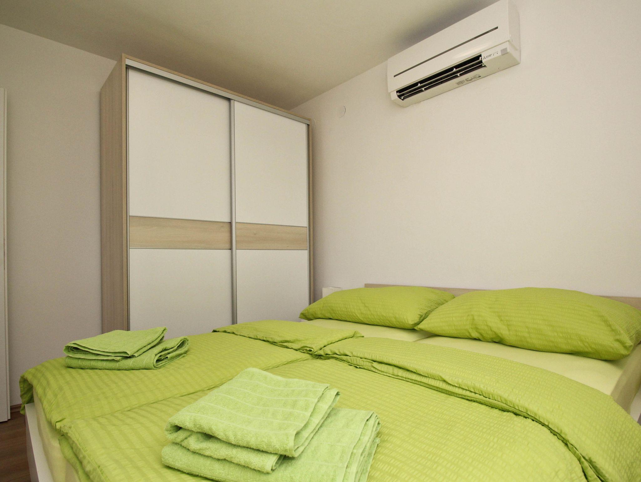 Ferienwohnung bietet Platz für 6 Gäste. Die Betten sind in Schlafzimmern, die es 2 gibt, und in Wohnzimmer, innerhalb einer Gesamtfläche von 47m2, angeordnet. Die Gäste haben einen eigenen Balkon zur Verfügung, auf der sie in warmen Sommernächten genießen können. Das Apartment bietet Meerblick. Es ist erlaubt, Speisen auf dem Gemeinschafts-Grill vorzubereiten. IM PREIS INBEGRIFFEN: Kurtaxe, Endreinigung, Klimatisierung, Parkplatz, Internet. Die Verfügbarkeit zusätzlicher Dienstleistungen in Ihrem reservierten Termin und die Preise derselben (falls nicht aufgeführt) müssen im Voraus überprüft werden. Zusätzliche Dienstleistungen die in der Zahlungsaufforderung nicht aufgeführt sind werden direkt beim Vermieter bezahlt, angenommen der Gast nutzt auch diese.