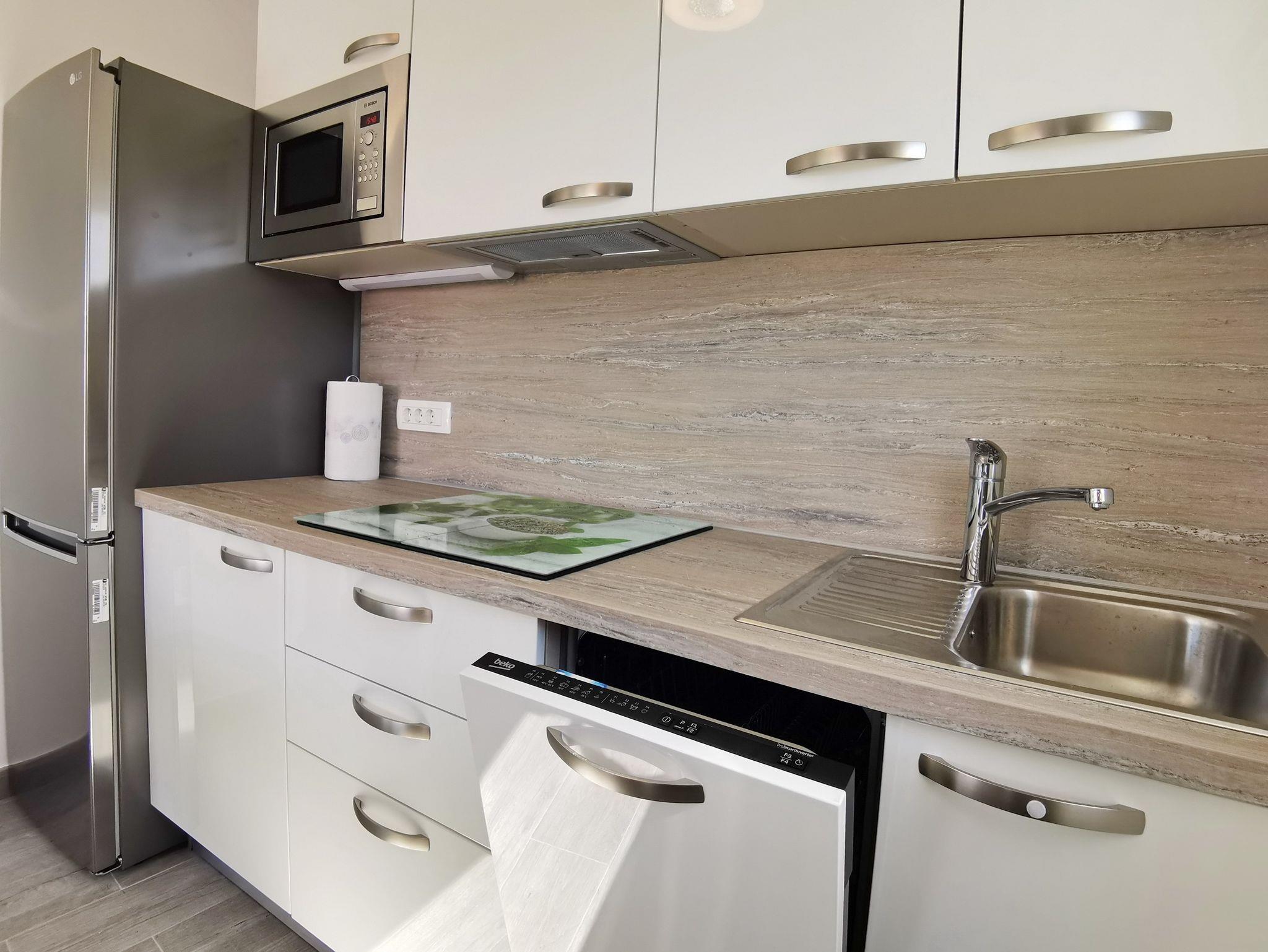 Studio bietet Platz für 2 Gäste. Die Betten sind in Wohnzimmer, innerhalb einer Gesamtfläche von 25m2, angeordnet. Die Gäste haben eine eigene Terrasse zur Verfügung, auf der sie in warmen Sommernächten genießen können. Das Studio-Apartment bietet Meerblick. Es ist erlaubt, Speisen auf dem Gemeinschafts-Grill vorzubereiten. IM PREIS INBEGRIFFEN: Kurtaxe, Endreinigung, Klimatisierung, Parkplatz, Internet, Föhn, tragbarer Grill. Die Verfügbarkeit zusätzlicher Dienstleistungen in Ihrem reservierten Termin und die Preise derselben (falls nicht aufgeführt) müssen im Voraus überprüft werden. Zusätzliche Dienstleistungen die in der Zahlungsaufforderung nicht aufgeführt sind werden direkt beim Vermieter bezahlt, angenommen der Gast nutzt auch diese.