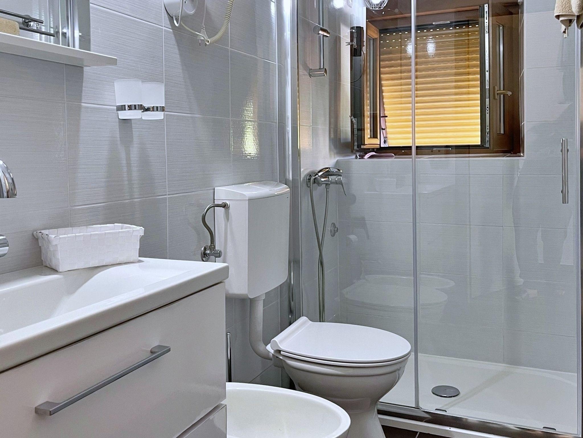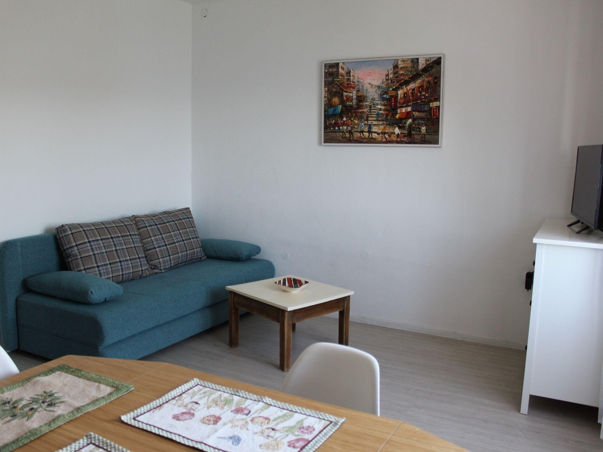 Ferienwohnung bietet Platz für 4 Gäste. Die Betten sind in Schlafzimmern, die es 1 gibt, und in Wohnzimmer, innerhalb einer Gesamtfläche von 40m2, angeordnet. Die Gäste haben eine eigene Terrasse zur Verfügung, auf der sie in warmen Sommernächten genießen können. Das Apartment bietet Meerblick. Es ist erlaubt, Speisen auf dem Gemeinschafts-Grill vorzubereiten. IM PREIS INBEGRIFFEN: Kurtaxe, Endreinigung, Klimatisierung, Parkplatz, Internet, Föhn. Die Verfügbarkeit zusätzlicher Dienstleistungen in Ihrem reservierten Termin und die Preise derselben (falls nicht aufgeführt) müssen im Voraus überprüft werden. Zusätzliche Dienstleistungen die in der Zahlungsaufforderung nicht aufgeführt sind werden direkt beim Vermieter bezahlt, angenommen der Gast nutzt auch diese.