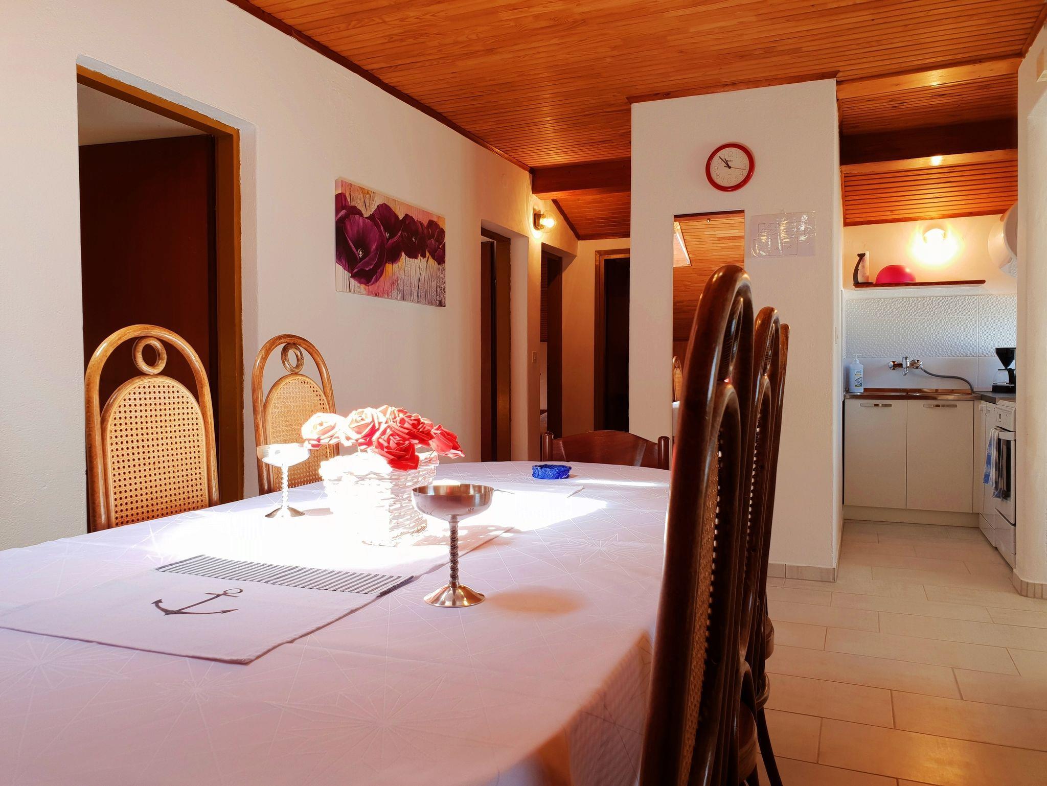 Ferienwohnung bietet Platz für 7 Gäste. Die Betten sind in Schlafzimmern, die es 3 gibt, innerhalb einer Gesamtfläche von 67m2, angeordnet. Die Gäste haben eine eigene Terrasse zur Verfügung, auf der sie in warmen Sommernächten genießen können. Das Apartment bietet Meerblick. Für vollen Genuss und Entspannung gibt es einen privaten Grill für Gäste dieser Unterkunft. IM PREIS INBEGRIFFEN: Kurtaxe, Endreinigung, Klimatisierung, Parkplatz, Internet, Bügeleisen, Bügelbrett, Föhn. Die Verfügbarkeit zusätzlicher Dienstleistungen in Ihrem reservierten Termin und die Preise derselben (falls nicht aufgeführt) müssen im Voraus überprüft werden. Zusätzliche Dienstleistungen die in der Zahlungsaufforderung nicht aufgeführt sind werden direkt beim Vermieter bezahlt, angenommen der Gast nutzt auch diese.