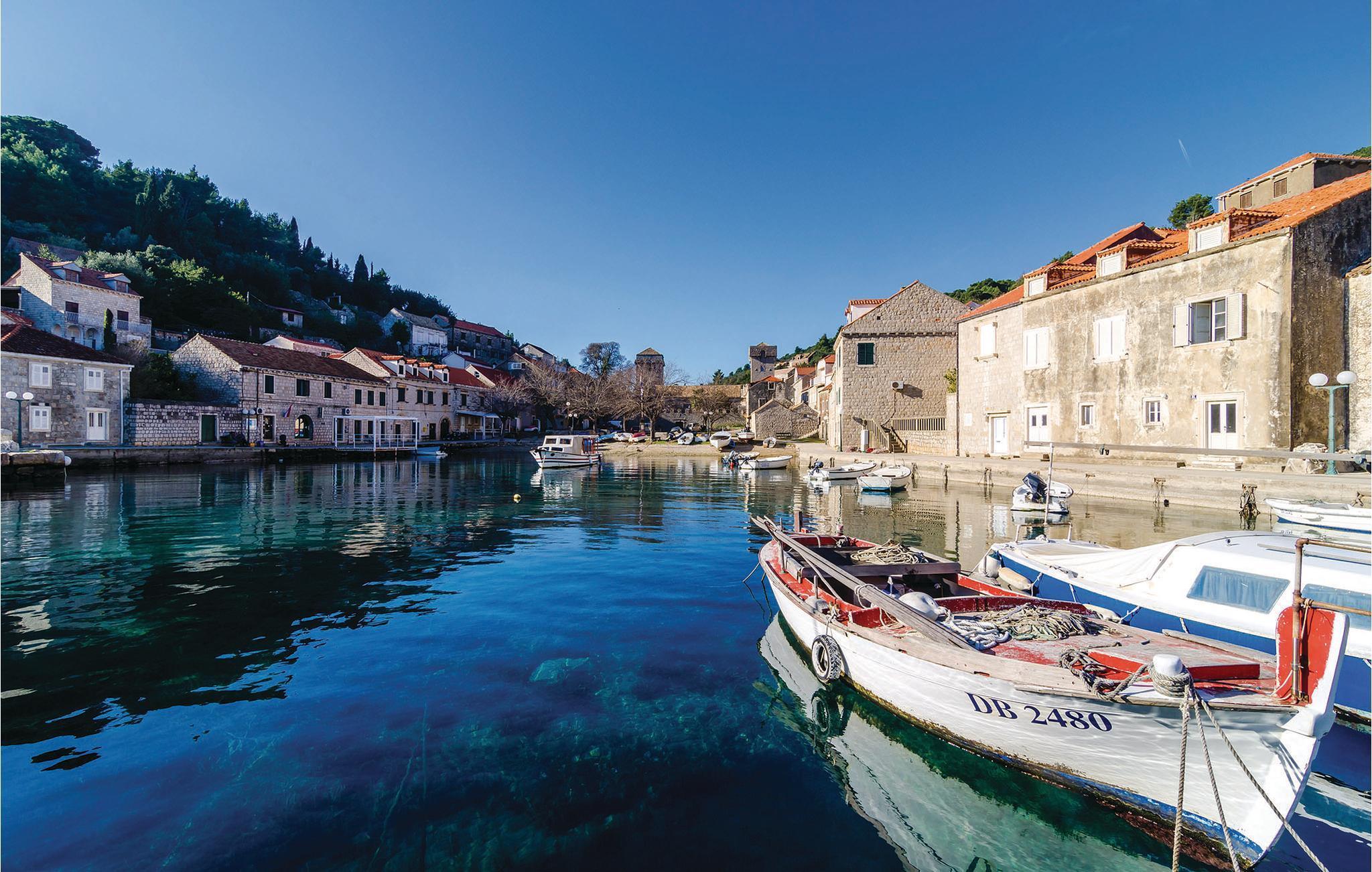 Hold jeres næste ferie i skønne omgivelser i en fortryllende mediterran atmosfære med mange solskinstimer og lune sommervinde. Bo i Sudurad, på øen Sipan, blot 30 m fra havet og stranden. Øen er kendt for sine mange figentræer, kendt vinsorter og en underskøn natur. De fire lejligheder er forbundet med terrasser og udendørs trapper. Et særligt stort plus er huset terrasse med udendørs pool og en betagende udsigt over havet. I kan lave lækker og enkel grillmad på trækulsgrillen der står på terrassen i stueplan. I højsæsonen om sommeren er der færgeforbindelse til øen mellem fem og seks gange dagligt.