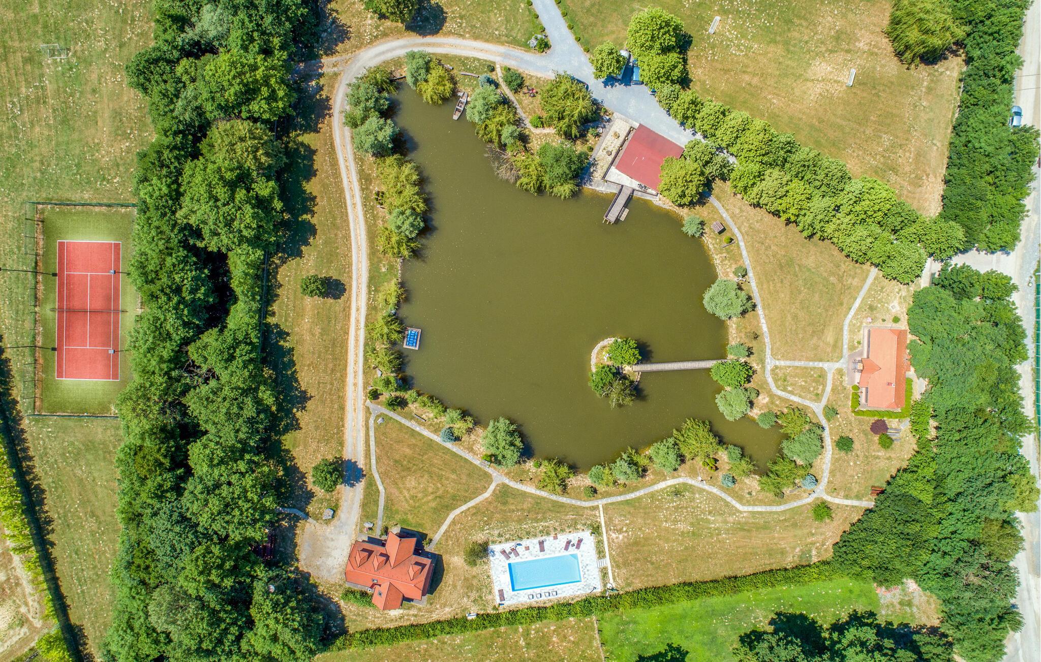 Den store grund tilbyder alt, hvad skal bruge for en afslappende tid udendørs. snup en frisk dukkert i den rummelige fælles pool, genoplad jeres batterier, mens I solbader, eller find et idyllisk sted at læse ved søen. Nyd en udendørs picnic, spil badminton eller socialiser ved den murede grill.