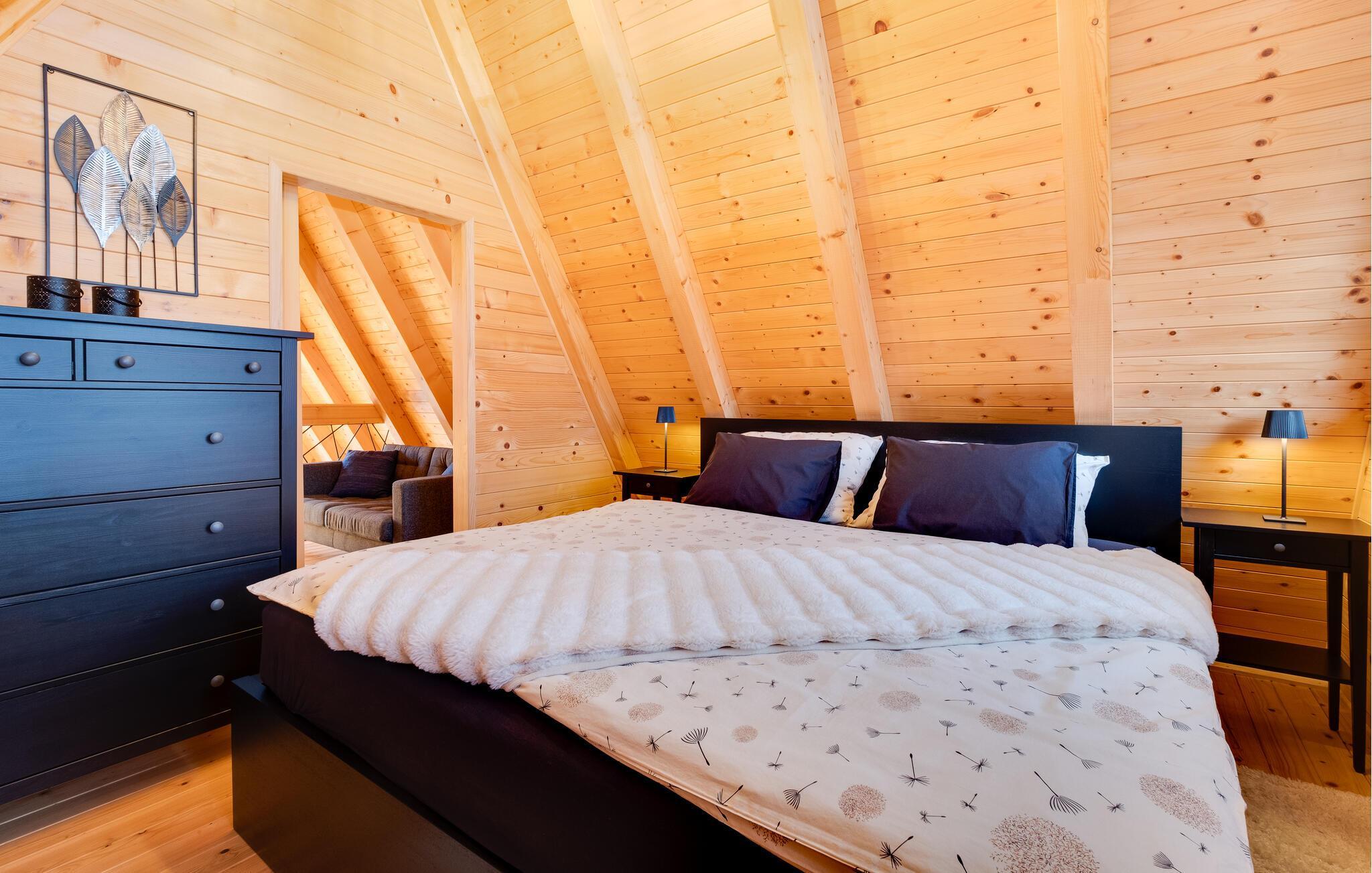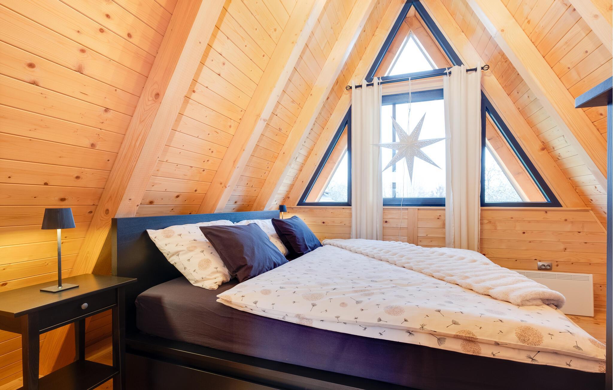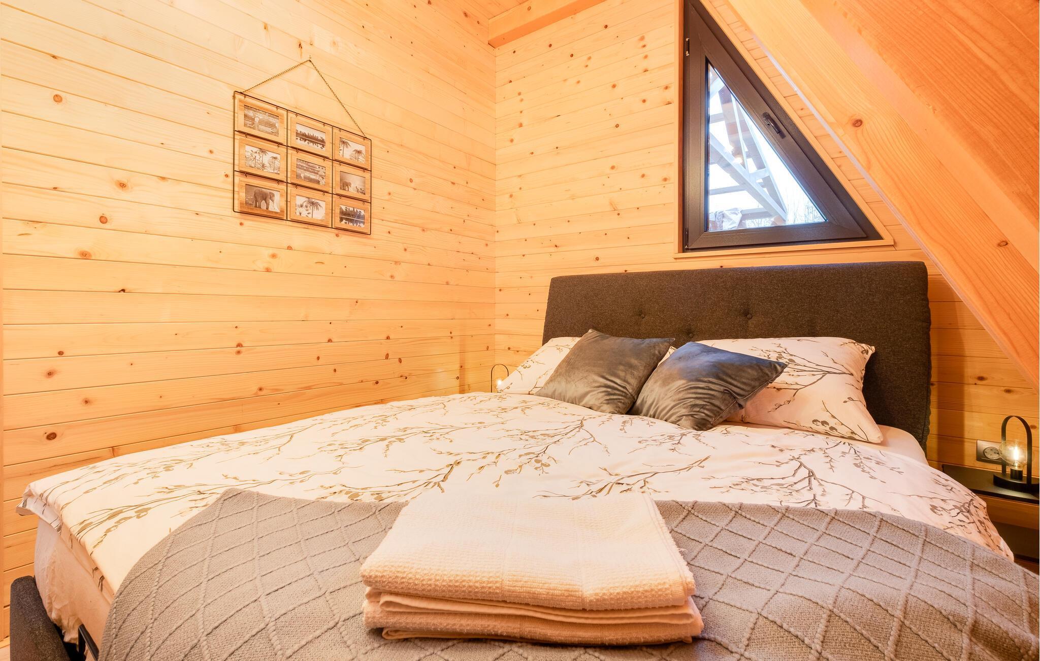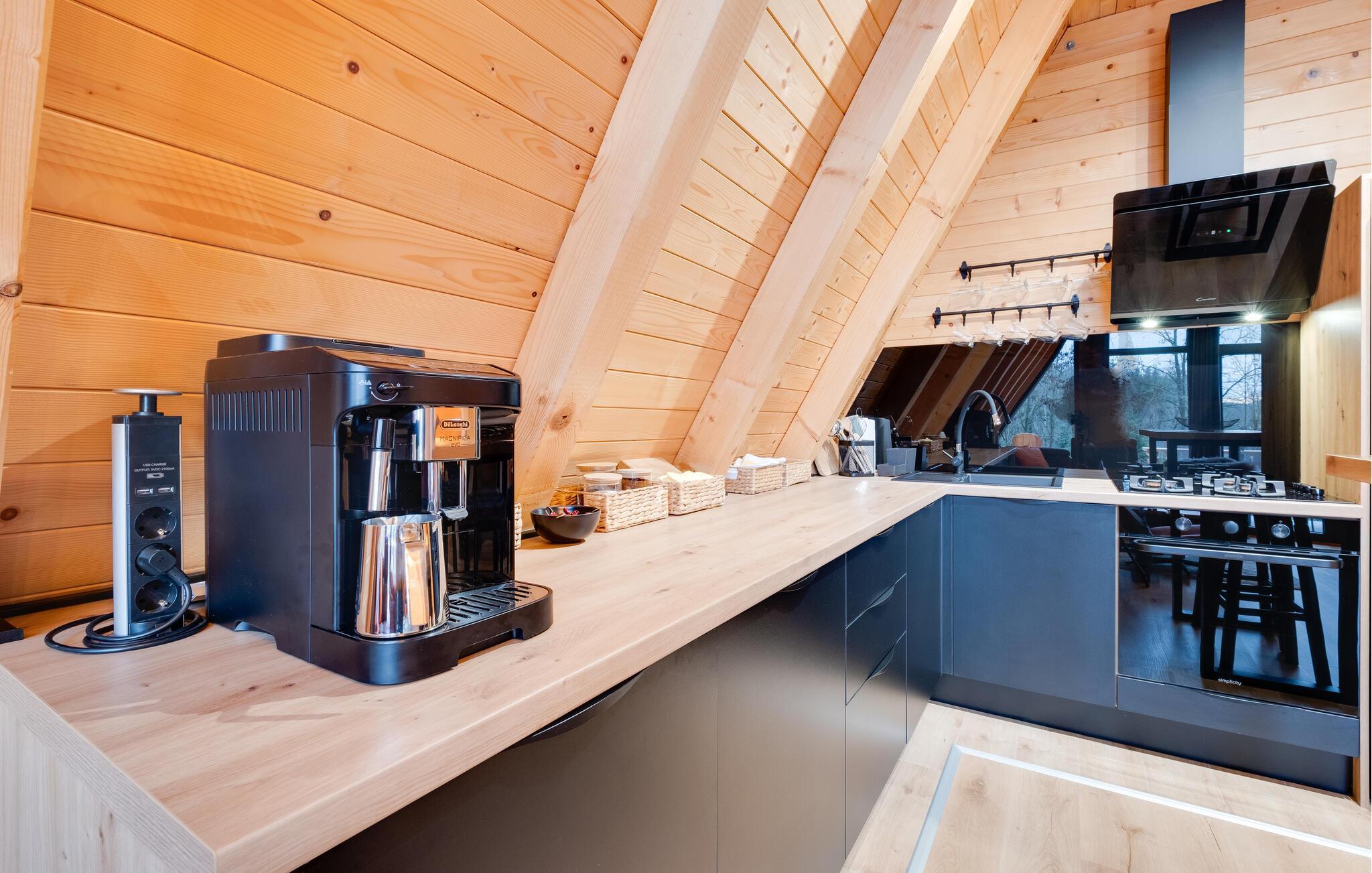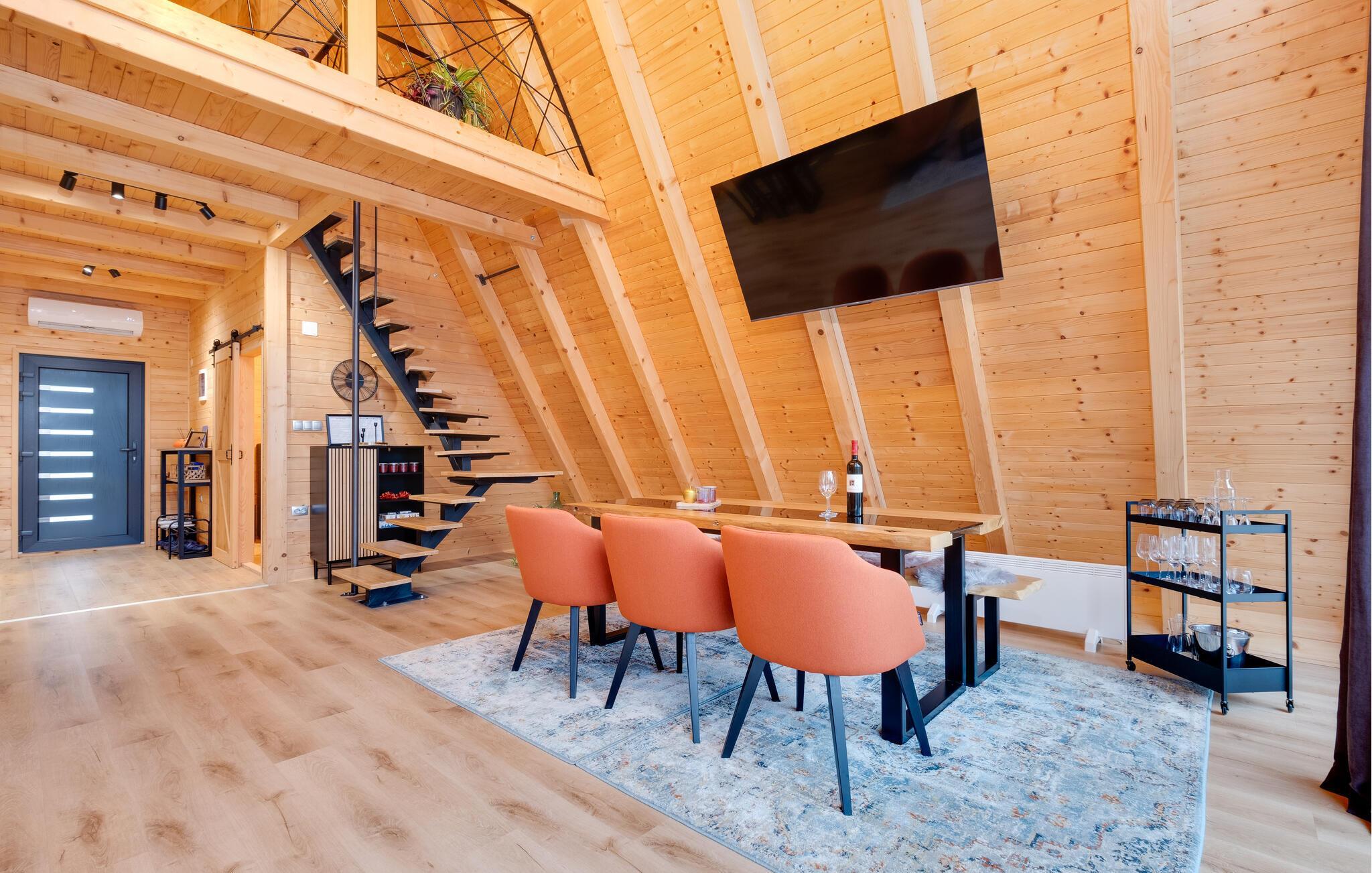 Velkommen til dette behagelige feriedomicil, hvor det varme træinteriør og den smagfulde indretning skaber en afslappende atmosfære. Her finder I alt, hvad I behøver for en ferie i harmoni med naturen. Slap af og nyd hverdagsfri stunder i den hyggelige opholdsstue.