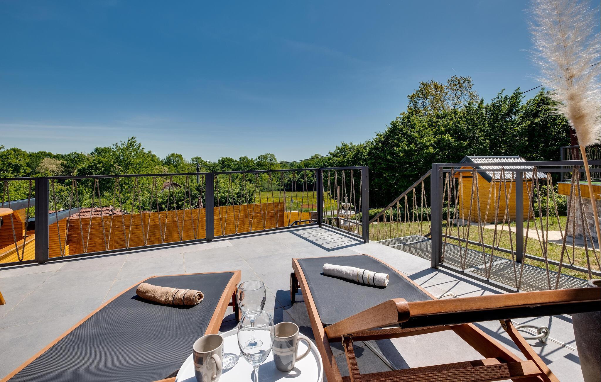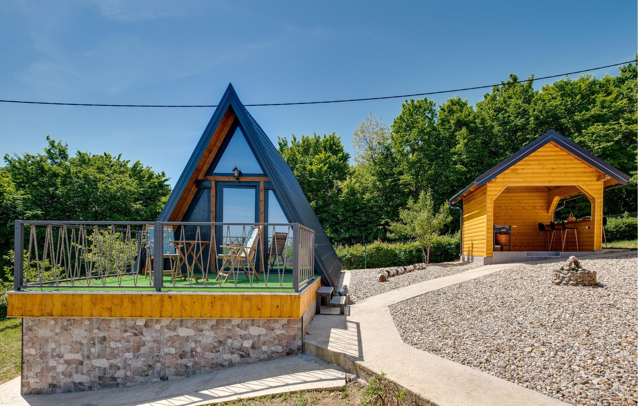 Fantastisk træhus med glimrende faciliteter, omgivet af natur og med panoramaudsigt over landskabet.