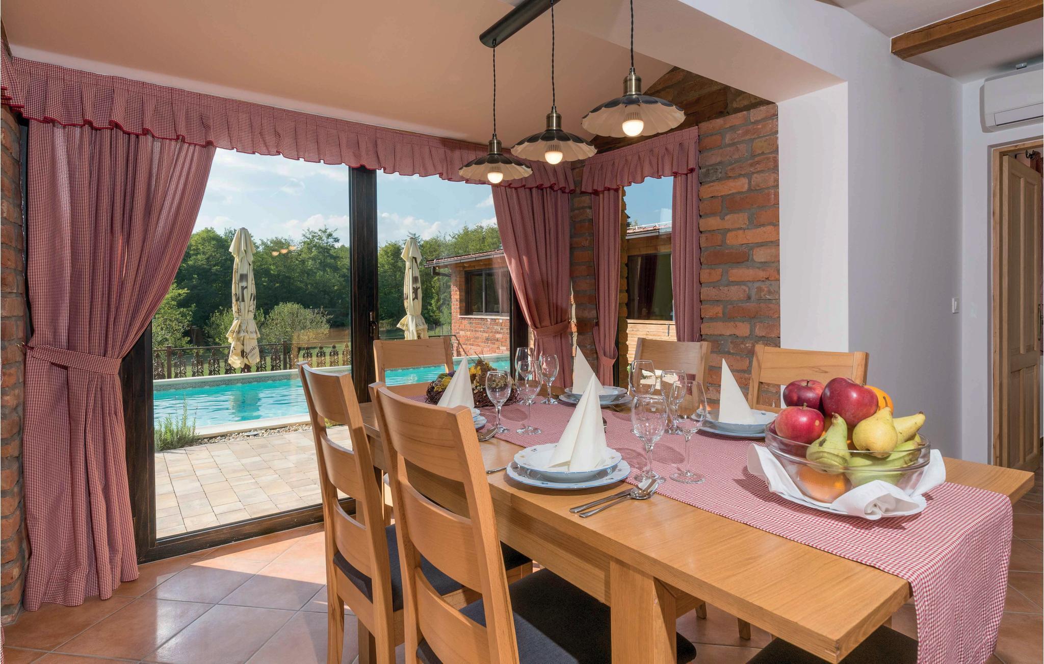Huset består af fire smukke lejligheder, der også kan fungere som separate enheder. To lejligheder ligger på øverste etage med eksterne indgange. Der er en rummelig græsplæne til solbadning ved siden af ??den opvarmede pool med udsigt over skoven. Slap af i wellness-området med sauna og boblebad med udsigt over poolen eller den glasinddækkede veranda med en stor grill med et veludstyret køkken.