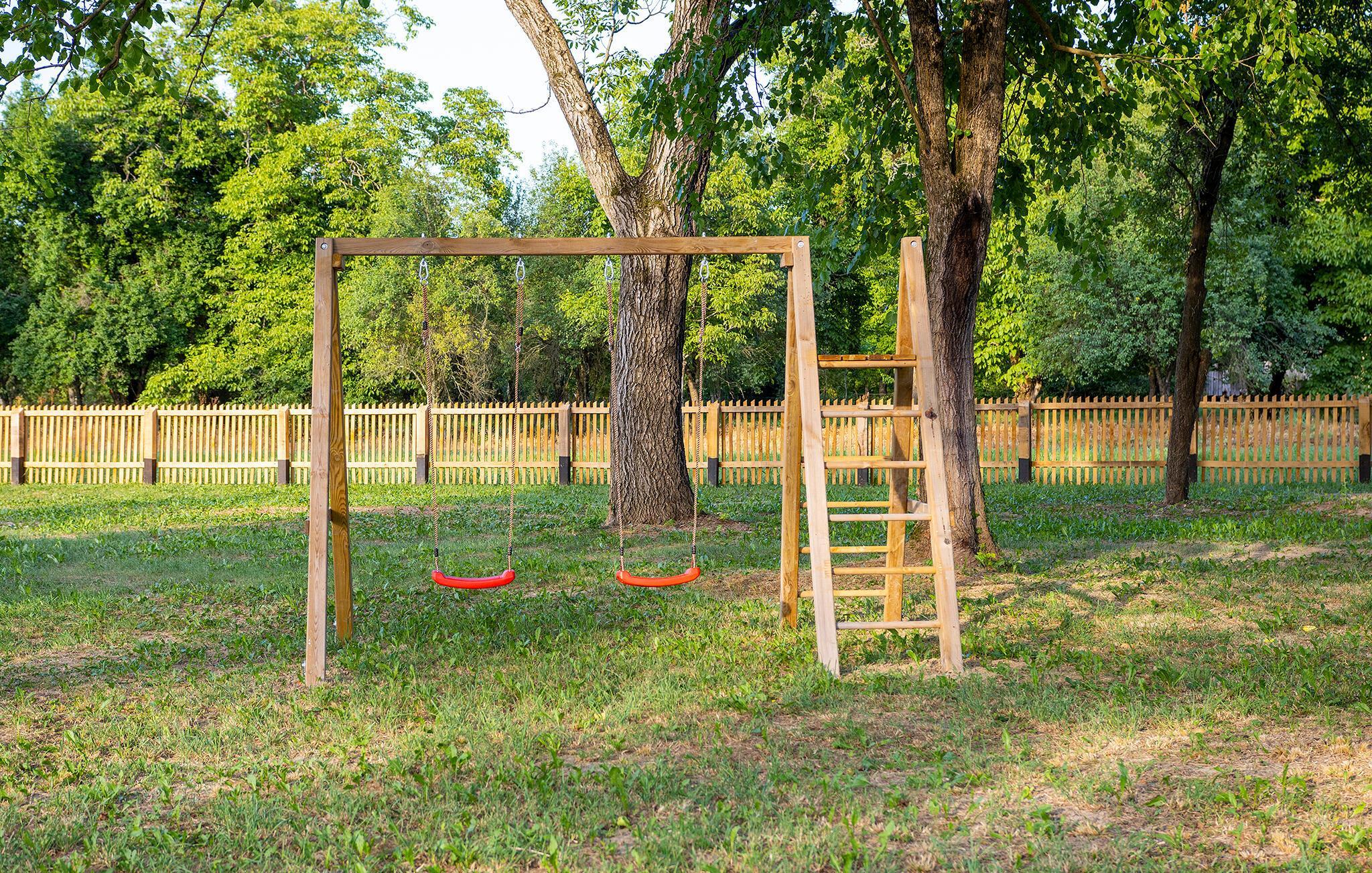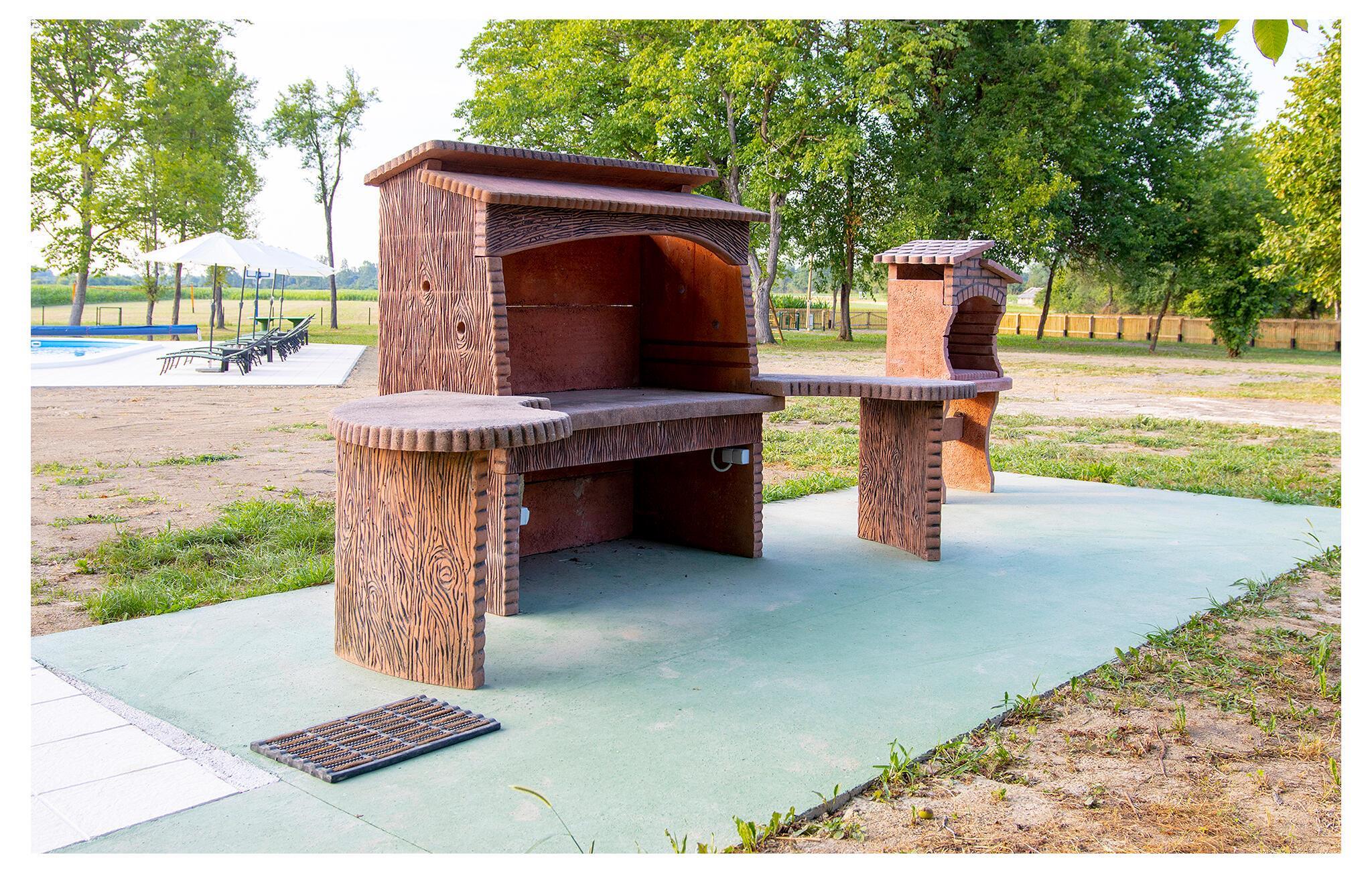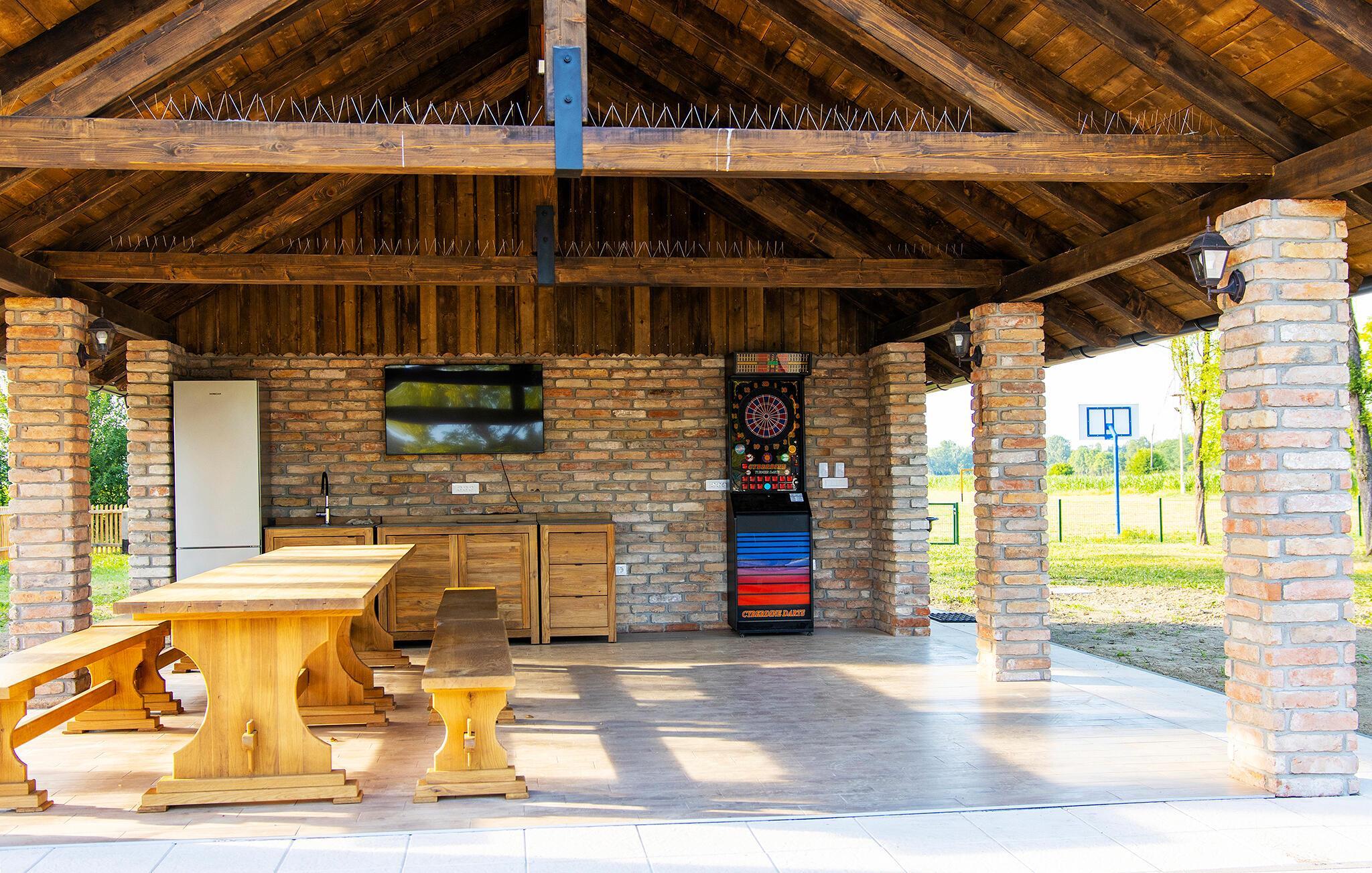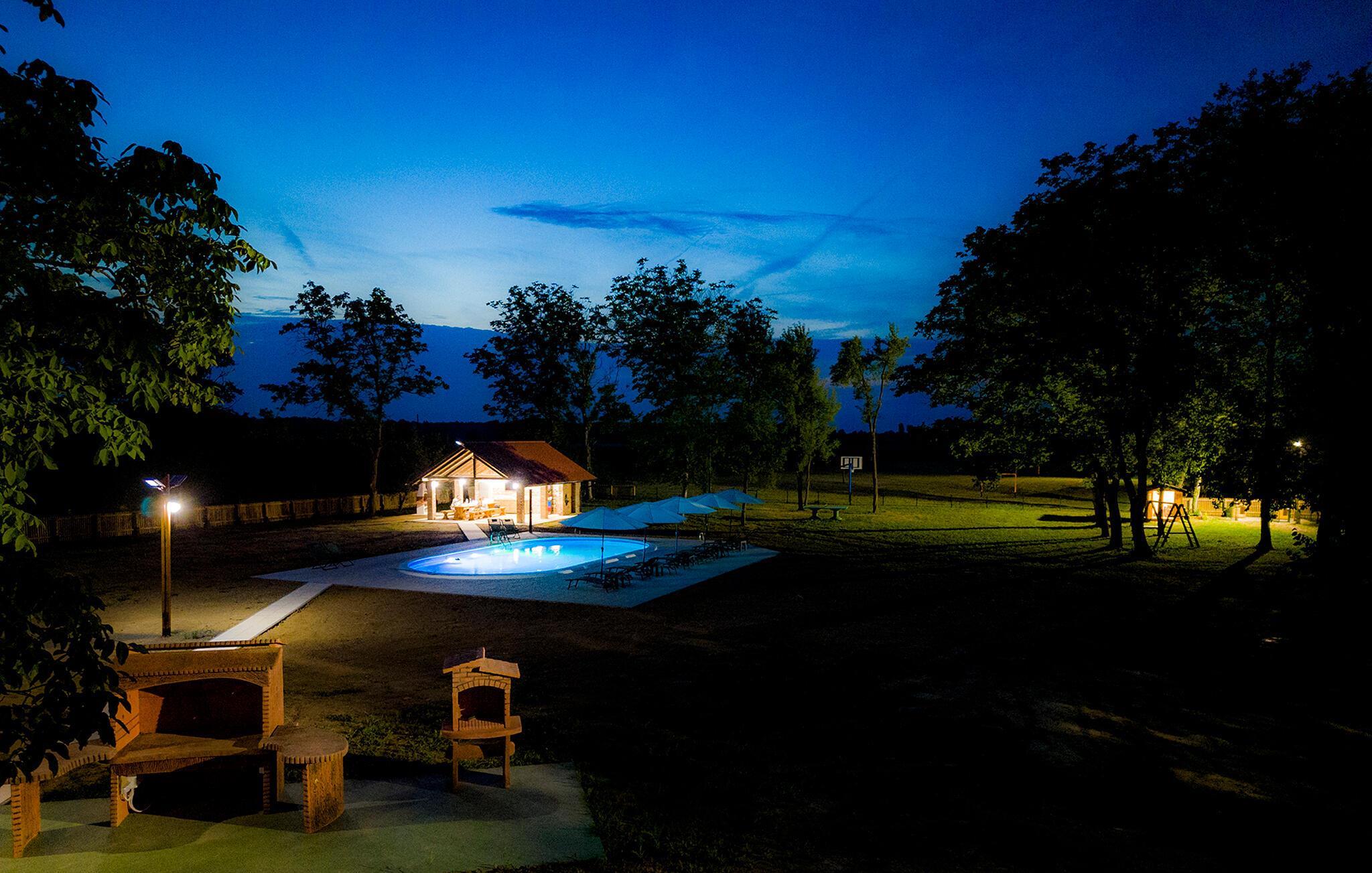 Gå udenfor og oplev det rummelige udendørsområde med en velholdt have, liggestole ved den cirkulære pool og en rummelig spiseplads i skyggen af ??høje træer. Spil volleyball eller fodbold, eller grill sammen ved de murstensgrillpladser. Børnene vil også finde mange legemuligheder her.