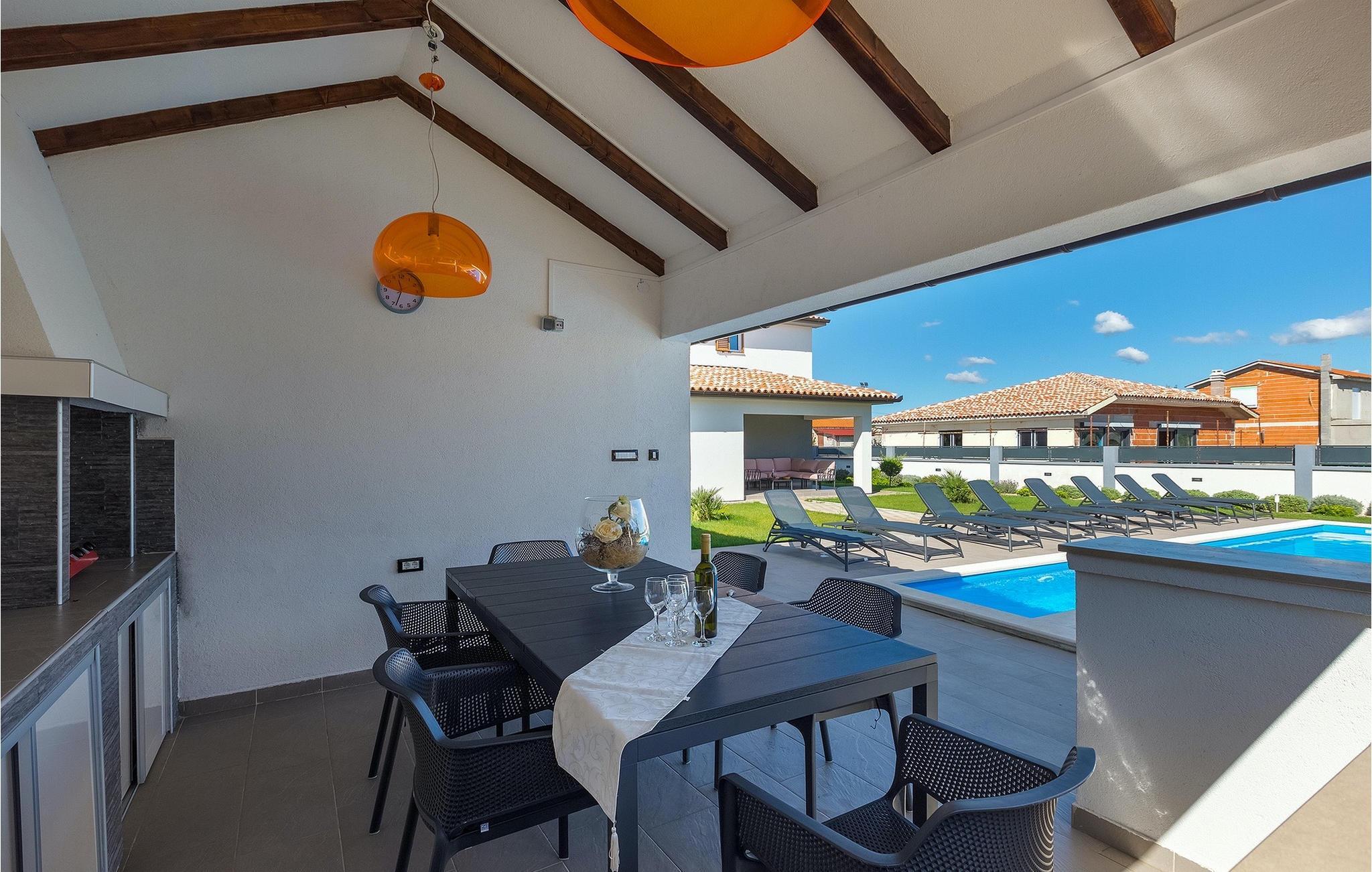 Denne smukke villa Alba Rossa er beliggende i den lille by Sisan nær den største by i Istrien - Pula. Ligesom hendes søstervilla Alba Bianca tilbyder denne villa dig alt til den perfekte ferie med din familie. Villaen kan rumme op til 8 personer. Hver villa fungerer som en separat enhed, og hvert hus har sin egen swimmingpool, jacuzzi, spa, grill, legeplads, bordtennis og bordfodbold. Husene hænger sammen, så de kan lejes af en større familie, og I kan alle slappe af og nyde naturens lyde og den smukke stemning, som begge villaer har at byde på. Ligesom Villa Alba Bianca har stueetagen i Villa Alba Rossa et vidunderligt køkken og spiseplads, en komfortabel og hyggelig stue og et soveværelse med to enkeltsenge. På første sal finder du to fuldt udstyrede dobbeltværelser med tv og aircondition og hver med eget badeværelse. Du ønsker at tilbringe det meste af din tid udendørs, hvilket er en god idé, da villaen byder på et smukt og stort overdækket sommerkøkken, hvor du kan tilberede lækre istriske delikatesser eller friske op og svømme i poolen. Vi tænkte også på jeres små, der kan hænge ud og hygge sig på den søde legeplads, mens de voksne hygger sig med jacuzzi eller grill. Hvis du vil have en drømmeferie, skal du sørge for at booke Alba Bianca Villa eller Alba Rossa Villa, det vil du ikke fortryde.Villaen Alba Rossa ligger i den beboede lille by Sisan i kommunen Liznjan i Istrien Amt, nær den største istriske by Pula. Kun 1,5 km væk fra villaen vil du støde på smukke sten- og sandstrande. Er du interesseret i mere aktive ferier og adrenalin, er der forskellige faciliteter såsom sejlads, golf, cykling, ridning, adrenalinpark osv. Der er en masse historiske og kulturelle seværdigheder i denne del af Istrien, som du skal besøge. Specialiteten i denne del af Istrien er de lækre istriske delikatesser lavet af Adriaterhavsfisk og den hjemmelavede "Malvazija", der passer til næsten enhver fiskeret. En uundværlig del af Pula er det mest berømte amfiteater fra det første århundrede, endda det sjette største i verden kaldet Arena, som stadig bruges i dag under forskellige kulturelle remedier og film- og sommerfestivaler. Byen har en lang tradition inden for vinfremstilling, fiskeri, skibsbygning og turisme.