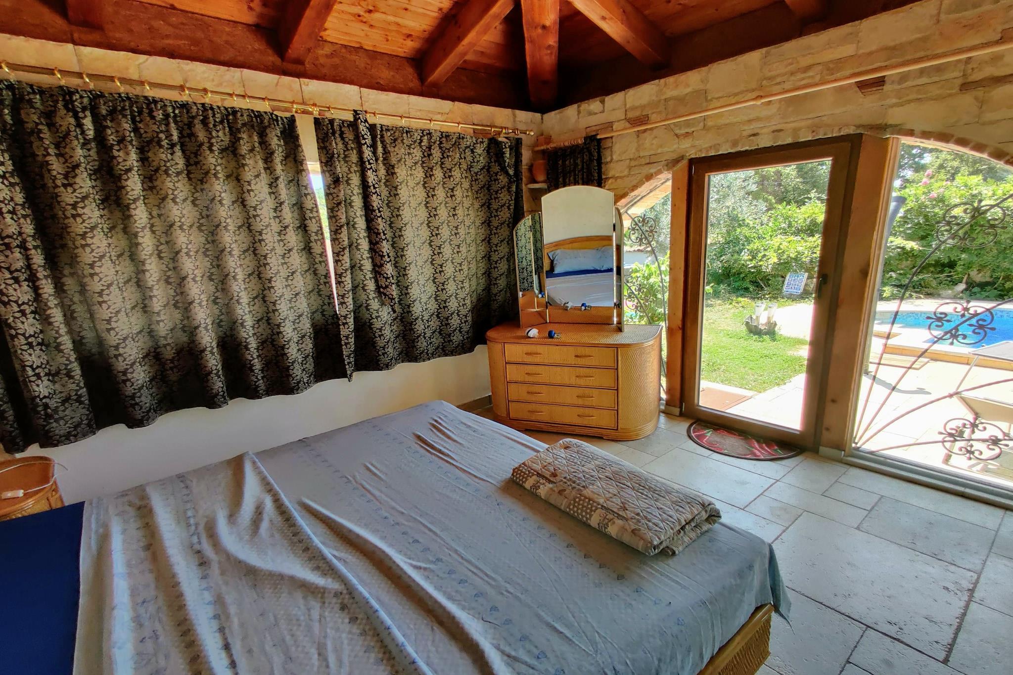 Flygt til dette rummelige feriehus til otte gæster, beliggende i Sisan, kun 3 km fra stranden og 300 meter fra byens centrum. Dette feriehus er designet til afslapning og bekvemmelighed og tilbyder gratis WiFi, en privat swimmingpool og en terrasse med liggestole, hvilket gør det perfekt til familier eller grupper, der søger en fredelig ferie. Uanset om du nyder solen, udforsker lokale attraktioner eller forkæler dig selv med nærliggende restauranter, sikrer dette hjem et mindeværdigt ophold. Indenfor er der i stueetagen en hyggelig stue, et fuldt udstyret køkken med ovn, mikrobølgeovn og opvaskemaskine samt to soveværelser med dobbeltsenge. Første sal indeholder et tredje soveværelse med en enkelt sovesofa og en dobbeltseng, et fjerde soveværelse med køjesenge og et ekstra badeværelse. Et separat gæstehus tilbyder et femte soveværelse med køjesenge og et privat badeværelse, hvilket sikrer ekstra plads og privatliv. Gæsterne kan også nyde aircondition, en grillplads og cykler til at udforske omgivelserne. I nærheden fremviser Augustus-templet en fantastisk romersk arkitektur, mens Brijuni-øerne byder på betagende natur og historiske steder. Udforsk Sergii-buen, en velbevaret romersk triumfbue. Restaurant Bodulka serverer lækre lokale retter, mens Buffet Napoli tilbyder middelhavsretter. Uanset om du vil udforske historien eller nyde frisk fisk og skaldyr, er dette feriehus det perfekte tilflugtssted.