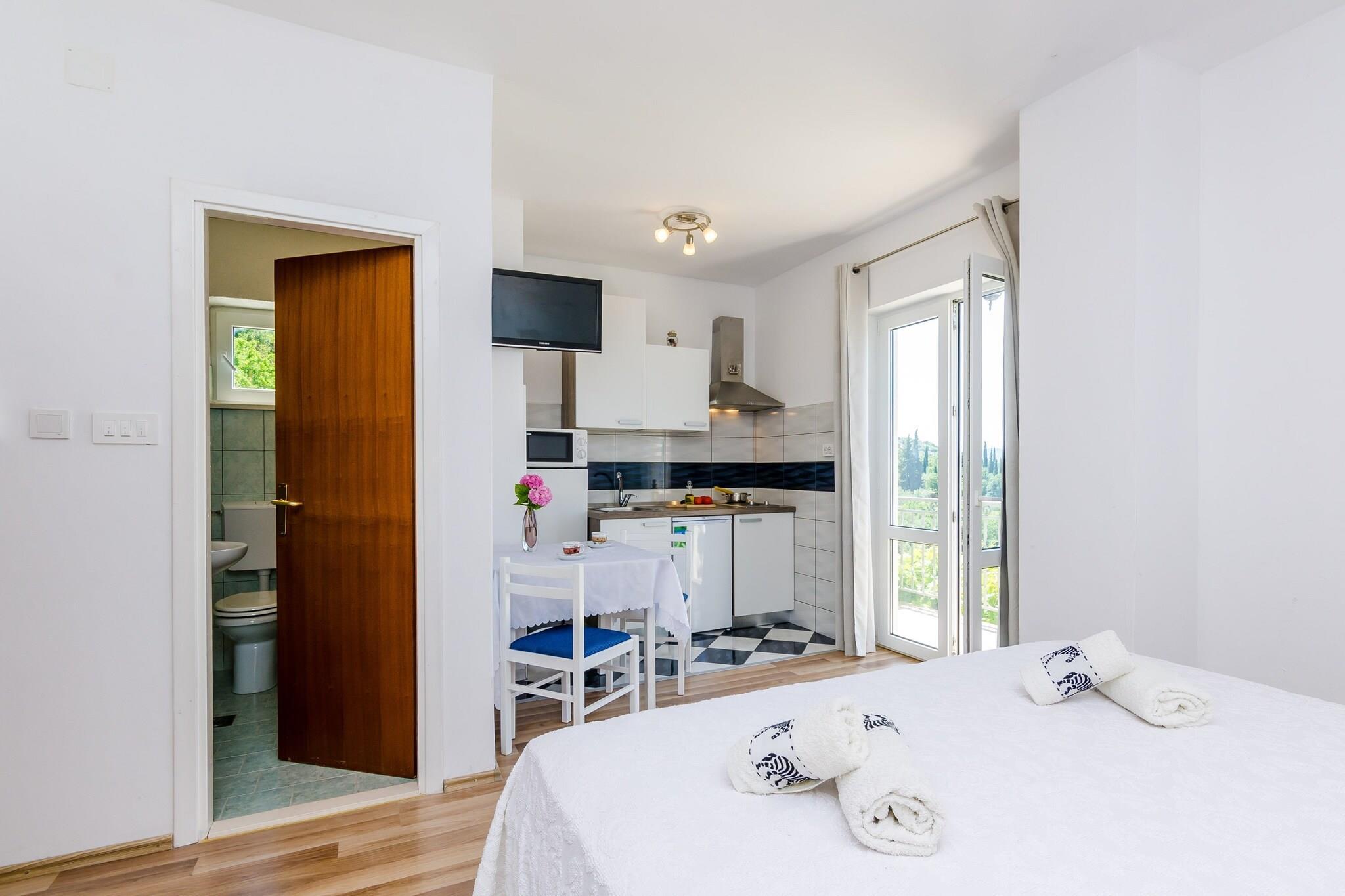 Apartments Cypress Sea Cove tilbyder to ferieboliger med egen forplejning beliggende i en lille landsby kaldet Sladenovici, nær Slano, i den nordvestlige del af Dubrovnik-regionen. Der tilbydes privat parkering samt en køje til båd.Denne premium-studiolejlighed har gratis WiFi, aircondition og fladskærms-tv samt tekøkken med køleskab, mikroovn, vandkedel, kaffemaskine, brødrister og spiseplads. Der er eget badeværelse med bruser og hårtørrer. Gæsterne kan nyde deres ophold på balkonen med udendørsmøbler. Der er også privat parkering samt en køje til båd. Barneseng og fælles grillfaciliteter vil være til gæsternes rådighed. Lejlighederne Cypress Sea Cove er et perfekt sted for din ferie, da de er beliggende i et fredeligt område med intakt natur og rig vegetation. På grund af ejendommens fremragende beliggenhed kan gæster finde alt, hvad de har brug for til hverdagen under deres ferie i nærheden af lejligheden. Slano er en lille by og en bugt, der ligger 37 kilometer nord for byen Dubrovnik, hvortil den er forbundet med regelmæssige buslinjer. Den nærmeste lufthavn er Dubrovnik Lufthavn, 56 km fra ejendommen. Dubrovnik ligger 38 km fra Apartments Cypress Sea Cove, og Neum ligger 29 km fra ejendommen.
