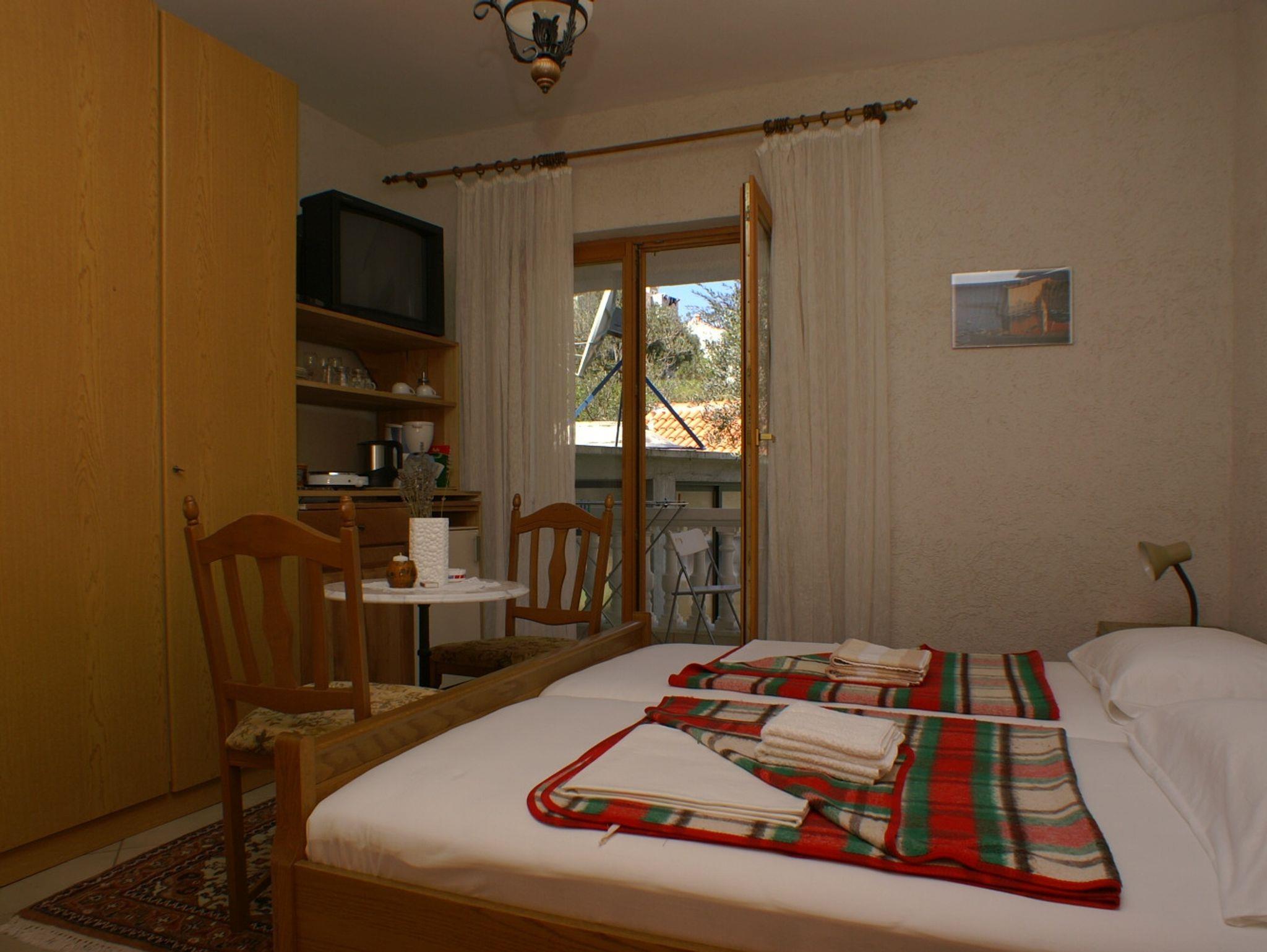 Zimmer bietet Platz für 2 Gäste. Die Betten sind in Schlafzimmern, die es 1 gibt, innerhalb einer Gesamtfläche von 17m2, angeordnet. Die Gäste haben eine eigene Terrasse zur Verfügung, auf der sie in warmen Sommernächten genießen können. In der Unterkunftseinheit besteht die Möglichkeit des Mitbringens von Haustieren gegen Aufpreis. Die reservierte Unterkunftseinheit ist ein Zimmer mit eigenem Badezimmer ohne die Möglichkeit der Nutzung einer Küche. IM PREIS INBEGRIFFEN: Kurtaxe, Endreinigung, Klimatisierung, Parkplatz, Internet, Kinderbett, Bügeleisen, Bügelbrett, Föhn. VERBINDLICHE ZUSÄTZLICHE KOSTEN: Aufzahlung für Kurzaufenthalte (prozentualer Zuschlag pro Nächtigungsanzahl: 30% - 1, 20% - 2, 10% - 3). UNVERBINDLICHE ZUSÄTZLICHE KOSTEN: Wäschewaschen (5,00 € Waschen), Bootsanlegeplatz (3,00 € pro Nacht), Haustiere (5,00 € pro Nacht). Die Verfügbarkeit zusätzlicher Dienstleistungen in Ihrem reservierten Termin und die Preise derselben (falls nicht aufgeführt) müssen im Voraus überprüft werden. Zusätzliche Dienstleistungen die in der Zahlungsaufforderung nicht aufgeführt sind werden direkt beim Vermieter bezahlt, angenommen der Gast nutzt auch diese.