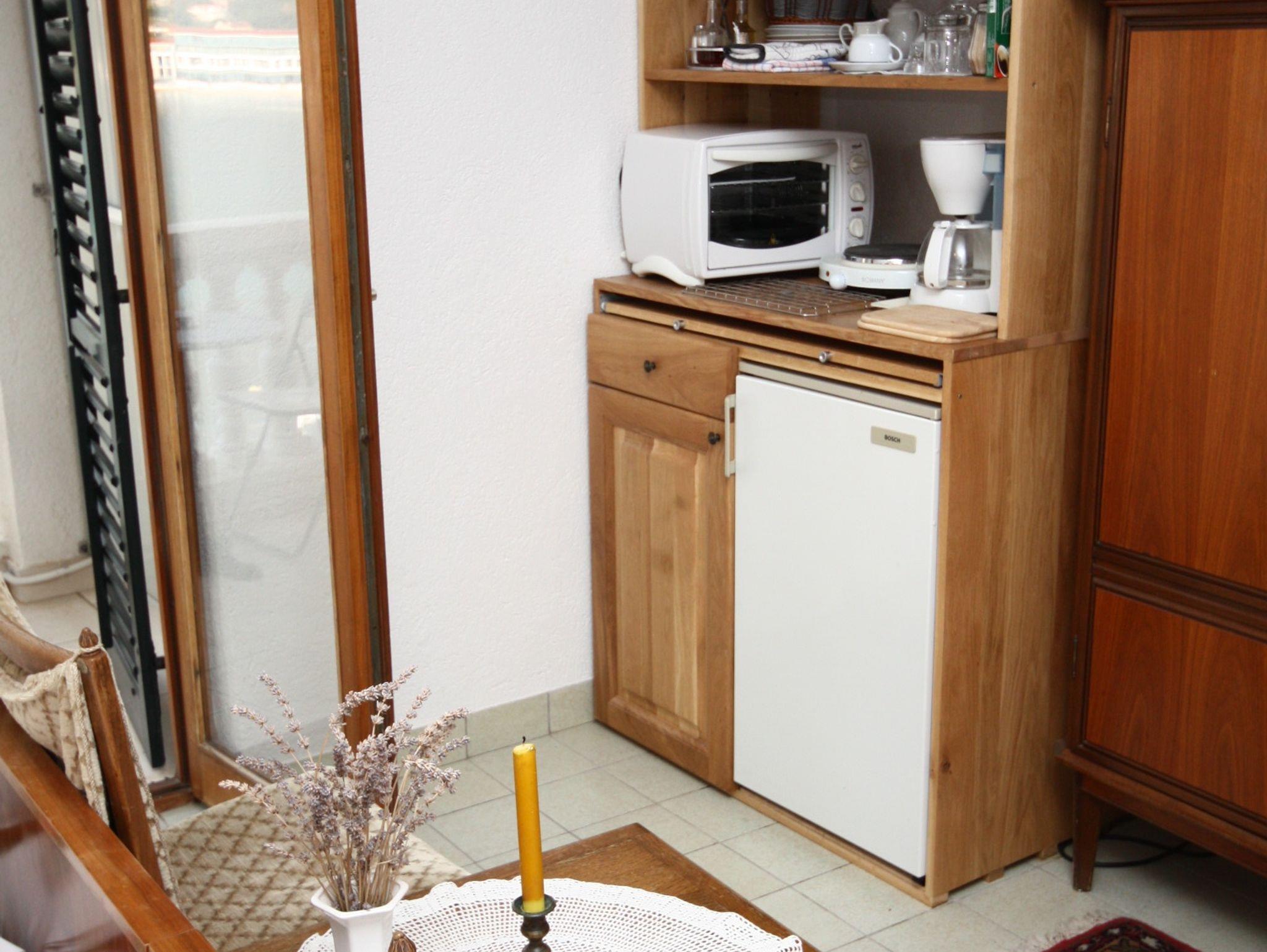 Zimmer bietet Platz für 2 Gäste. Die Betten sind in Schlafzimmern, die es 1 gibt, innerhalb einer Gesamtfläche von 18m2, angeordnet. Die Gäste haben eine eigene Terrasse zur Verfügung, auf der sie in warmen Sommernächten genießen können. Das Zimmer bietet Meerblick. In der Unterkunftseinheit besteht die Möglichkeit des Mitbringens von Haustieren gegen Aufpreis. Die reservierte Unterkunftseinheit ist ein Zimmer mit eigenem Badezimmer ohne die Möglichkeit der Nutzung einer Küche. IM PREIS INBEGRIFFEN: Kurtaxe, Endreinigung, Klimatisierung, Parkplatz, Internet, Kinderbett, Bügeleisen, Bügelbrett, Föhn. VERBINDLICHE ZUSÄTZLICHE KOSTEN: Aufzahlung für Kurzaufenthalte (prozentualer Zuschlag pro Nächtigungsanzahl: 30% - 1, 20% - 2, 10% - 3). UNVERBINDLICHE ZUSÄTZLICHE KOSTEN: Wäschewaschen (5,00 € Waschen), Bootsanlegeplatz (3,00 € pro Nacht), Haustiere (5,00 € pro Nacht). Die Verfügbarkeit zusätzlicher Dienstleistungen in Ihrem reservierten Termin und die Preise derselben (falls nicht aufgeführt) müssen im Voraus überprüft werden. Zusätzliche Dienstleistungen die in der Zahlungsaufforderung nicht aufgeführt sind werden direkt beim Vermieter bezahlt, angenommen der Gast nutzt auch diese.