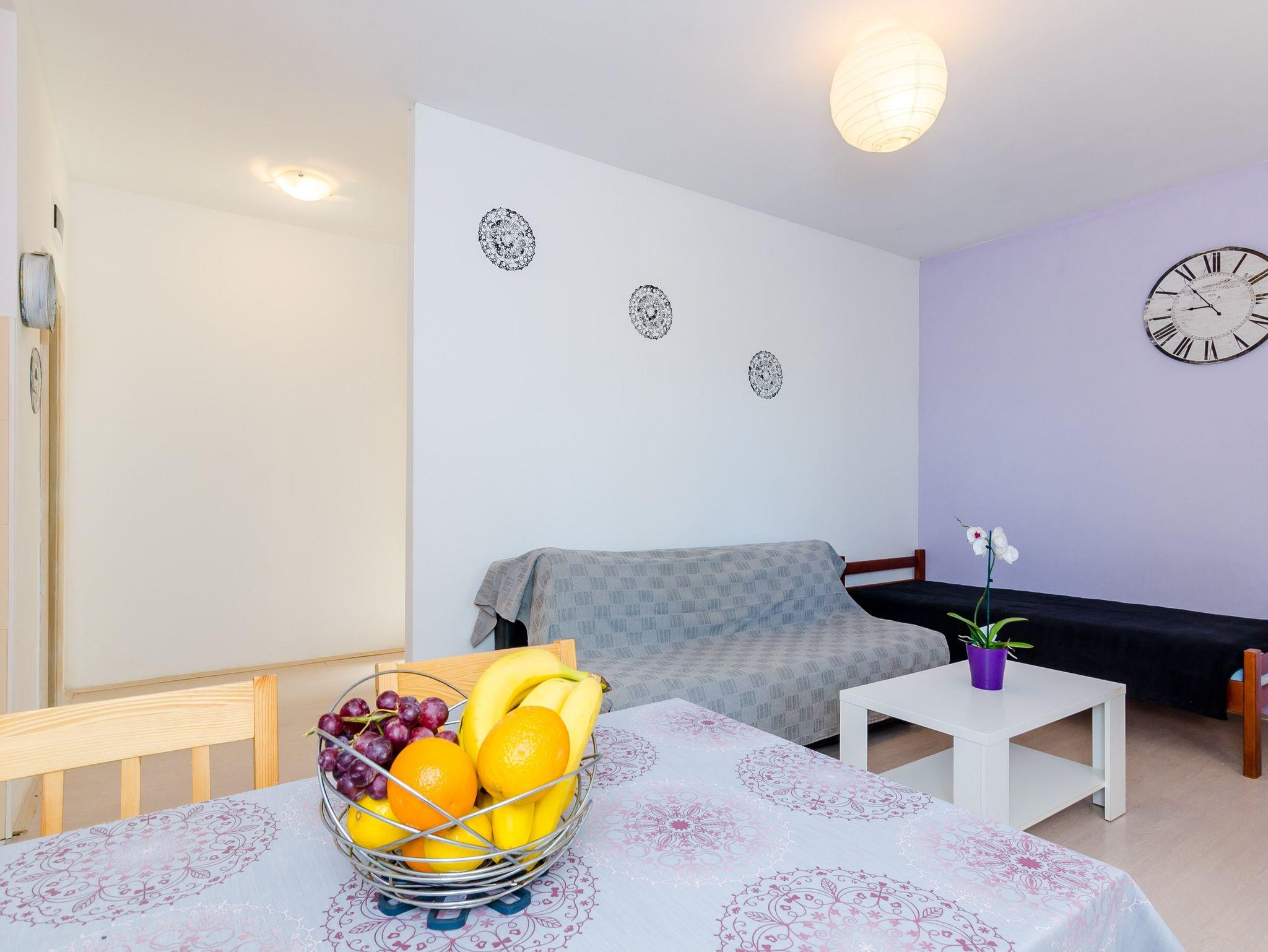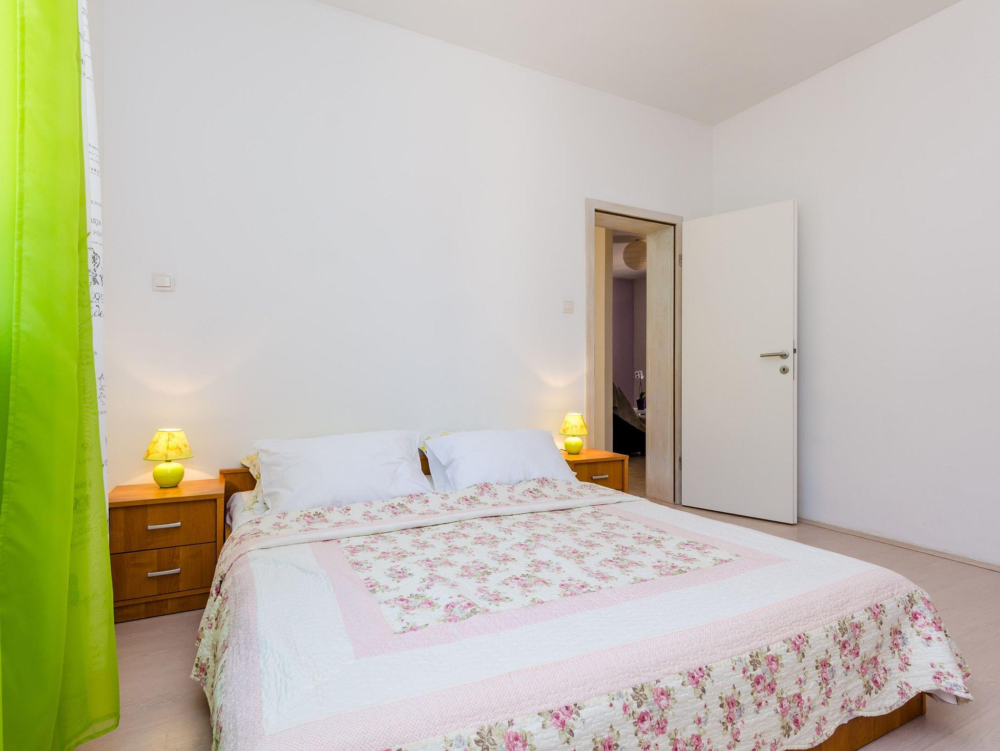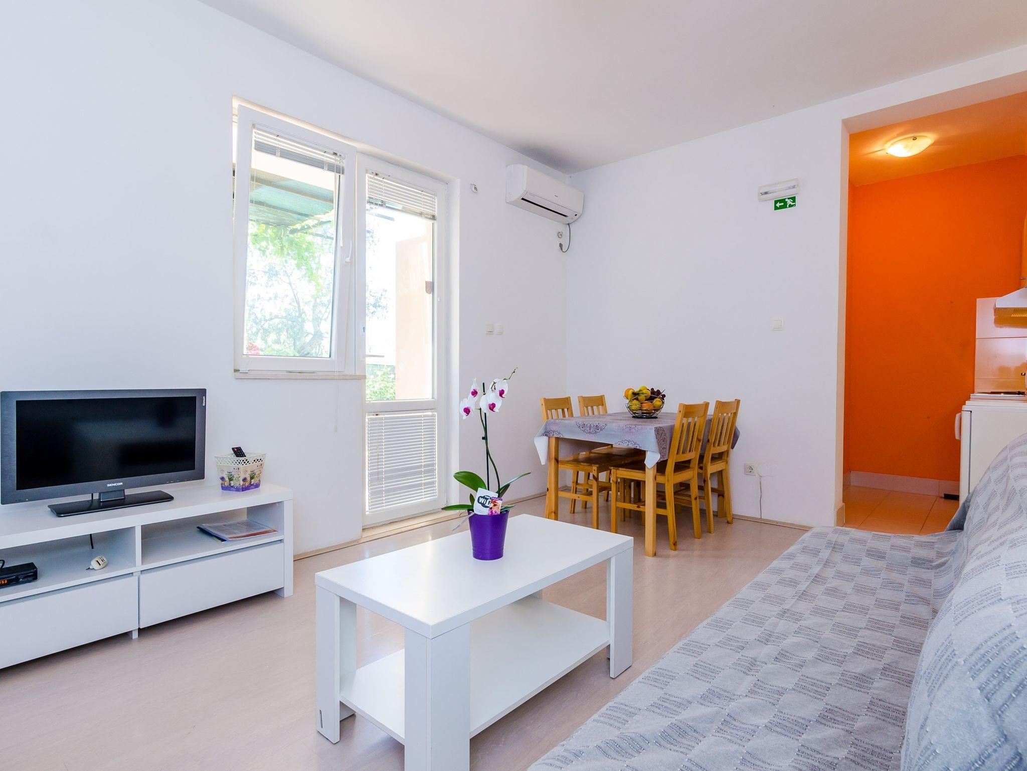 Ferienwohnung bietet Platz für 4 Gäste. Die Betten sind in Schlafzimmern, die es 1 gibt, und in Wohnzimmer, innerhalb einer Gesamtfläche von 38m2, angeordnet. Die Gäste haben eine eigene Terrasse zur Verfügung, auf der sie in warmen Sommernächten genießen können. Das Apartment bietet Meerblick. Es ist erlaubt, Speisen auf dem Gemeinschafts-Grill vorzubereiten. IM PREIS INBEGRIFFEN: Kurtaxe, Endreinigung, Klimatisierung, Parkplatz, Internet, Bootsanlegeplatz, Kinderbett, Zusatzbett, Bügeleisen, Bügelbrett, Föhn, Sonnenschirm, Liegestühle. Die Verfügbarkeit zusätzlicher Dienstleistungen in Ihrem reservierten Termin und die Preise derselben (falls nicht aufgeführt) müssen im Voraus überprüft werden. Zusätzliche Dienstleistungen die in der Zahlungsaufforderung nicht aufgeführt sind werden direkt beim Vermieter bezahlt, angenommen der Gast nutzt auch diese. Ermäßigung auf den Grundpreis: Gratistag 14=13 (bei einem Aufenthalt von 14 Tagen oder mehr erhalten Sie einen Gratistag für den Aufenthalt bis 31.12.26).