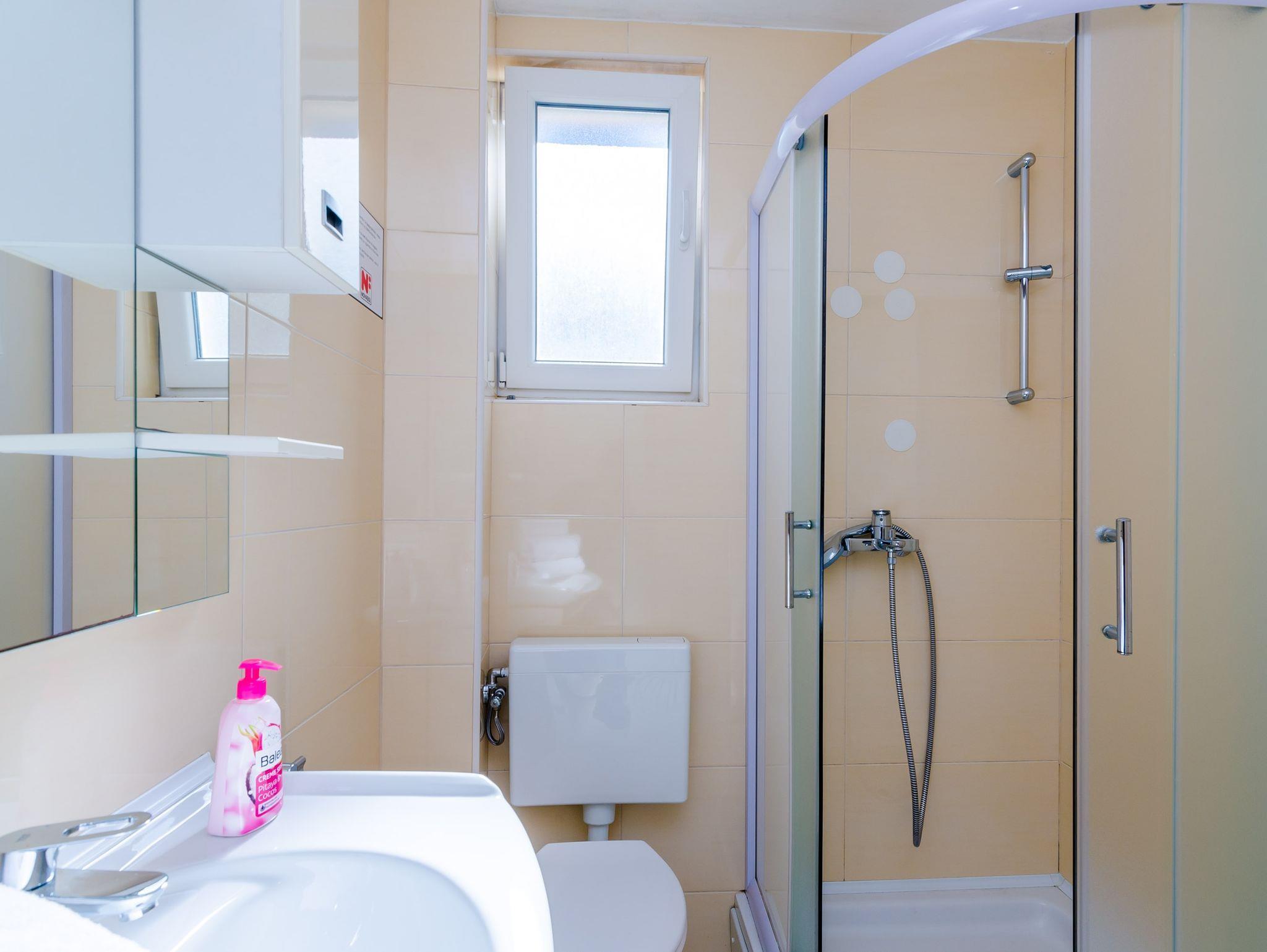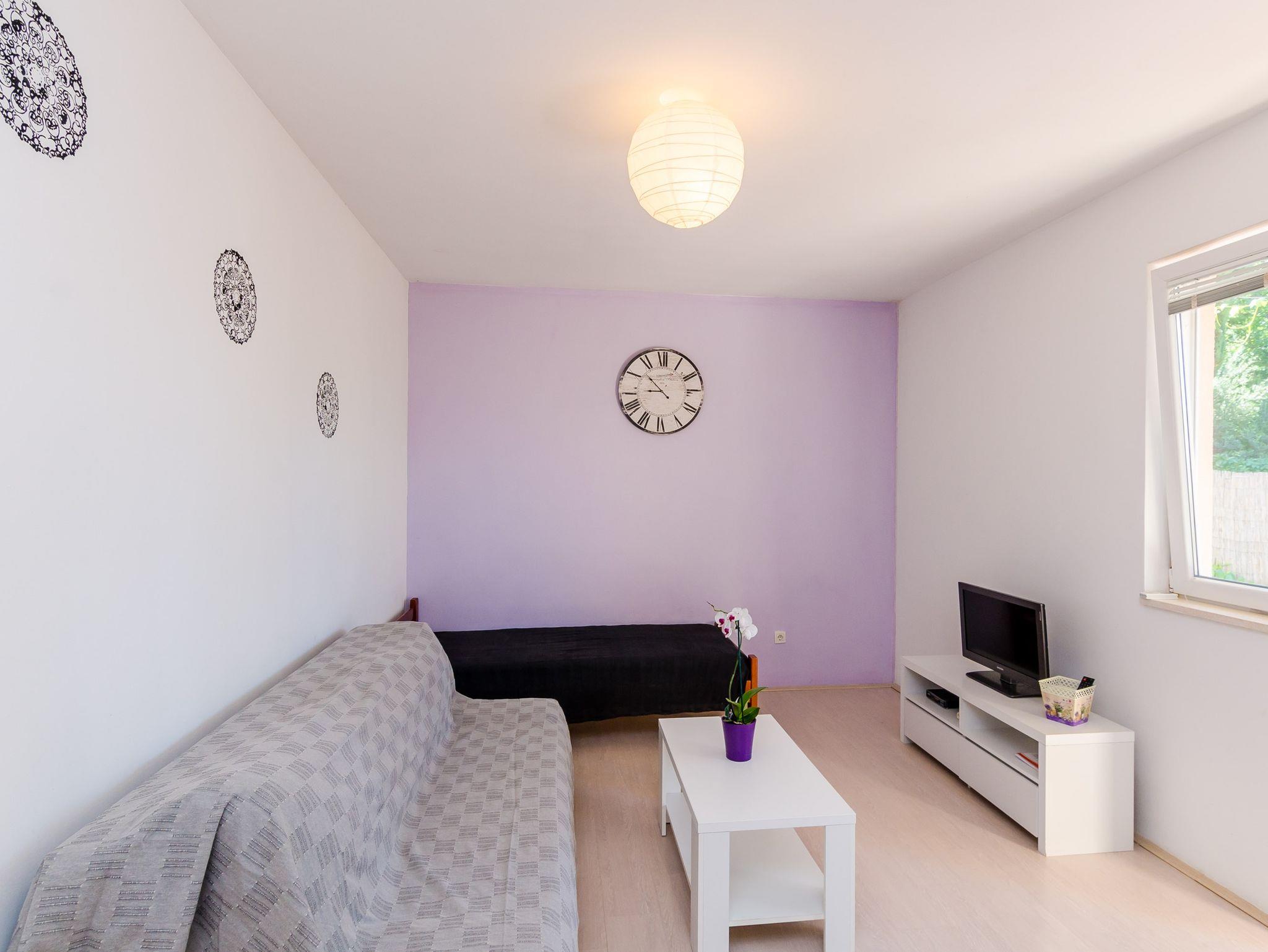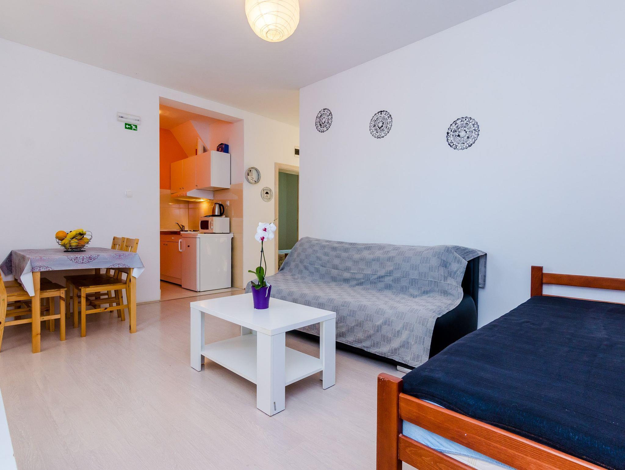 Ferienwohnung bietet Platz für 4 Gäste. Die Betten sind in Schlafzimmern, die es 1 gibt, und in Wohnzimmer, innerhalb einer Gesamtfläche von 38m2, angeordnet. Die Gäste haben eine eigene Terrasse zur Verfügung, auf der sie in warmen Sommernächten genießen können. Das Apartment bietet Meerblick. Es ist erlaubt, Speisen auf dem Gemeinschafts-Grill vorzubereiten. IM PREIS INBEGRIFFEN: Kurtaxe, Endreinigung, Klimatisierung, Parkplatz, Internet, Bootsanlegeplatz, Kinderbett, Zusatzbett, Bügeleisen, Bügelbrett, Föhn, Sonnenschirm, Liegestühle. Die Verfügbarkeit zusätzlicher Dienstleistungen in Ihrem reservierten Termin und die Preise derselben (falls nicht aufgeführt) müssen im Voraus überprüft werden. Zusätzliche Dienstleistungen die in der Zahlungsaufforderung nicht aufgeführt sind werden direkt beim Vermieter bezahlt, angenommen der Gast nutzt auch diese. Ermäßigung auf den Grundpreis: Gratistag 14=13 (bei einem Aufenthalt von 14 Tagen oder mehr erhalten Sie einen Gratistag für den Aufenthalt bis 31.12.26).