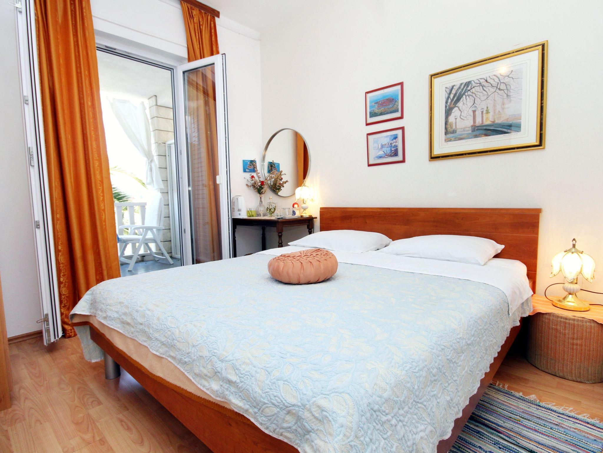 Zimmer bietet Platz für 2 Gäste. Die Betten sind in Schlafzimmern, die es 1 gibt, innerhalb einer Gesamtfläche von 12m2, angeordnet. Die Gäste haben eine eigene Terrasse zur Verfügung, auf der sie in warmen Sommernächten genießen können. Das Zimmer bietet Meerblick. Es ist erlaubt, Speisen auf dem Gemeinschafts-Grill vorzubereiten. Während ihres Aufenthalts können Gäste das gemeinsam zur Nutzung stehende Schwimmbad benutzen. In der Unterkunftseinheit besteht die Möglichkeit des Mitbringens von Haustieren gegen Aufpreis. Die reservierte Unterkunftseinheit ist ein Zimmer mit eigenem Badezimmer ohne die Möglichkeit der Nutzung einer Küche. IM PREIS INBEGRIFFEN: Kurtaxe, Endreinigung, Klimatisierung, Pool, Parkplatz, Internet, Bügeleisen, Bügelbrett, Föhn, tragbarer Grill. VERBINDLICHE ZUSÄTZLICHE KOSTEN: Aufzahlung für Kurzaufenthalte (prozentualer Zuschlag pro Nächtigungsanzahl: 30% - 1, 20% - 2, 10% - 3). UNVERBINDLICHE ZUSÄTZLICHE KOSTEN: Haustiere (10,00 € pro Nacht). Die Verfügbarkeit zusätzlicher Dienstleistungen in Ihrem reservierten Termin und die Preise derselben (falls nicht aufgeführt) müssen im Voraus überprüft werden. Zusätzliche Dienstleistungen die in der Zahlungsaufforderung nicht aufgeführt sind werden direkt beim Vermieter bezahlt, angenommen der Gast nutzt auch diese.
