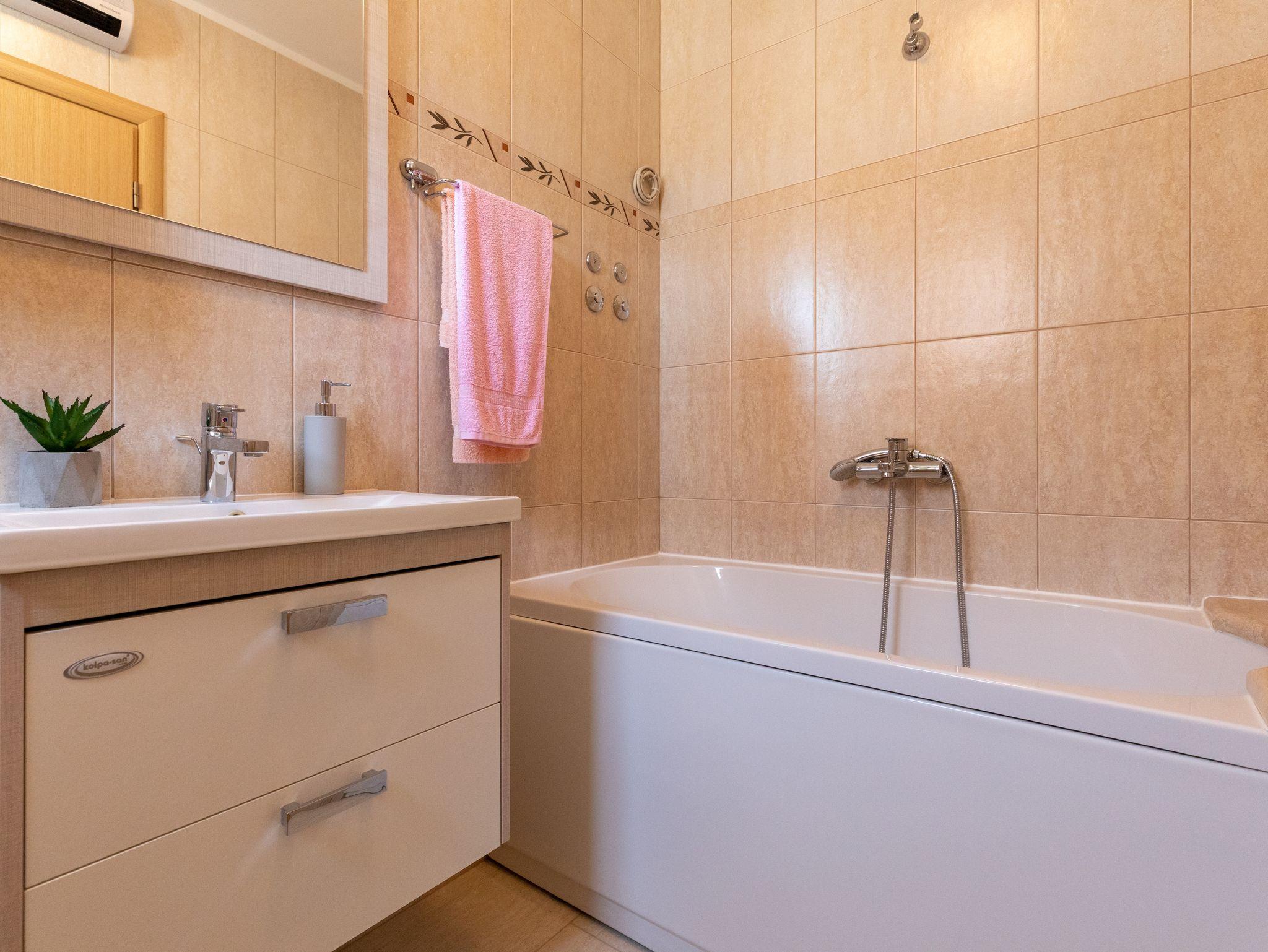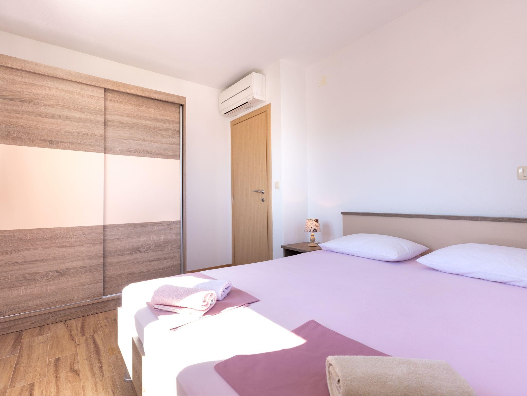 Haus bietet Platz für 6 Gäste. Die Betten sind in Schlafzimmern, die es 4 gibt, und in Wohnzimmer, innerhalb einer Gesamtfläche von 74m2, angeordnet. Die Gäste haben einen eigenen Balkon zur Verfügung, auf der sie in warmen Sommernächten genießen können. Das Haus bietet Meerblick. Es ist erlaubt, Speisen auf dem Gemeinschafts-Grill vorzubereiten. IM PREIS INBEGRIFFEN: Kurtaxe, Endreinigung, Klimatisierung, Parkplatz, Internet, Bügeleisen, Bügelbrett, Föhn, tragbarer Grill, Sonnenschirm. Die Verfügbarkeit zusätzlicher Dienstleistungen in Ihrem reservierten Termin und die Preise derselben (falls nicht aufgeführt) müssen im Voraus überprüft werden. Zusätzliche Dienstleistungen die in der Zahlungsaufforderung nicht aufgeführt sind werden direkt beim Vermieter bezahlt, angenommen der Gast nutzt auch diese. Ermäßigung auf den Grundpreis: Gratistag 14=13 (bei einem Aufenthalt von 14 Tagen oder mehr erhalten Sie einen Gratistag für den Aufenthalt bis 31.12.26).