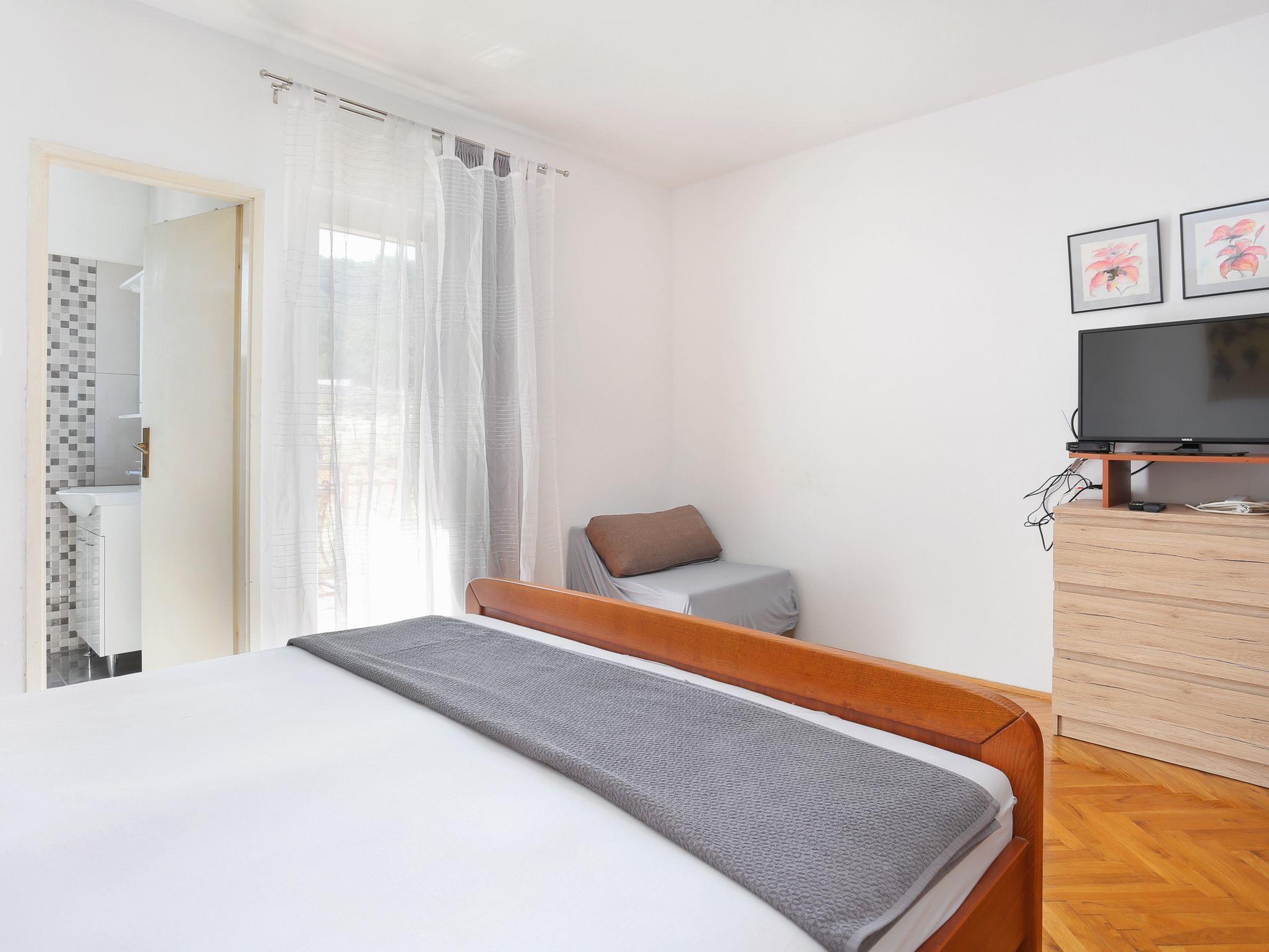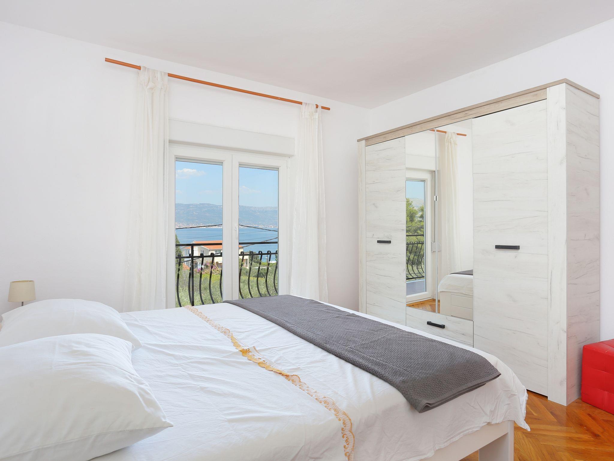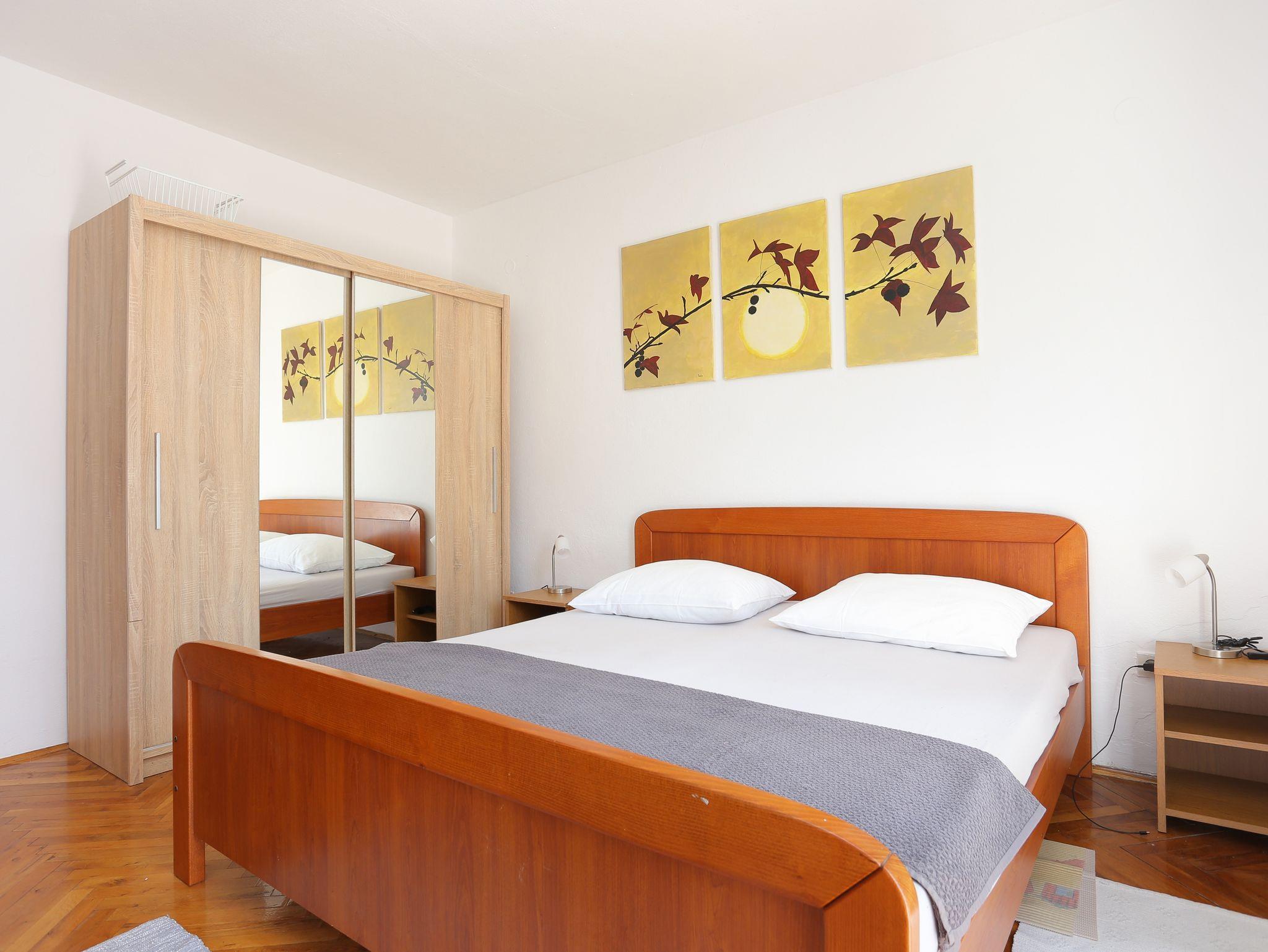 Ferienwohnung bietet Platz für 6 Gäste. Die Betten sind in Schlafzimmern, die es 3 gibt, innerhalb einer Gesamtfläche von 107m2, angeordnet. Die Gäste haben eine eigene Terrasse zur Verfügung, auf der sie in warmen Sommernächten genießen können. Das Apartment bietet Meerblick. Es ist erlaubt, Speisen auf dem Gemeinschafts-Grill vorzubereiten. In der Unterkunftseinheit besteht die Möglichkeit des Mitbringens von Haustieren, und die Dienstleistung ist im Preis der Unterkunft enthalten. IM PREIS INBEGRIFFEN: Kurtaxe, Endreinigung, Klimatisierung, Parkplatz, Internet, Haustiere, Bügeleisen, Bügelbrett, Föhn, tragbarer Grill. VERBINDLICHE ZUSÄTZLICHE KOSTEN: Aufzahlung für Kurzaufenthalte (prozentualer Zuschlag pro Nächtigungsanzahl: 30% - 1, 20% - 2, 10% - 3). UNVERBINDLICHE ZUSÄTZLICHE KOSTEN: Wäschewaschen (5,00 € Waschen), Bootsanlegeplatz (5,00 € pro Nacht). Die Verfügbarkeit zusätzlicher Dienstleistungen in Ihrem reservierten Termin und die Preise derselben (falls nicht aufgeführt) müssen im Voraus überprüft werden. Zusätzliche Dienstleistungen die in der Zahlungsaufforderung nicht aufgeführt sind werden direkt beim Vermieter bezahlt, angenommen der Gast nutzt auch diese. Ermäßigung auf den Grundpreis: Gratistag 14=13 (bei einem Aufenthalt von 14 Tagen oder mehr erhalten Sie einen Gratistag für den Aufenthalt bis 31.12.26).