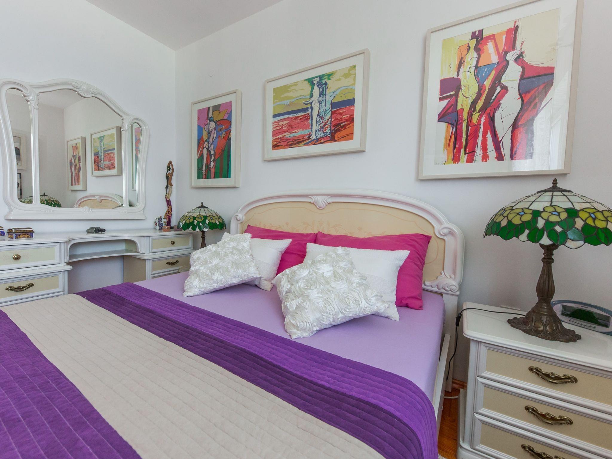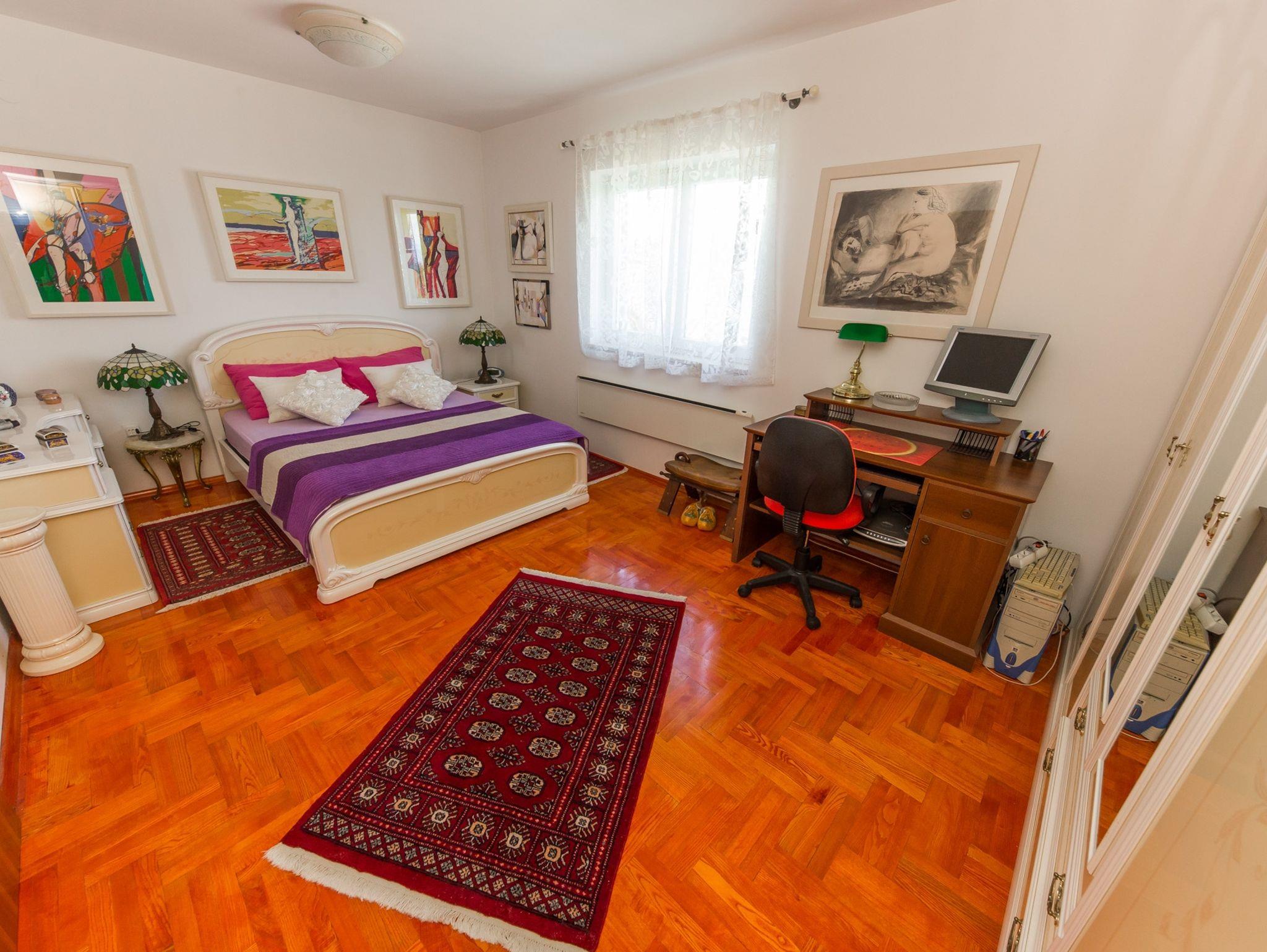 Ferienwohnung bietet Platz für 4 Gäste. Die Betten sind in Schlafzimmern, die es 2 gibt, innerhalb einer Gesamtfläche von 85m2, angeordnet. Die Gäste haben eine eigene Terrasse zur Verfügung, auf der sie in warmen Sommernächten genießen können. Das Apartment bietet Meerblick. Es ist erlaubt, Speisen auf dem Gemeinschafts-Grill vorzubereiten. In der gebuchten Unterkunftseinheit zahlt man am Ort ein Depositum ( der Preis ist an der Internetseite angeführt ). IM PREIS INBEGRIFFEN: Kurtaxe, Endreinigung, Klimatisierung, Parkplatz, Internet, Wäschewaschen, Bootsanlegeplatz, Kinderbett, Bügeleisen, Bügelbrett, Föhn, Sonnenschirm, Liegestühle. VERBINDLICHE ZUSÄTZLICHE KOSTEN: Kaution (200,00 € Einmalzahlung), Aufzahlung für Kurzaufenthalte (prozentualer Zuschlag pro Nächtigungsanzahl: 30% - 1, 20% - 2, 10% - 3). Die Verfügbarkeit zusätzlicher Dienstleistungen in Ihrem reservierten Termin und die Preise derselben (falls nicht aufgeführt) müssen im Voraus überprüft werden. Zusätzliche Dienstleistungen die in der Zahlungsaufforderung nicht aufgeführt sind werden direkt beim Vermieter bezahlt, angenommen der Gast nutzt auch diese. Ermäßigung auf den Grundpreis: Gratistag 14=13 (bei einem Aufenthalt von 14 Tagen oder mehr erhalten Sie einen Gratistag für den Aufenthalt bis 31.12.26).