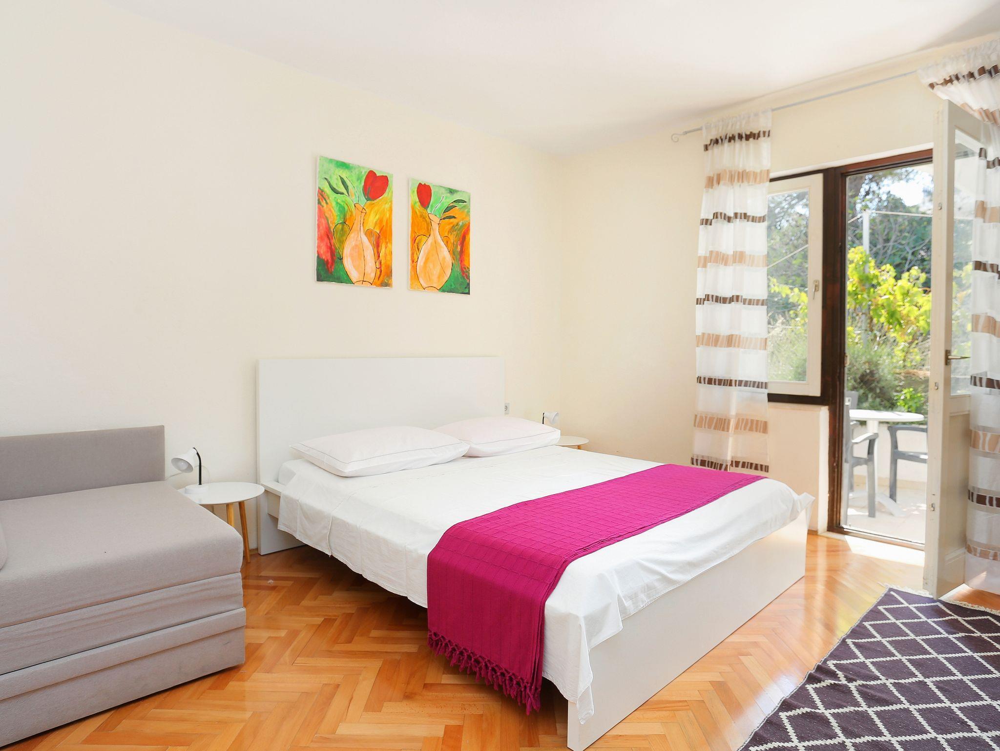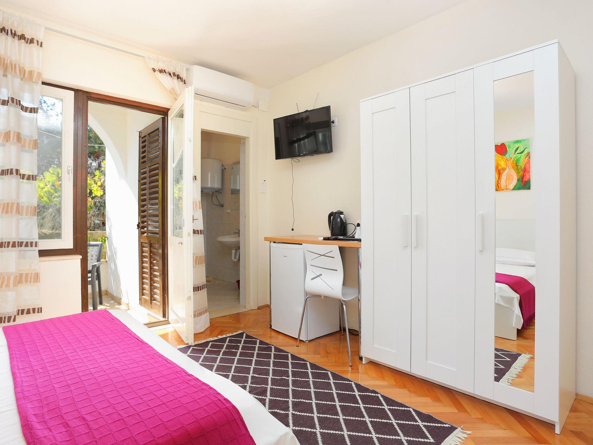 Zimmer bietet Platz für 2 Gäste. Die Betten sind in Schlafzimmern, die es 1 gibt, innerhalb einer Gesamtfläche von 20m2, angeordnet. Die Gäste haben eine eigene Terrasse zur Verfügung, auf der sie in warmen Sommernächten genießen können. Es ist erlaubt, Speisen auf dem Gemeinschafts-Grill vorzubereiten. Die reservierte Unterkunftseinheit ist ein Zimmer mit eigenem Badezimmer ohne die Möglichkeit der Nutzung einer Küche. IM PREIS INBEGRIFFEN: Kurtaxe, Endreinigung, Klimatisierung, Parkplatz, Internet, Bügeleisen, Bügelbrett, Föhn, tragbarer Grill. VERBINDLICHE ZUSÄTZLICHE KOSTEN: Aufzahlung für Kurzaufenthalte (prozentualer Zuschlag pro Nächtigungsanzahl: 30% - 1, 20% - 2, 10% - 3). UNVERBINDLICHE ZUSÄTZLICHE KOSTEN: Wäschewaschen (5,00 € Waschen), Bootsanlegeplatz (5,00 € pro Nacht), 1 Bett für Kinder (5,00 € Person/Tag). Die Verfügbarkeit zusätzlicher Dienstleistungen in Ihrem reservierten Termin und die Preise derselben (falls nicht aufgeführt) müssen im Voraus überprüft werden. Zusätzliche Dienstleistungen die in der Zahlungsaufforderung nicht aufgeführt sind werden direkt beim Vermieter bezahlt, angenommen der Gast nutzt auch diese. Ermäßigung auf den Grundpreis: Gratistag 14=13 (bei einem Aufenthalt von 14 Tagen oder mehr erhalten Sie einen Gratistag für den Aufenthalt bis 31.12.26).