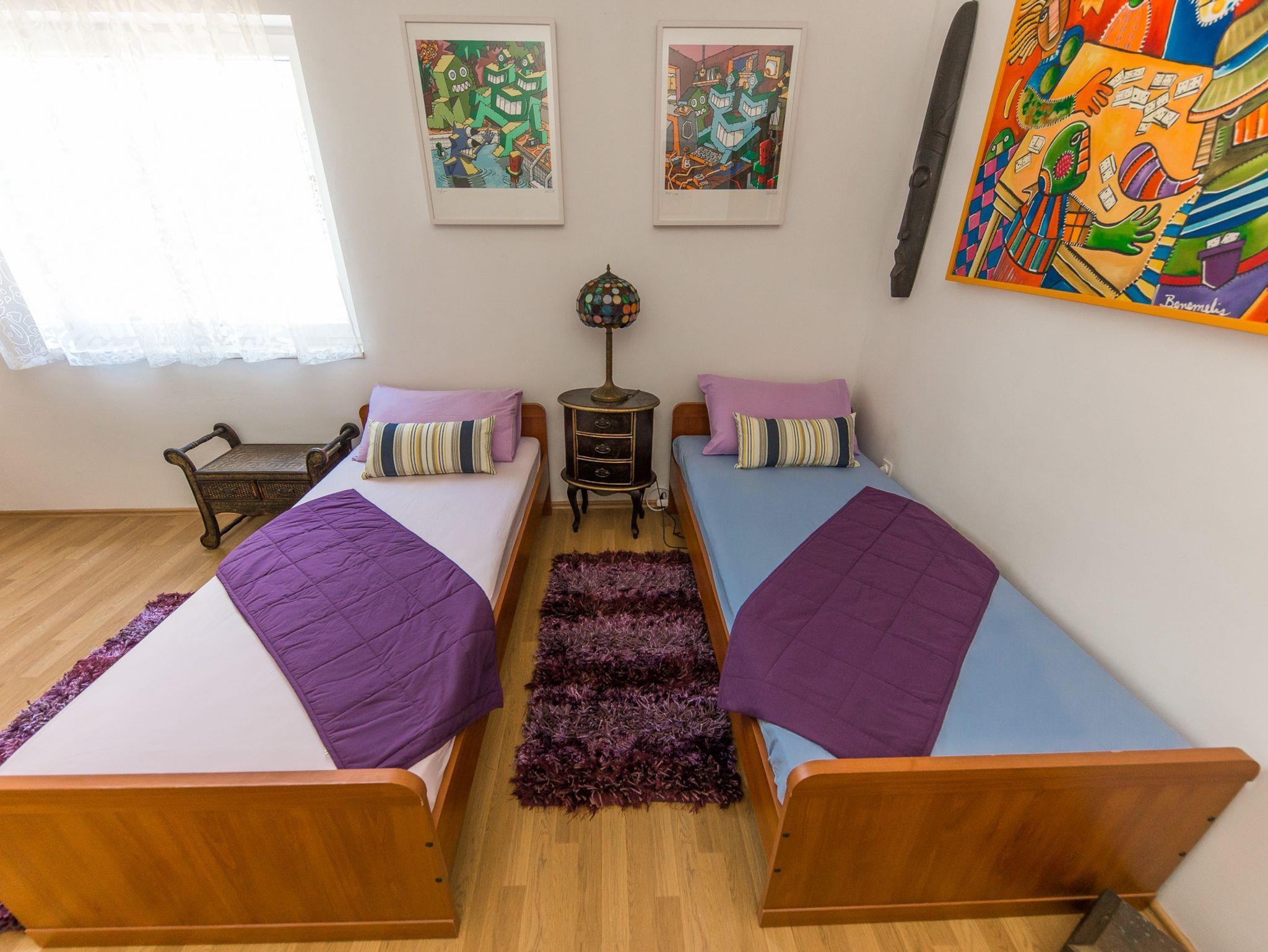 Ferienwohnung bietet Platz für 5 Gäste. Die Betten sind in Schlafzimmern, die es 2 gibt, innerhalb einer Gesamtfläche von 85m2, angeordnet. Die Gäste haben eine eigene Terrasse zur Verfügung, auf der sie in warmen Sommernächten genießen können. Das Apartment bietet Meerblick. Es ist erlaubt, Speisen auf dem Gemeinschafts-Grill vorzubereiten. In der gebuchten Unterkunftseinheit zahlt man am Ort ein Depositum ( der Preis ist an der Internetseite angeführt ). IM PREIS INBEGRIFFEN: Kurtaxe, Endreinigung, Klimatisierung, Parkplatz, Internet, Wäschewaschen, Bootsanlegeplatz, Kinderbett, Bügeleisen, Bügelbrett, Föhn, Sonnenschirm, Liegestühle. VERBINDLICHE ZUSÄTZLICHE KOSTEN: Kaution (200,00 € Einmalzahlung), Aufzahlung für Kurzaufenthalte (prozentualer Zuschlag pro Nächtigungsanzahl: 30% - 1, 20% - 2, 10% - 3). Die Verfügbarkeit zusätzlicher Dienstleistungen in Ihrem reservierten Termin und die Preise derselben (falls nicht aufgeführt) müssen im Voraus überprüft werden. Zusätzliche Dienstleistungen die in der Zahlungsaufforderung nicht aufgeführt sind werden direkt beim Vermieter bezahlt, angenommen der Gast nutzt auch diese. Ermäßigung auf den Grundpreis: Gratistag 14=13 (bei einem Aufenthalt von 14 Tagen oder mehr erhalten Sie einen Gratistag für den Aufenthalt bis 31.12.26).