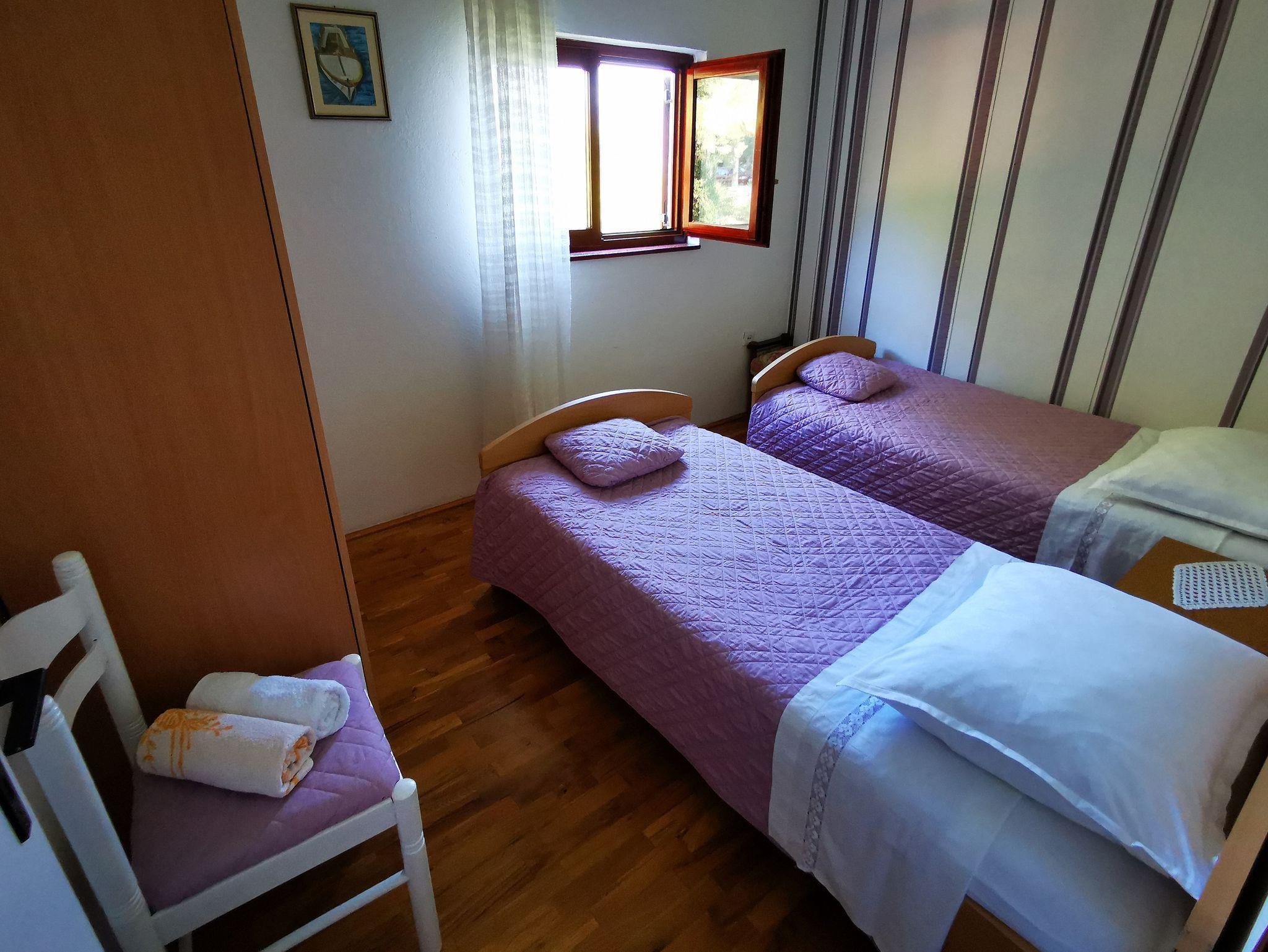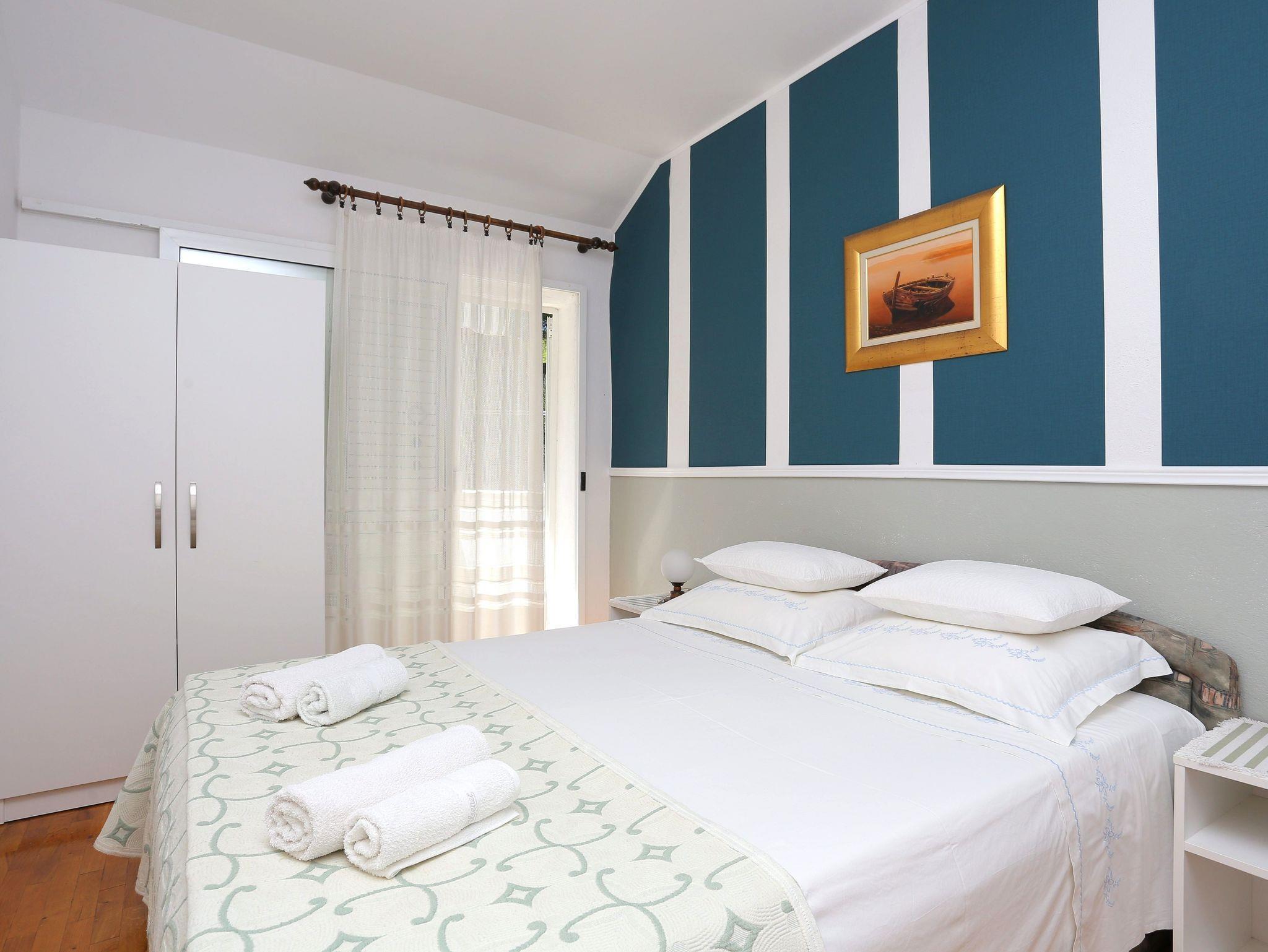 Ferienwohnung bietet Platz für 4 Gäste. Die Betten sind in Schlafzimmern, die es 2 gibt, innerhalb einer Gesamtfläche von 44m2, angeordnet. Die Gäste haben eine eigene Terrasse zur Verfügung, auf der sie in warmen Sommernächten genießen können. Das Apartment bietet Meerblick. Es ist erlaubt, Speisen auf dem Gemeinschafts-Grill vorzubereiten. IM PREIS INBEGRIFFEN: Kurtaxe, Endreinigung, Klimatisierung, Parkplatz, Internet, Bügeleisen, Föhn, Sonnenschirm. VERBINDLICHE ZUSÄTZLICHE KOSTEN: Aufzahlung für Kurzaufenthalte (prozentualer Zuschlag pro Nächtigungsanzahl: 30% - 1, 20% - 2, 10% - 3). Die Verfügbarkeit zusätzlicher Dienstleistungen in Ihrem reservierten Termin und die Preise derselben (falls nicht aufgeführt) müssen im Voraus überprüft werden. Zusätzliche Dienstleistungen die in der Zahlungsaufforderung nicht aufgeführt sind werden direkt beim Vermieter bezahlt, angenommen der Gast nutzt auch diese. Ermäßigung auf den Grundpreis: Gratistag 14=13 (bei einem Aufenthalt von 14 Tagen oder mehr erhalten Sie einen Gratistag für den Aufenthalt bis 31.12.26).
