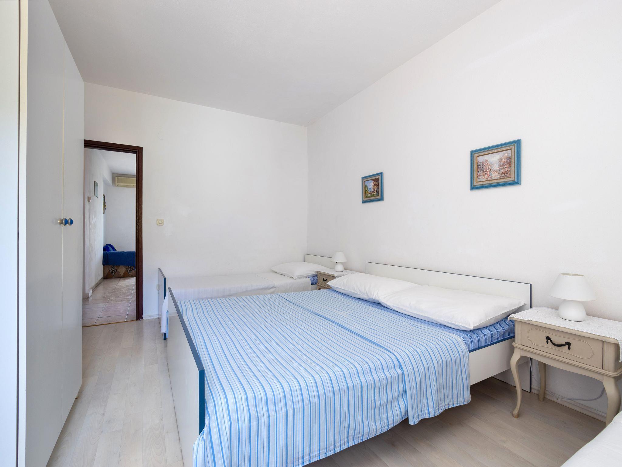 Ferienwohnung bietet Platz für 4 Gäste. Die Betten sind in Schlafzimmern, die es 1 gibt, innerhalb einer Gesamtfläche von 38m2, angeordnet. Die Gäste haben eine eigene Terrasse zur Verfügung, auf der sie in warmen Sommernächten genießen können. Das Apartment bietet Meerblick. Es ist erlaubt, Speisen auf dem Gemeinschafts-Grill vorzubereiten. IM PREIS INBEGRIFFEN: Kurtaxe, Endreinigung, Klimatisierung, Parkplatz, Internet, Bügeleisen, Bügelbrett, Föhn. VERBINDLICHE ZUSÄTZLICHE KOSTEN: Aufzahlung für Kurzaufenthalte (prozentualer Zuschlag pro Nächtigungsanzahl: 30% - 1, 20% - 2, 10% - 3). UNVERBINDLICHE ZUSÄTZLICHE KOSTEN: Wäschewaschen (5,00 € Waschen). Die Verfügbarkeit zusätzlicher Dienstleistungen in Ihrem reservierten Termin und die Preise derselben (falls nicht aufgeführt) müssen im Voraus überprüft werden. Zusätzliche Dienstleistungen die in der Zahlungsaufforderung nicht aufgeführt sind werden direkt beim Vermieter bezahlt, angenommen der Gast nutzt auch diese.