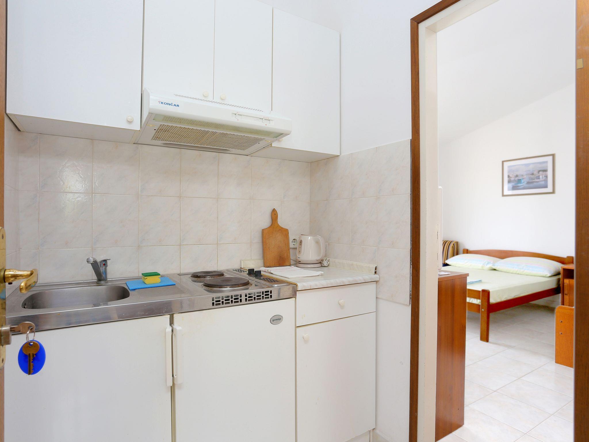 Studio bietet Platz für 3 Gäste. Die Betten sind in Schlafzimmern, die es 1 gibt, innerhalb einer Gesamtfläche von 20m2, angeordnet. Die Gäste haben einen eigenen Balkon zur Verfügung, auf der sie in warmen Sommernächten genießen können. Das Studio-Apartment bietet Meerblick. Es ist erlaubt, Speisen auf dem Gemeinschafts-Grill vorzubereiten. In der Unterkunftseinheit besteht die Möglichkeit des Mitbringens von Haustieren gegen Aufpreis. IM PREIS INBEGRIFFEN: Kurtaxe, Endreinigung, Klimatisierung, Parkplatz, Internet, Kinderbett, Zusatzbett. VERBINDLICHE ZUSÄTZLICHE KOSTEN: Aufzahlung für Kurzaufenthalte (prozentualer Zuschlag pro Nächtigungsanzahl: 30% - 1, 20% - 2, 10% - 3). UNVERBINDLICHE ZUSÄTZLICHE KOSTEN: Haustiere (18,00 € pro Nacht). Die Verfügbarkeit zusätzlicher Dienstleistungen in Ihrem reservierten Termin und die Preise derselben (falls nicht aufgeführt) müssen im Voraus überprüft werden. Zusätzliche Dienstleistungen die in der Zahlungsaufforderung nicht aufgeführt sind werden direkt beim Vermieter bezahlt, angenommen der Gast nutzt auch diese. Ermäßigung auf den Grundpreis: Gratistag 14=13 (bei einem Aufenthalt von 14 Tagen oder mehr erhalten Sie einen Gratistag für den Aufenthalt bis 31.12.26).