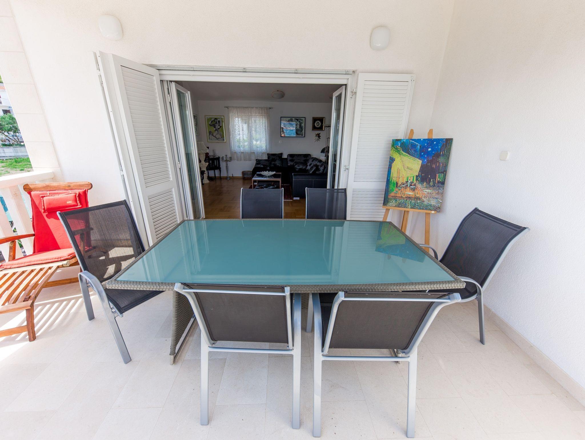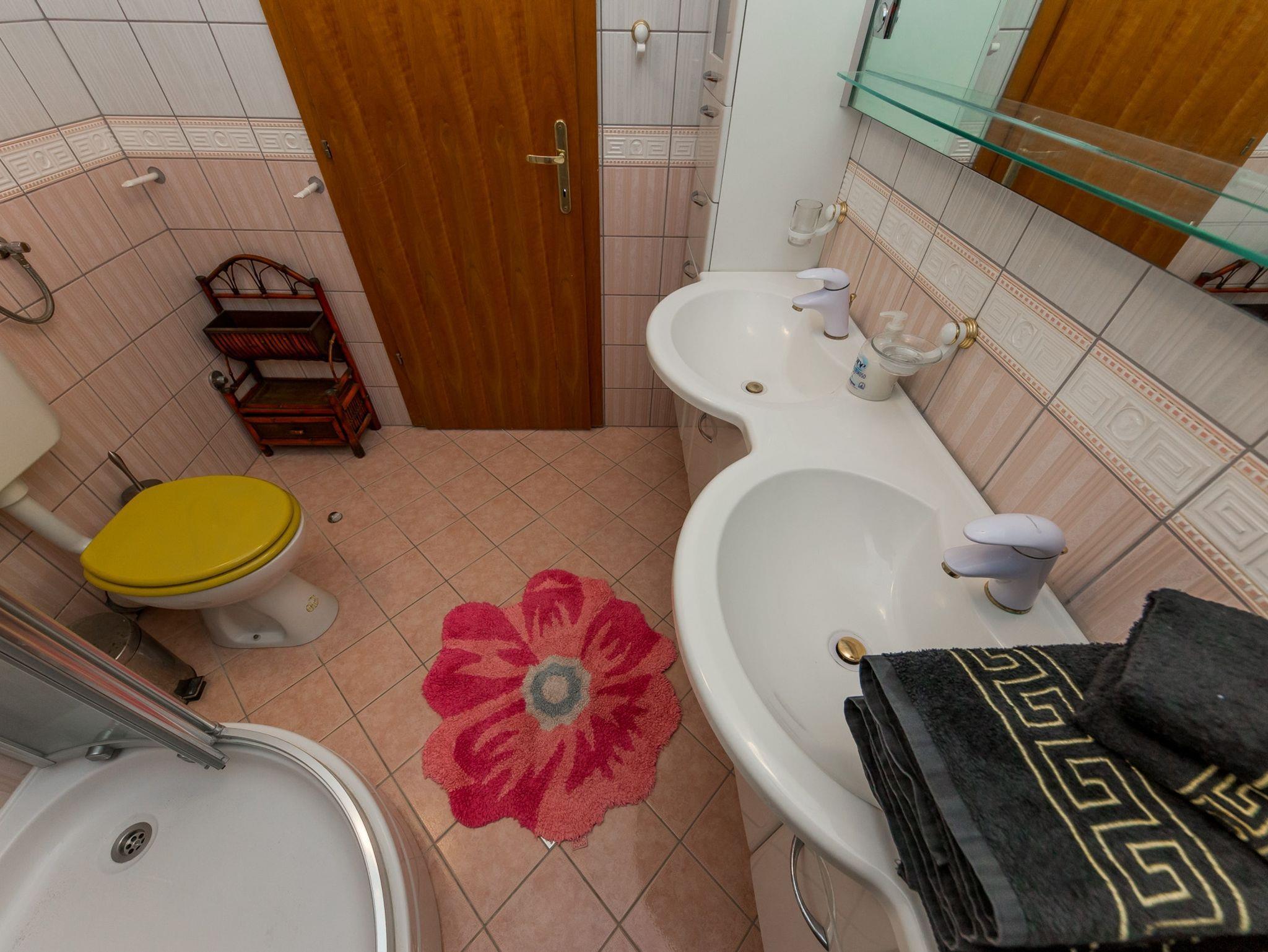 Ferienwohnung bietet Platz für 4 Gäste. Die Betten sind in Schlafzimmern, die es 2 gibt, innerhalb einer Gesamtfläche von 85m2, angeordnet. Die Gäste haben eine eigene Terrasse zur Verfügung, auf der sie in warmen Sommernächten genießen können. Das Apartment bietet Meerblick. Es ist erlaubt, Speisen auf dem Gemeinschafts-Grill vorzubereiten. In der gebuchten Unterkunftseinheit zahlt man am Ort ein Depositum ( der Preis ist an der Internetseite angeführt ). IM PREIS INBEGRIFFEN: Kurtaxe, Endreinigung, Klimatisierung, Parkplatz, Internet, Wäschewaschen, Bootsanlegeplatz, Kinderbett, Bügeleisen, Bügelbrett, Föhn, Sonnenschirm, Liegestühle. VERBINDLICHE ZUSÄTZLICHE KOSTEN: Kaution (200,00 € Einmalzahlung), Aufzahlung für Kurzaufenthalte (prozentualer Zuschlag pro Nächtigungsanzahl: 30% - 1, 20% - 2, 10% - 3). Die Verfügbarkeit zusätzlicher Dienstleistungen in Ihrem reservierten Termin und die Preise derselben (falls nicht aufgeführt) müssen im Voraus überprüft werden. Zusätzliche Dienstleistungen die in der Zahlungsaufforderung nicht aufgeführt sind werden direkt beim Vermieter bezahlt, angenommen der Gast nutzt auch diese. Ermäßigung auf den Grundpreis: Gratistag 14=13 (bei einem Aufenthalt von 14 Tagen oder mehr erhalten Sie einen Gratistag für den Aufenthalt bis 31.12.26).