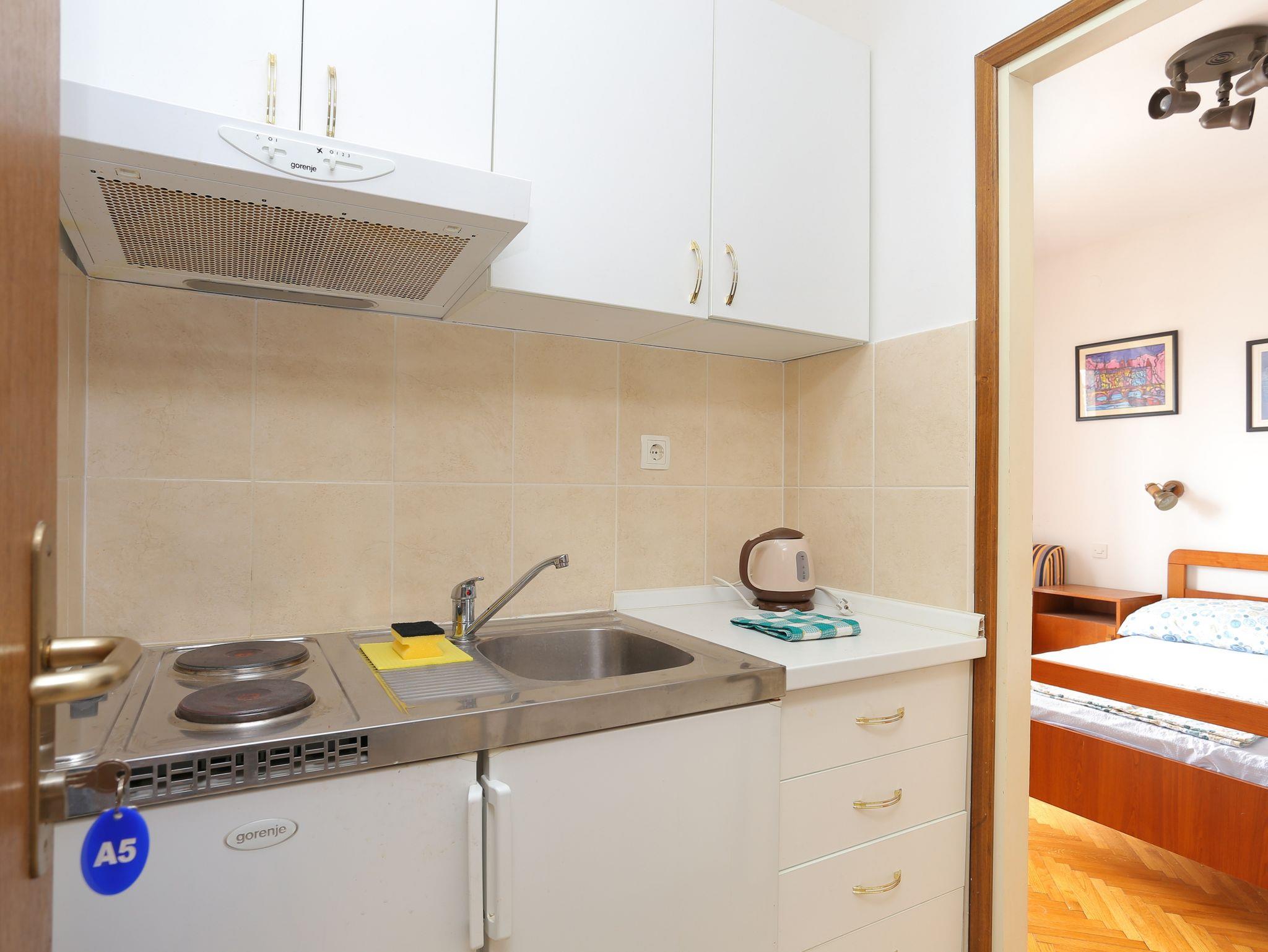 Studio bietet Platz für 3 Gäste. Die Betten sind in Schlafzimmern, die es 1 gibt, innerhalb einer Gesamtfläche von 20m2, angeordnet. Die Gäste haben einen eigenen Balkon zur Verfügung, auf der sie in warmen Sommernächten genießen können. Das Studio-Apartment bietet Meerblick. Es ist erlaubt, Speisen auf dem Gemeinschafts-Grill vorzubereiten. In der Unterkunftseinheit besteht die Möglichkeit des Mitbringens von Haustieren gegen Aufpreis. IM PREIS INBEGRIFFEN: Kurtaxe, Endreinigung, Klimatisierung, Parkplatz, Internet, Kinderbett, Zusatzbett. VERBINDLICHE ZUSÄTZLICHE KOSTEN: Aufzahlung für Kurzaufenthalte (prozentualer Zuschlag pro Nächtigungsanzahl: 30% - 1, 20% - 2, 10% - 3). UNVERBINDLICHE ZUSÄTZLICHE KOSTEN: Haustiere (18,00 € pro Nacht). Die Verfügbarkeit zusätzlicher Dienstleistungen in Ihrem reservierten Termin und die Preise derselben (falls nicht aufgeführt) müssen im Voraus überprüft werden. Zusätzliche Dienstleistungen die in der Zahlungsaufforderung nicht aufgeführt sind werden direkt beim Vermieter bezahlt, angenommen der Gast nutzt auch diese. Ermäßigung auf den Grundpreis: Gratistag 14=13 (bei einem Aufenthalt von 14 Tagen oder mehr erhalten Sie einen Gratistag für den Aufenthalt bis 31.12.26).