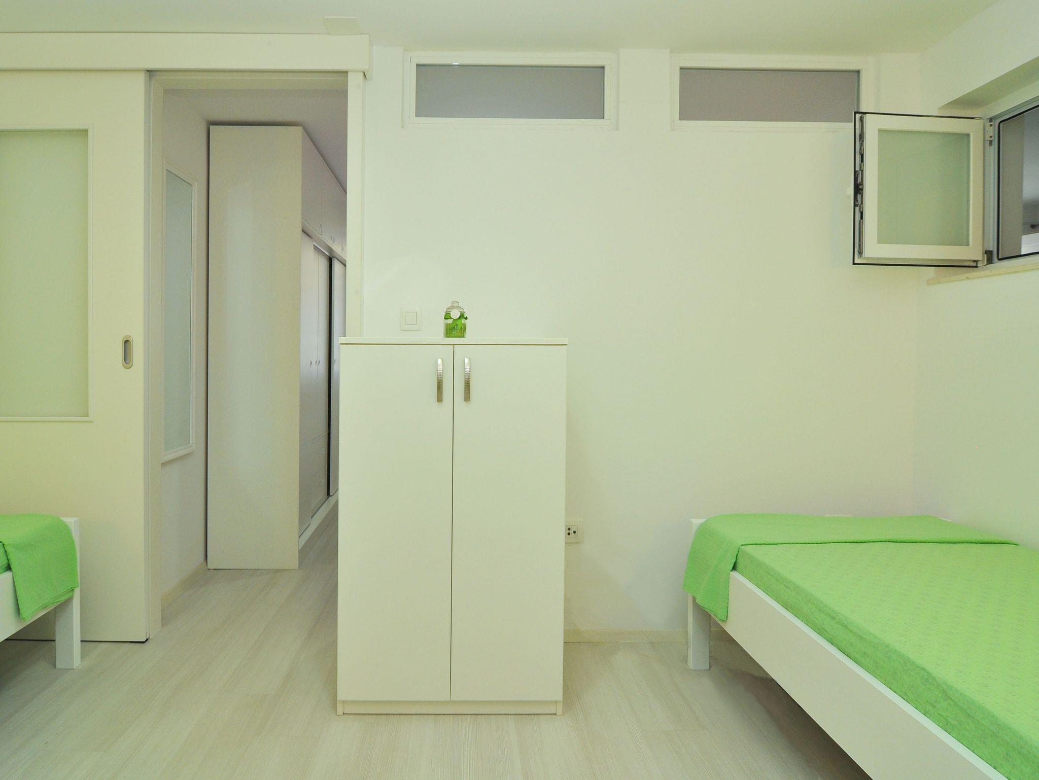 Ferienwohnung bietet Platz für 5 Gäste. Die Betten sind in Schlafzimmern, die es 2 gibt, und in Esszimmer, innerhalb einer Gesamtfläche von 40m2, angeordnet. Die Gäste haben eine eigene Terrasse zur Verfügung, auf der sie in warmen Sommernächten genießen können. Das Apartment bietet Meerblick. Es ist erlaubt, Speisen auf dem Gemeinschafts-Grill vorzubereiten. In der Unterkunftseinheit besteht die Möglichkeit des Mitbringens von Haustieren gegen Aufpreis. IM PREIS INBEGRIFFEN: Kurtaxe, Endreinigung, Klimatisierung, Parkplatz, Internet, Bootsanlegeplatz, Bügeleisen, Bügelbrett, Föhn. UNVERBINDLICHE ZUSÄTZLICHE KOSTEN: Haustiere (5,00 € pro Nacht). Die Verfügbarkeit zusätzlicher Dienstleistungen in Ihrem reservierten Termin und die Preise derselben (falls nicht aufgeführt) müssen im Voraus überprüft werden. Zusätzliche Dienstleistungen die in der Zahlungsaufforderung nicht aufgeführt sind werden direkt beim Vermieter bezahlt, angenommen der Gast nutzt auch diese.