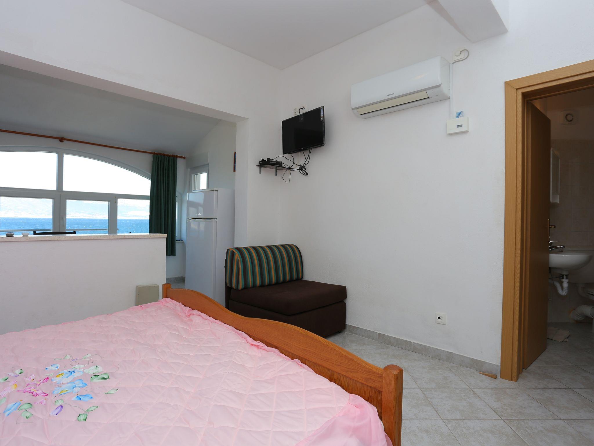 Studio bietet Platz für 3 Gäste. Die Betten sind in Schlafzimmern, die es 1 gibt, innerhalb einer Gesamtfläche von 26m2, angeordnet. Die Gäste haben einen eigenen Balkon zur Verfügung, auf der sie in warmen Sommernächten genießen können. Das Studio-Apartment bietet Meerblick. Es ist erlaubt, Speisen auf dem Gemeinschafts-Grill vorzubereiten. IM PREIS INBEGRIFFEN: Kurtaxe, Endreinigung, Parkplatz, Internet, tragbarer Grill, Sonnenschirm, Liegestühle. VERBINDLICHE ZUSÄTZLICHE KOSTEN: Aufzahlung für Kurzaufenthalte (prozentualer Zuschlag pro Nächtigungsanzahl: 30% - 1, 20% - 2, 10% - 3). UNVERBINDLICHE ZUSÄTZLICHE KOSTEN: Klimatisierung (5,00 € pro Nacht), Bootsanlegeplatz (5,00 € pro Nacht). Die Verfügbarkeit zusätzlicher Dienstleistungen in Ihrem reservierten Termin und die Preise derselben (falls nicht aufgeführt) müssen im Voraus überprüft werden. Zusätzliche Dienstleistungen die in der Zahlungsaufforderung nicht aufgeführt sind werden direkt beim Vermieter bezahlt, angenommen der Gast nutzt auch diese.