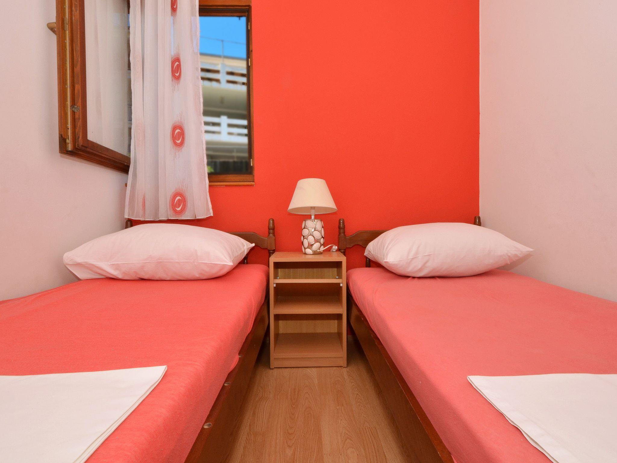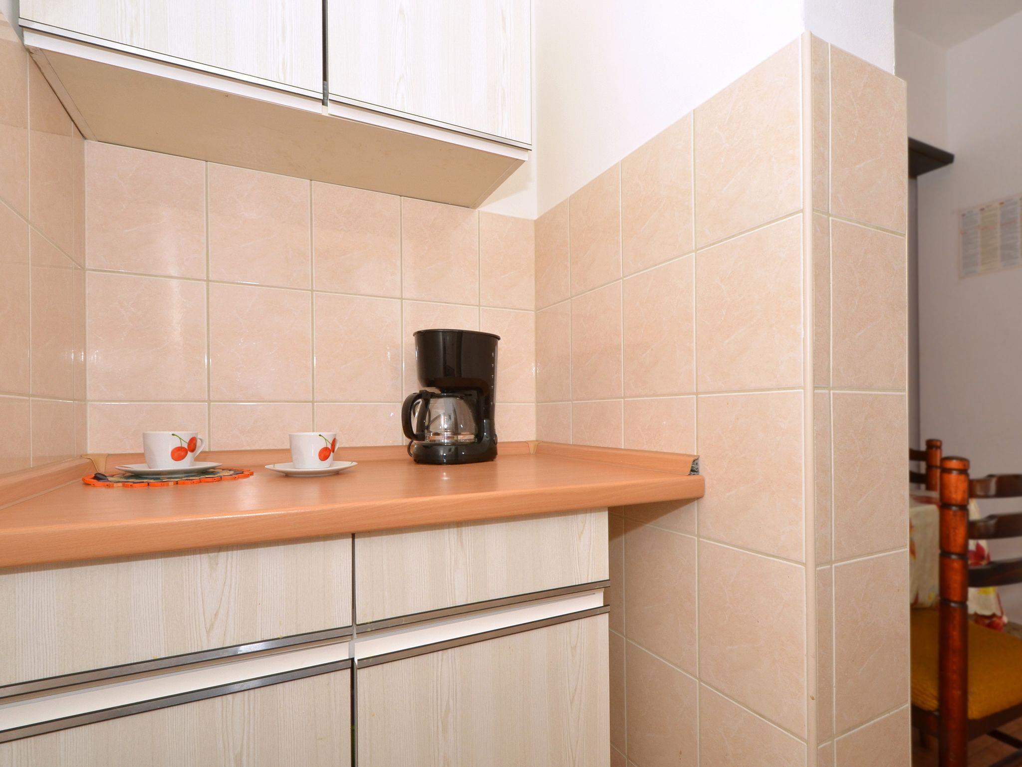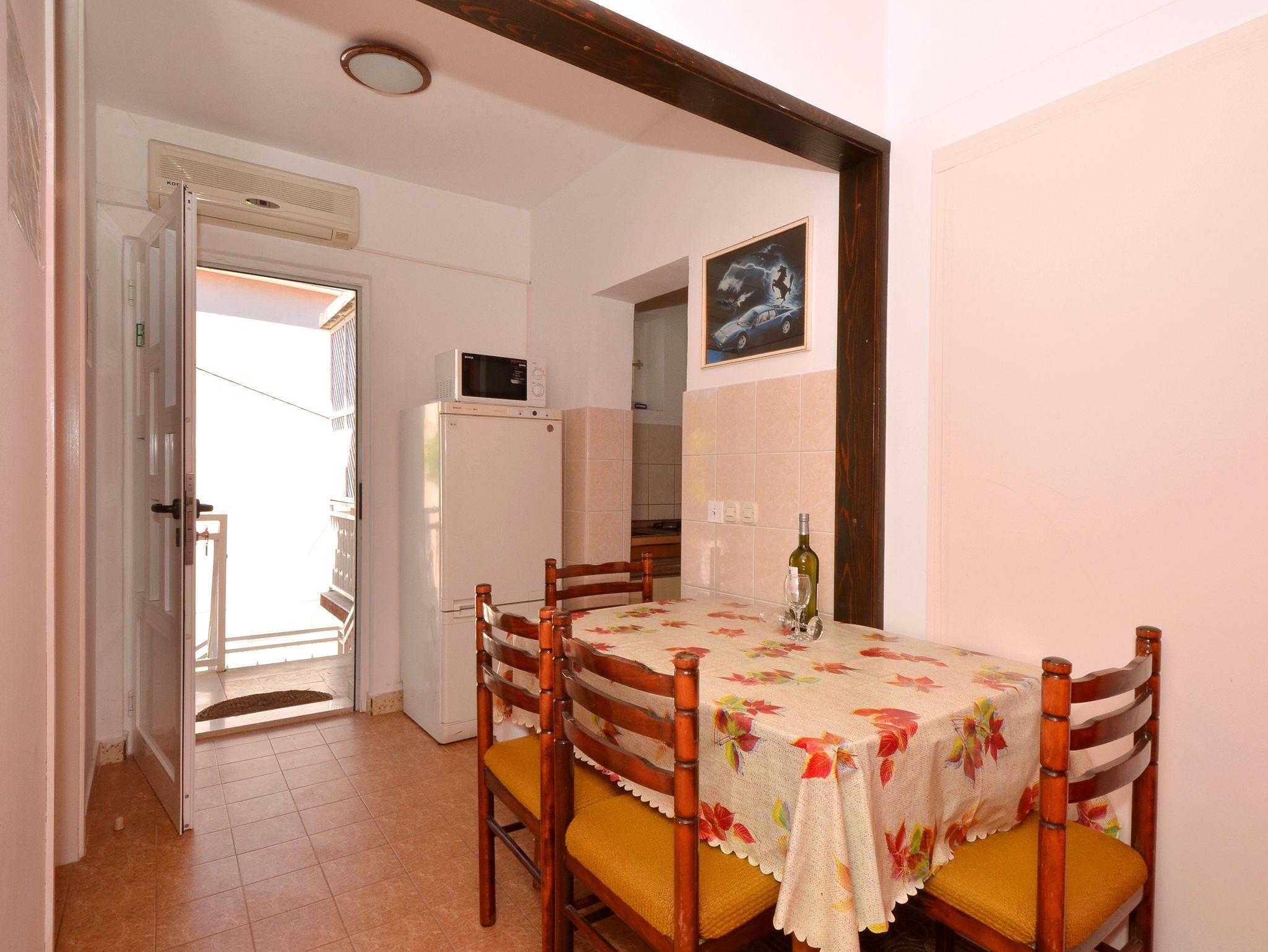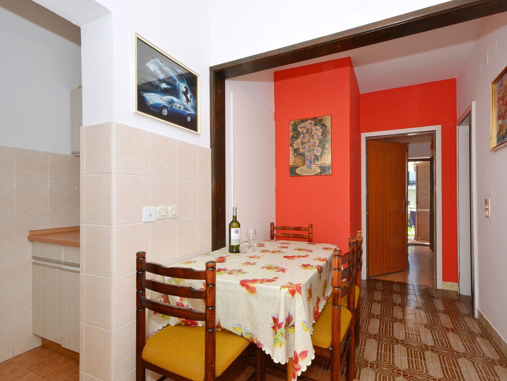 Ferienwohnung bietet Platz für 4 Gäste. Die Betten sind in Schlafzimmern, die es 2 gibt, innerhalb einer Gesamtfläche von 34m2, angeordnet. Die Gäste haben eine eigene Terrasse zur Verfügung, auf der sie in warmen Sommernächten genießen können. Das Apartment bietet Meerblick. Es ist erlaubt, Speisen auf dem Gemeinschafts-Grill vorzubereiten. In der Unterkunftseinheit besteht die Möglichkeit des Mitbringens von Haustieren gegen Aufpreis. IM PREIS INBEGRIFFEN: Kurtaxe, Endreinigung, Klimatisierung, Parkplatz, Garage, Internet, Bootsanlegeplatz, Kinderbett. VERBINDLICHE ZUSÄTZLICHE KOSTEN: Aufzahlung für Kurzaufenthalte (prozentualer Zuschlag pro Nächtigungsanzahl: 30% - 1, 20% - 2, 10% - 3). UNVERBINDLICHE ZUSÄTZLICHE KOSTEN: Haustiere (10,00 € pro Nacht). Die Verfügbarkeit zusätzlicher Dienstleistungen in Ihrem reservierten Termin und die Preise derselben (falls nicht aufgeführt) müssen im Voraus überprüft werden. Zusätzliche Dienstleistungen die in der Zahlungsaufforderung nicht aufgeführt sind werden direkt beim Vermieter bezahlt, angenommen der Gast nutzt auch diese. Ermäßigung auf den Grundpreis: Gratistag 14=13 (bei einem Aufenthalt von 14 Tagen oder mehr erhalten Sie einen Gratistag für den Aufenthalt bis 31.12.26).