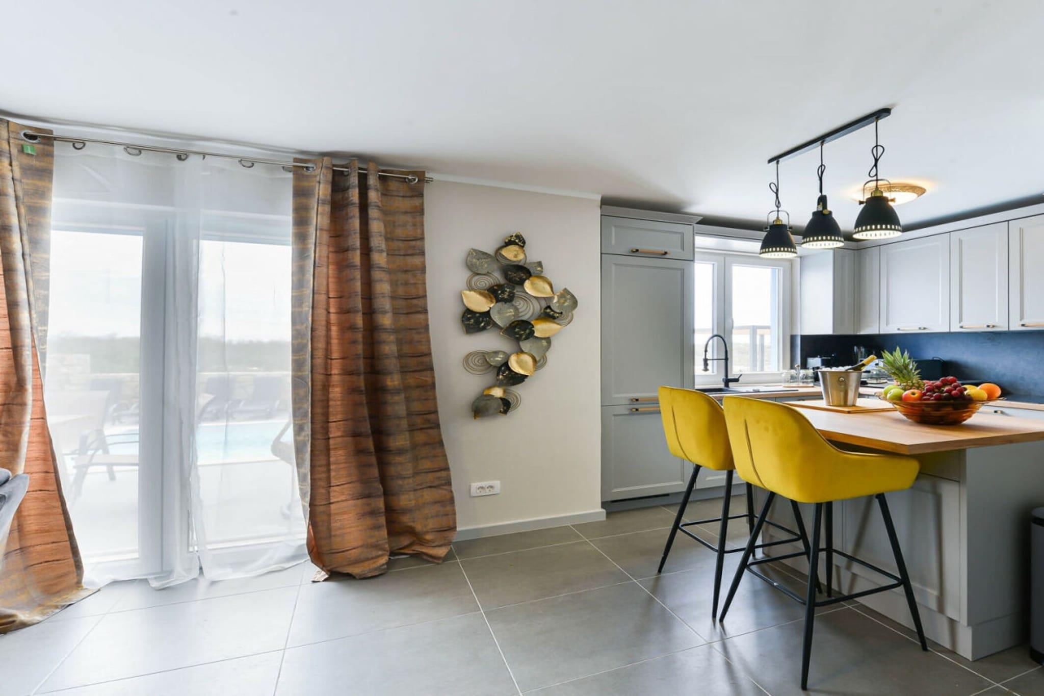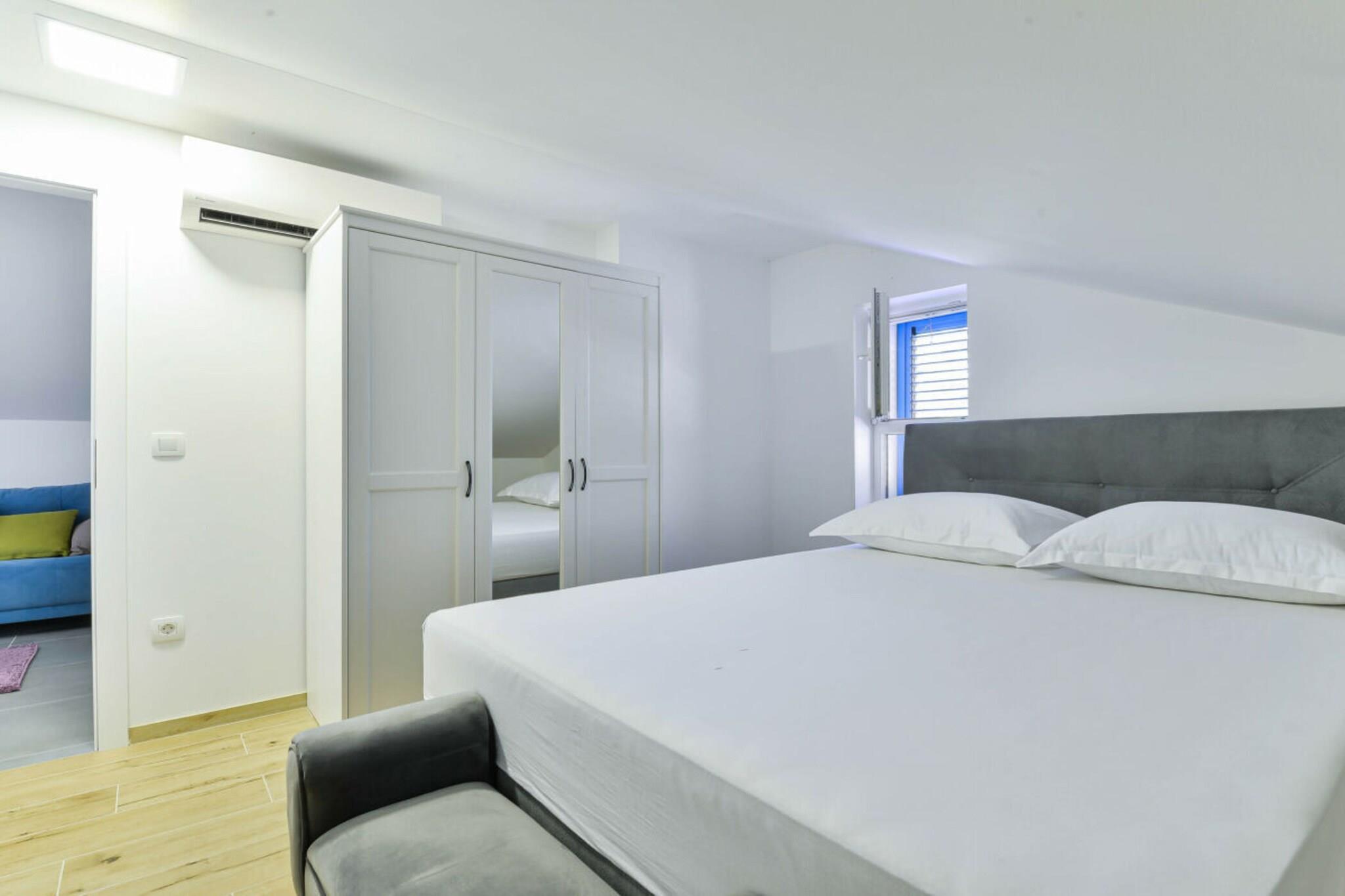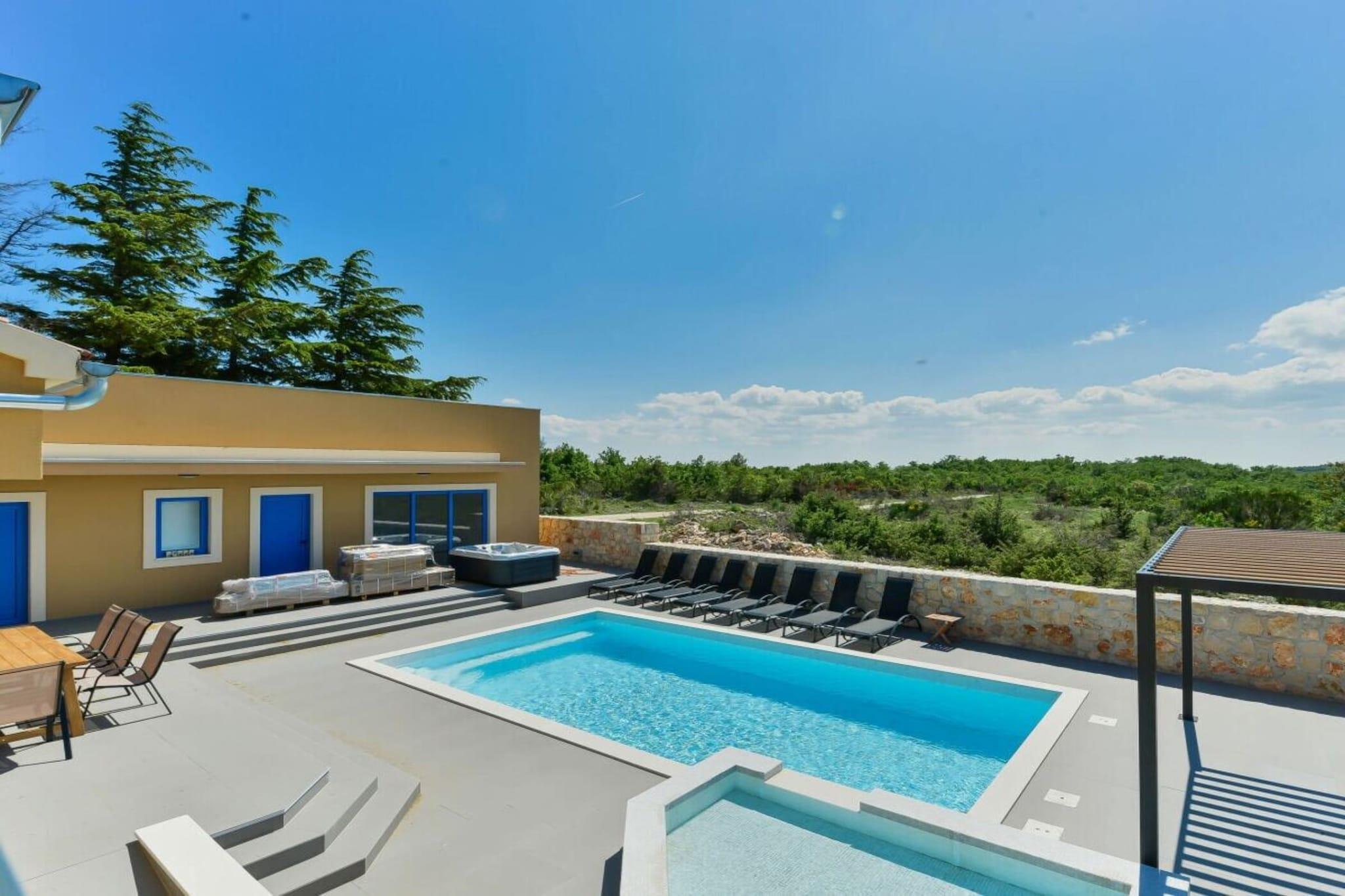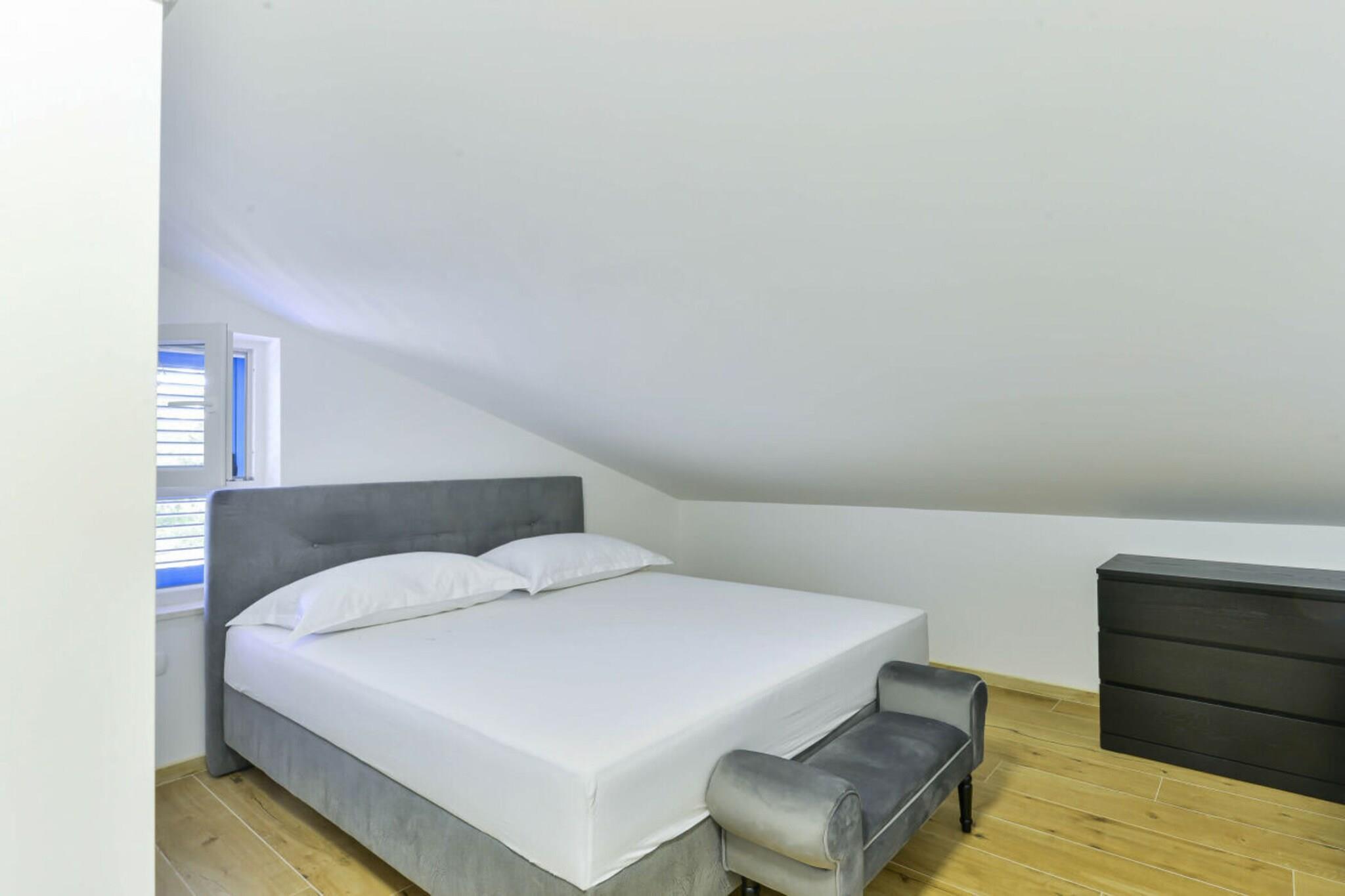 Die Villa bietet eine ruhige Umgebung für einen erholsamen Urlaub, sowie viele Annehmlichkeiten für die Unterhaltung Ihrer Familie und Freunde. Die 200 m2 große Villa befindet sich auf einem 1000 m2 großen Grundstück. Im Erdgeschoss finden Sie einen schönen offenen Wohnbereich, der ein Wohnzimmer, ein Esszimmer und eine voll ausgestattete Küche umfasst, alle mit einem direkten Ausgang zu einer erstaunlichen Terrasse und Poolbereich. Ebenfalls im Erdgeschoss befinden sich 4 Schlafzimmer, von denen 2 über ein eigenes Bad verfügen und die anderen 2 sich ein Bad teilen. Es gibt auch eine zusätzliche Toilette im Erdgeschoss. Die erste Etage ist von außen zugänglich und hat einen eigenen Eingang sowie eine zusätzliche Küchenzeile. Es gibt 2 weitere Schlafzimmer im ersten Stock. Das eine hat ein Doppelbett, das andere ein Doppelbett und ein Zusatzbett. Es gibt ein Badezimmer und eine zusätzliche Toilette. Der Außenbereich bietet eine Vielzahl von Annehmlichkeiten - einen Swimmingpool, einen Kinderpool, einen überdachten Grillplatz, Sonnenliegen, einen überdachten Gartenpavillon, einen Ess- und Sitzbereich im Freien... Die Villa verfügt über eine Sauna, einen Jacuzzi, einen Kinderspielplatz, einen Basketballplatz, SAT-TV, Wi-Fi im gesamten Haus und bietet Parkplätze. Haustiere sind gegen eine zusätzliche Gebühr erlaubt.