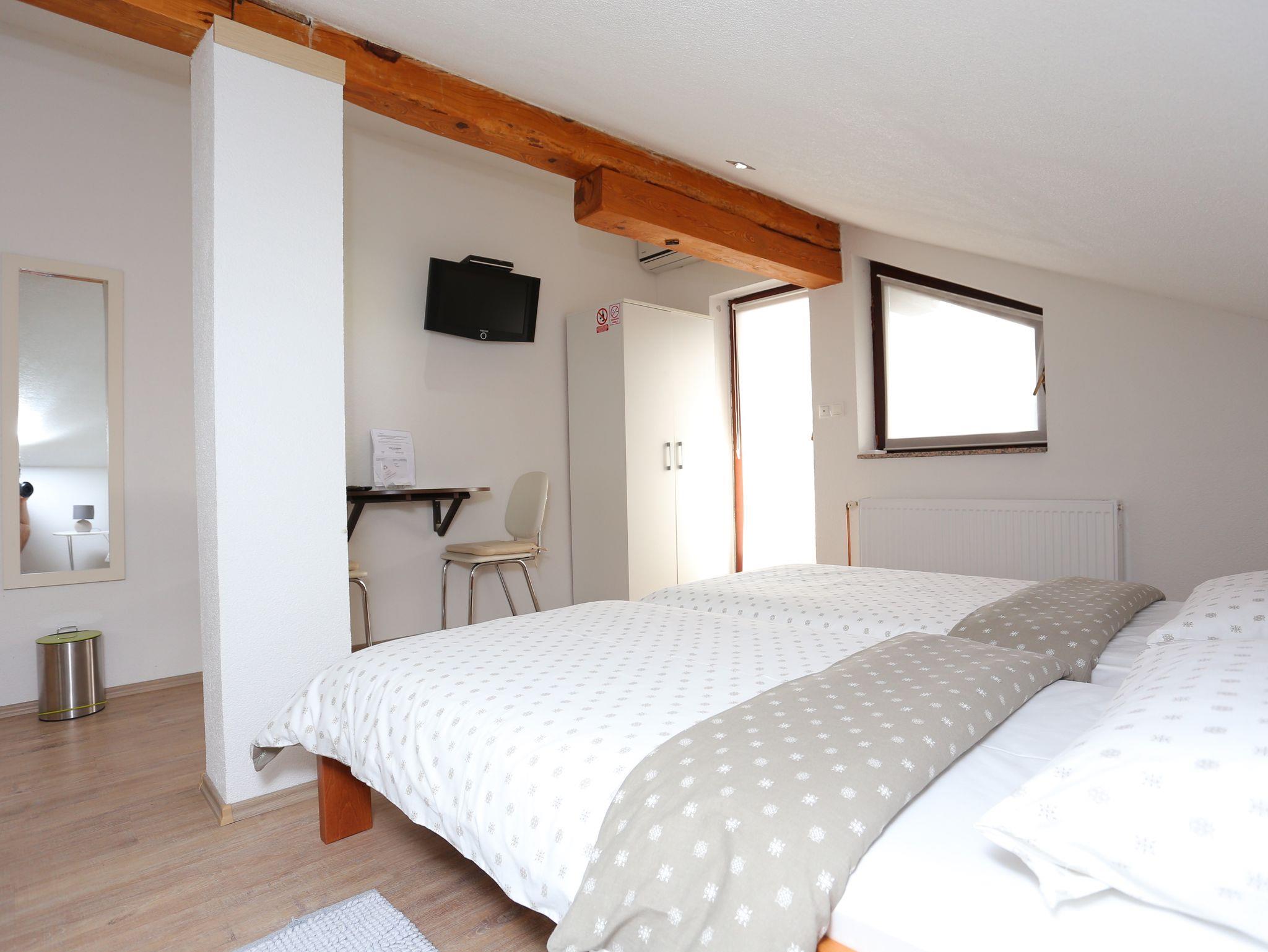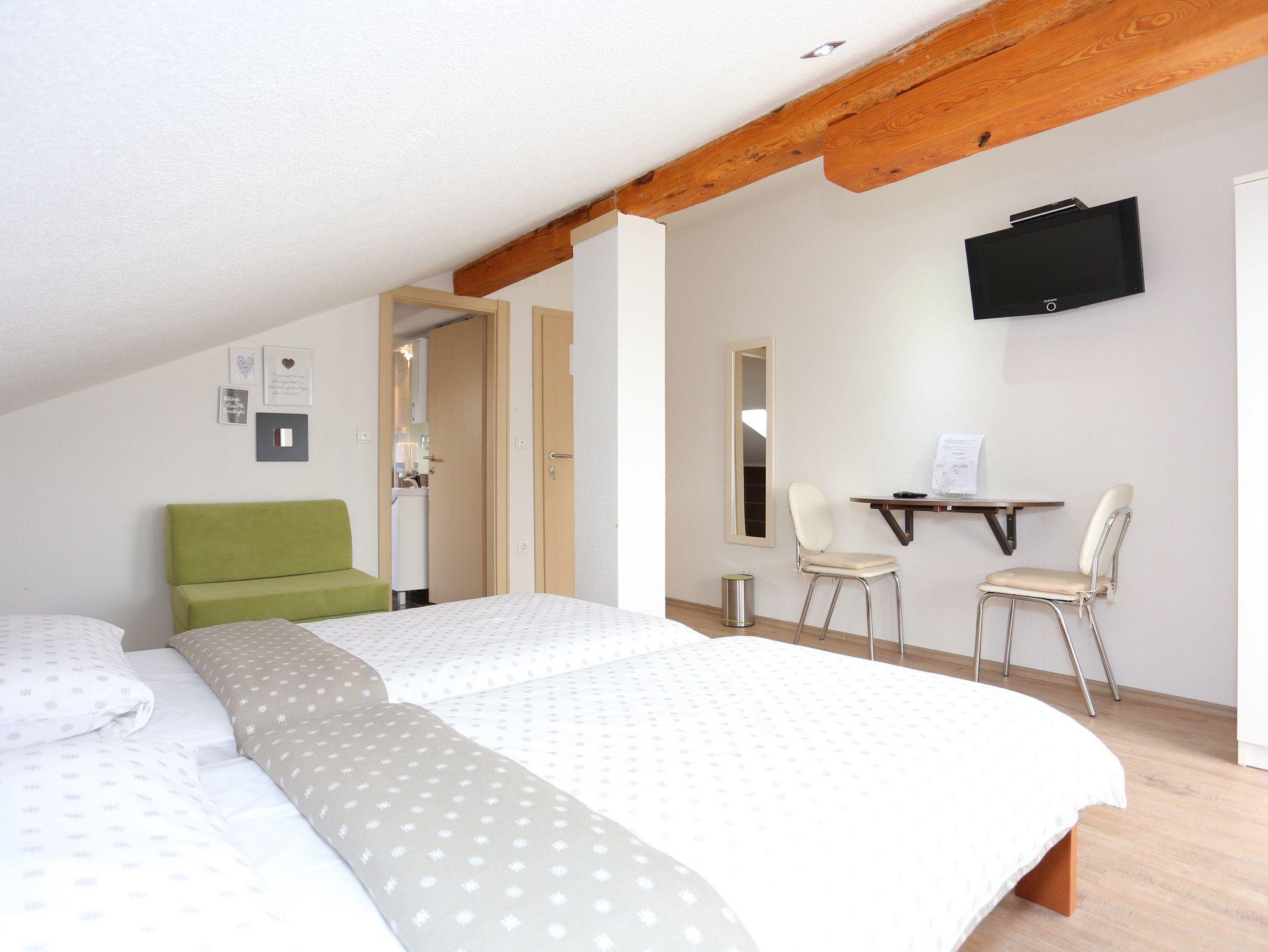 Zimmer bietet Platz für 3 Gäste. Die Betten sind in Schlafzimmern, die es 1 gibt, innerhalb einer Gesamtfläche von 25m2, angeordnet. Die reservierte Unterkunftseinheit ist ein Zimmer mit eigenem Badezimmer ohne die Möglichkeit der Nutzung einer Küche. Die reservierte Unterkunftseinheit verfügt über einen gemeinsamen Balkon. Die reservierte Unterkunftseinheit verfügt über einen gemeinsame Terrasse. IM PREIS INBEGRIFFEN: Kurtaxe, Endreinigung, Klimatisierung, Zentralheizung, Parkplatz, Internet, Kinderbett, Bügeleisen, Bügelbrett, Föhn. UNVERBINDLICHE ZUSÄTZLICHE KOSTEN: Frühstück (5,00 €, 50% Nachlass für Kinder zwischen 4 und 12 Jahren, Kinder bis 4 Jahre sind frei.), Wäschewaschen (5,00 € Waschen). Die Verfügbarkeit zusätzlicher Dienstleistungen in Ihrem reservierten Termin und die Preise derselben (falls nicht aufgeführt) müssen im Voraus überprüft werden. Zusätzliche Dienstleistungen die in der Zahlungsaufforderung nicht aufgeführt sind werden direkt beim Vermieter bezahlt, angenommen der Gast nutzt auch diese.