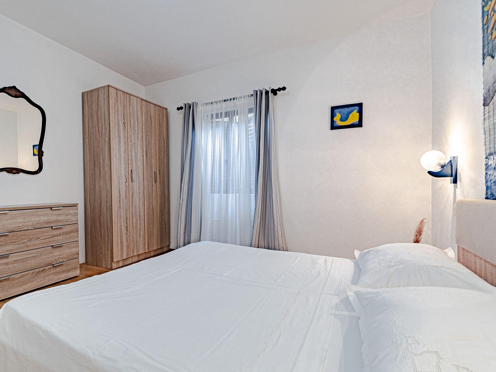 Haus bietet Platz für 8 Gäste. Die Betten sind in Schlafzimmern, die es 3 gibt, und in Wohnzimmer, innerhalb einer Gesamtfläche von 77m2, angeordnet. Die Gäste haben eine eigene Terrasse zur Verfügung, auf der sie in warmen Sommernächten genießen können. Das Haus bietet Meerblick. Es ist erlaubt, Speisen auf dem Gemeinschafts-Grill vorzubereiten. In der Unterkunftseinheit besteht die Möglichkeit des Mitbringens von Haustieren, und die Dienstleistung ist im Preis der Unterkunft enthalten. IM PREIS INBEGRIFFEN: Kurtaxe, Endreinigung, Klimatisierung, Zentralheizung, Parkplatz, Garage, Internet, Haustiere, Bügeleisen, tragbarer Grill. Die Verfügbarkeit zusätzlicher Dienstleistungen in Ihrem reservierten Termin und die Preise derselben (falls nicht aufgeführt) müssen im Voraus überprüft werden. Zusätzliche Dienstleistungen die in der Zahlungsaufforderung nicht aufgeführt sind werden direkt beim Vermieter bezahlt, angenommen der Gast nutzt auch diese.