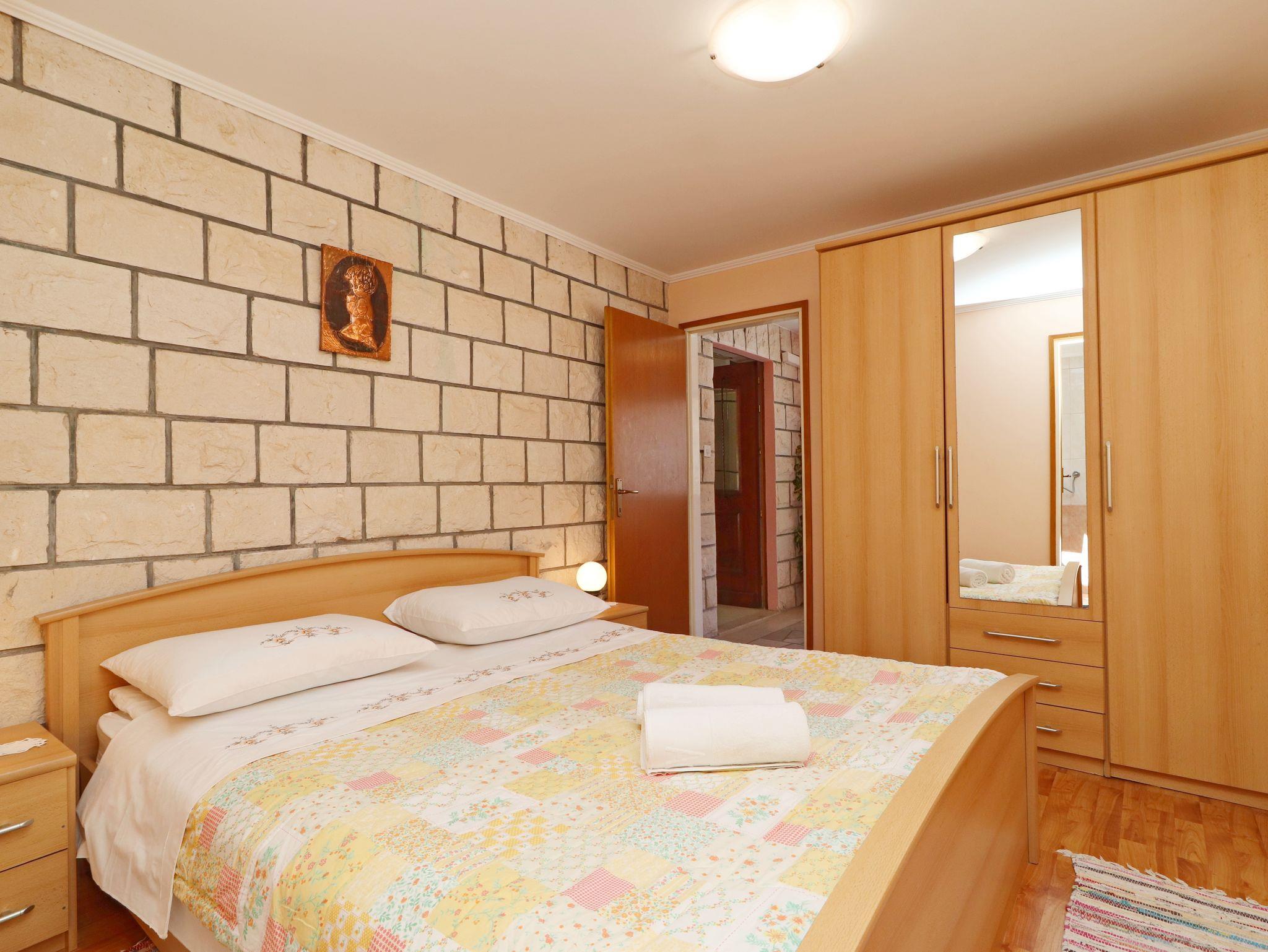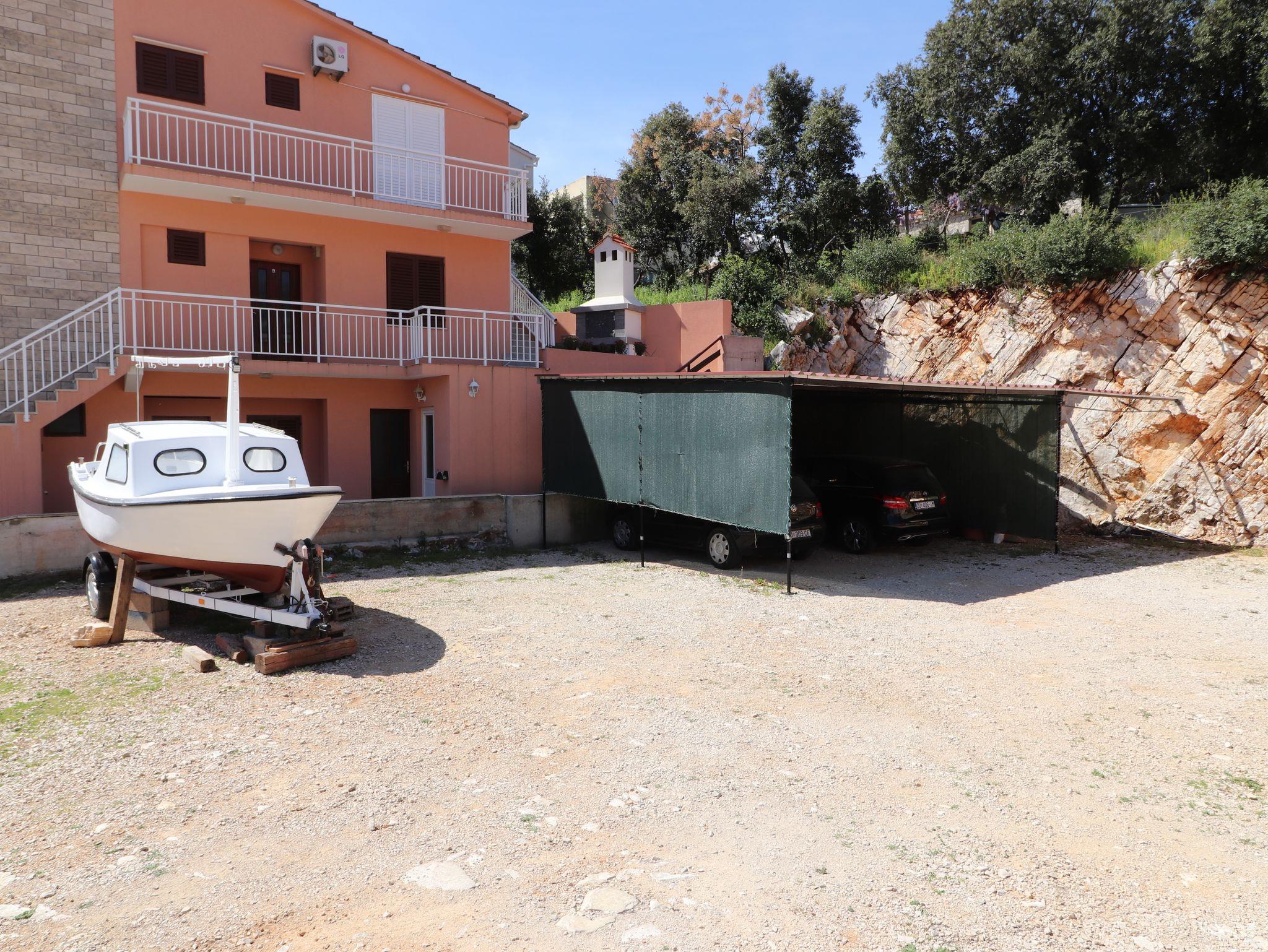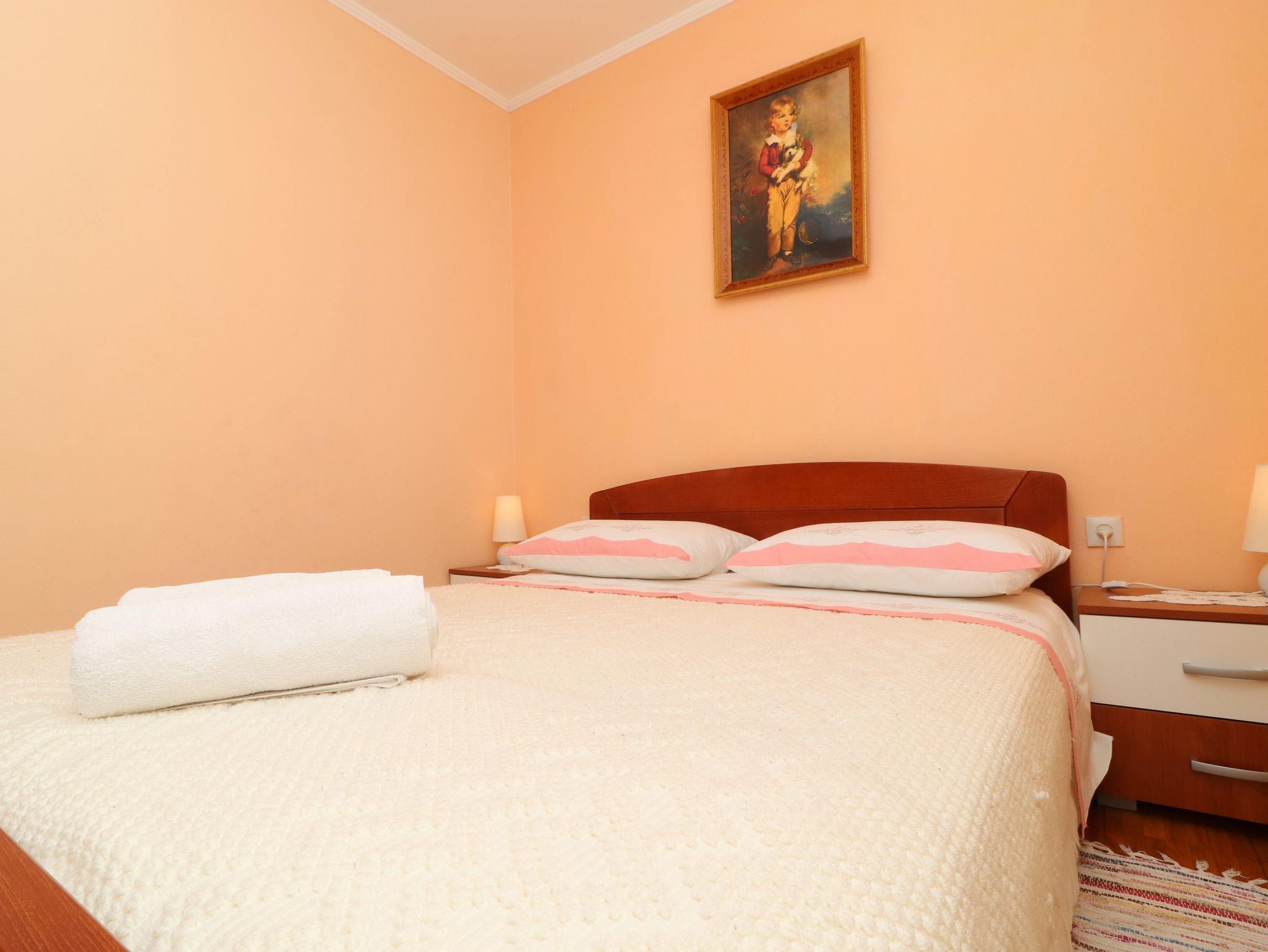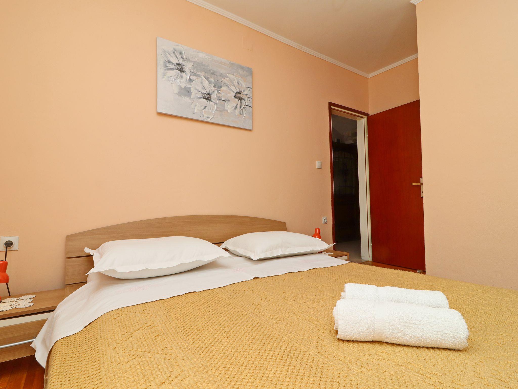 Ferienwohnung bietet Platz für 6 Gäste. Die Betten sind in Schlafzimmern, die es 3 gibt, innerhalb einer Gesamtfläche von 64m2, angeordnet. Die Gäste haben eine eigene Terrasse zur Verfügung, auf der sie in warmen Sommernächten genießen können. Das Apartment bietet Meerblick. Es ist erlaubt, Speisen auf dem Gemeinschafts-Grill vorzubereiten. IM PREIS INBEGRIFFEN: Kurtaxe, Endreinigung, Klimatisierung, Parkplatz, Internet, Bootsanlegeplatz, Bügeleisen, Bügelbrett. VERBINDLICHE ZUSÄTZLICHE KOSTEN: Aufzahlung für Kurzaufenthalte (prozentualer Zuschlag pro Nächtigungsanzahl: 30% - 1, 20% - 2, 10% - 3). Die Verfügbarkeit zusätzlicher Dienstleistungen in Ihrem reservierten Termin und die Preise derselben (falls nicht aufgeführt) müssen im Voraus überprüft werden. Zusätzliche Dienstleistungen die in der Zahlungsaufforderung nicht aufgeführt sind werden direkt beim Vermieter bezahlt, angenommen der Gast nutzt auch diese.