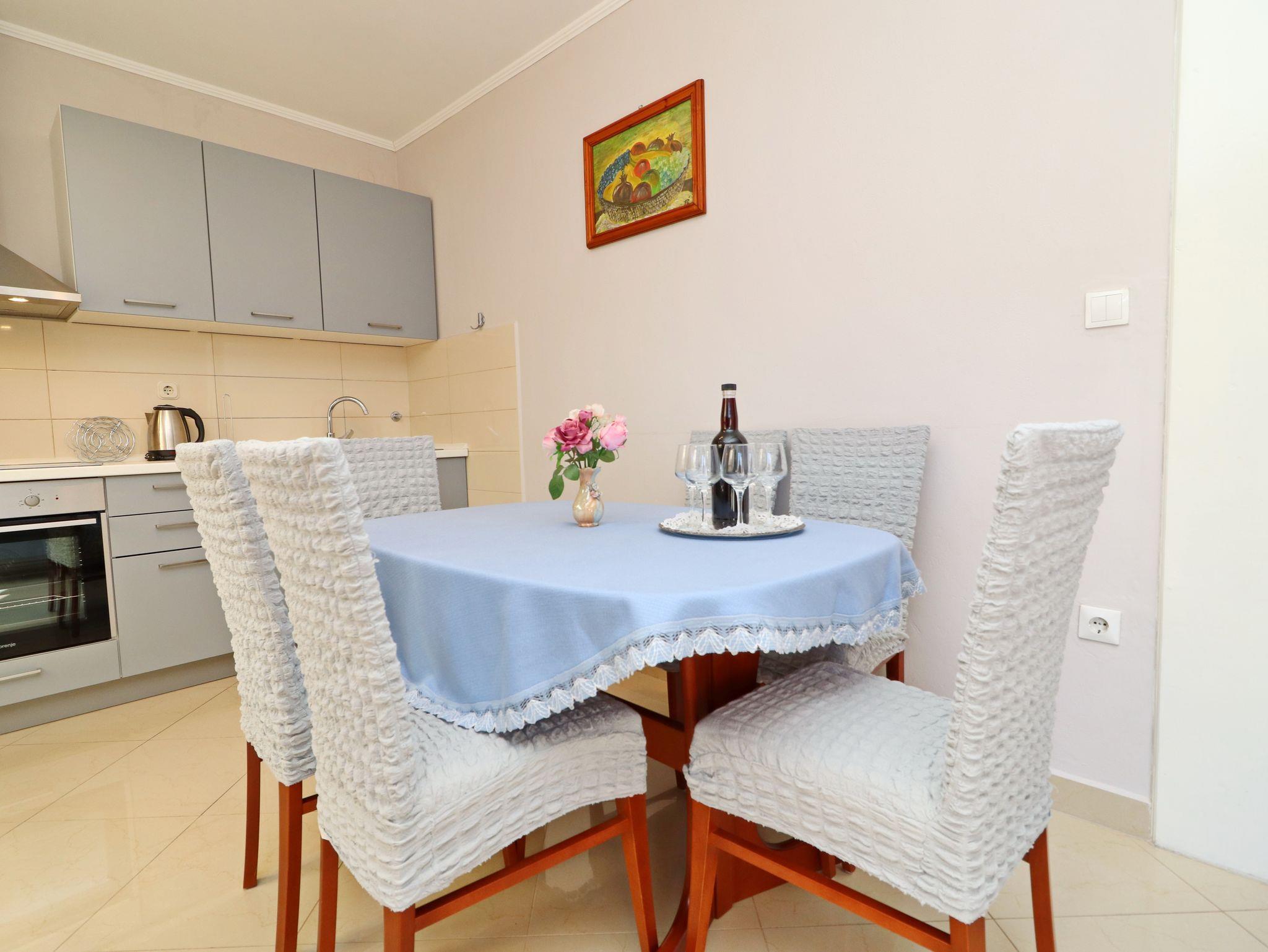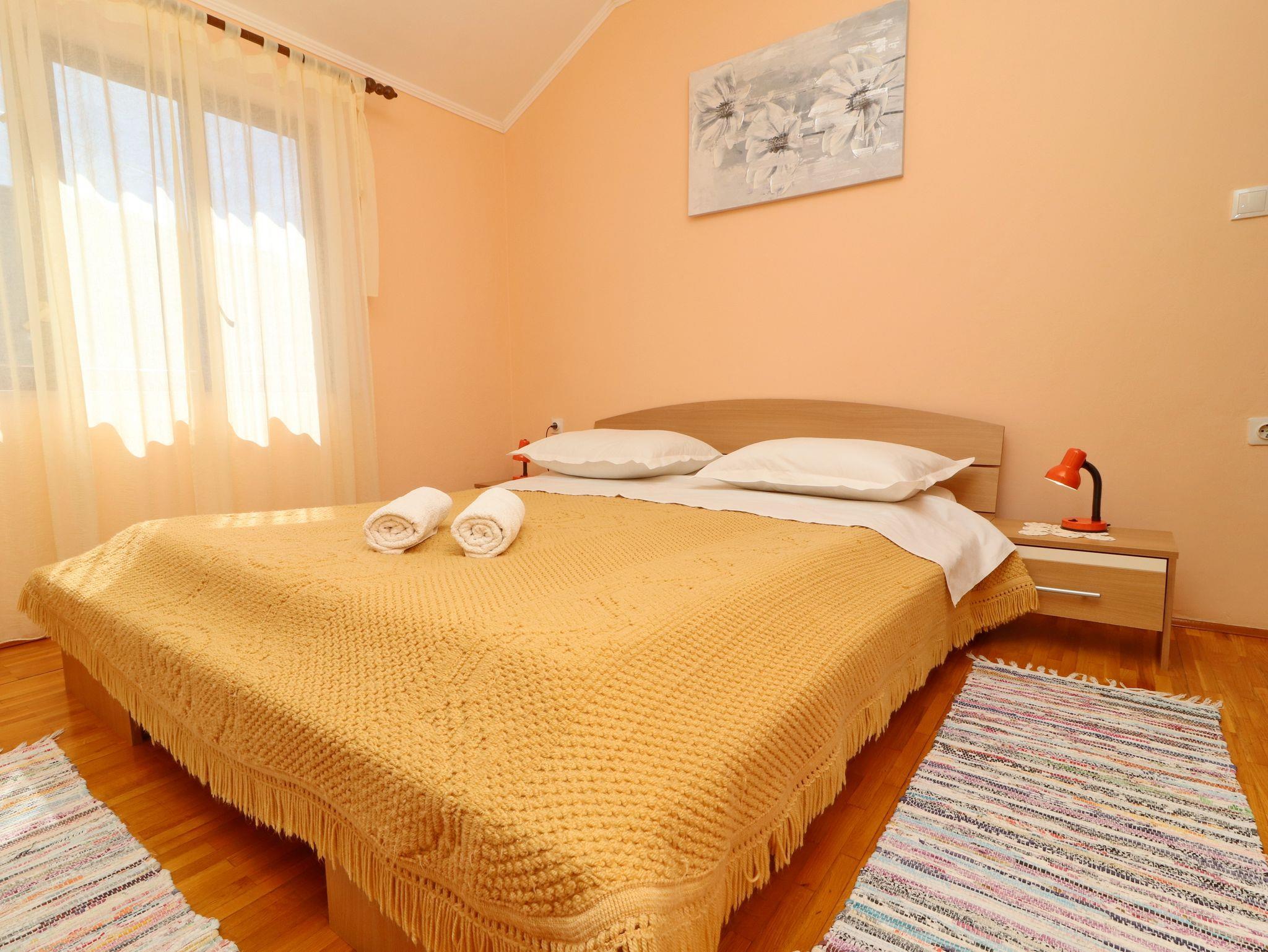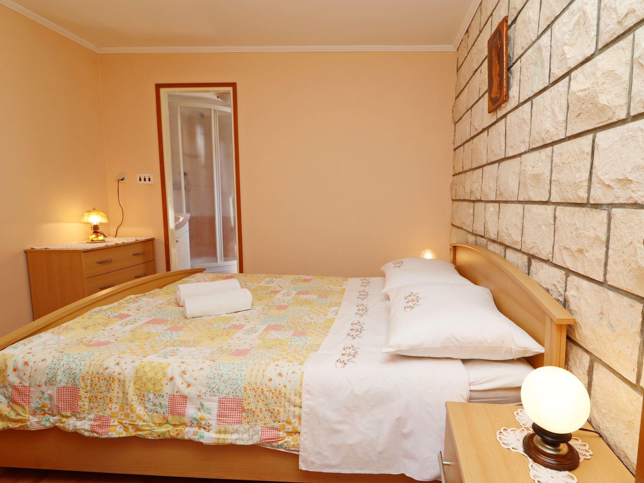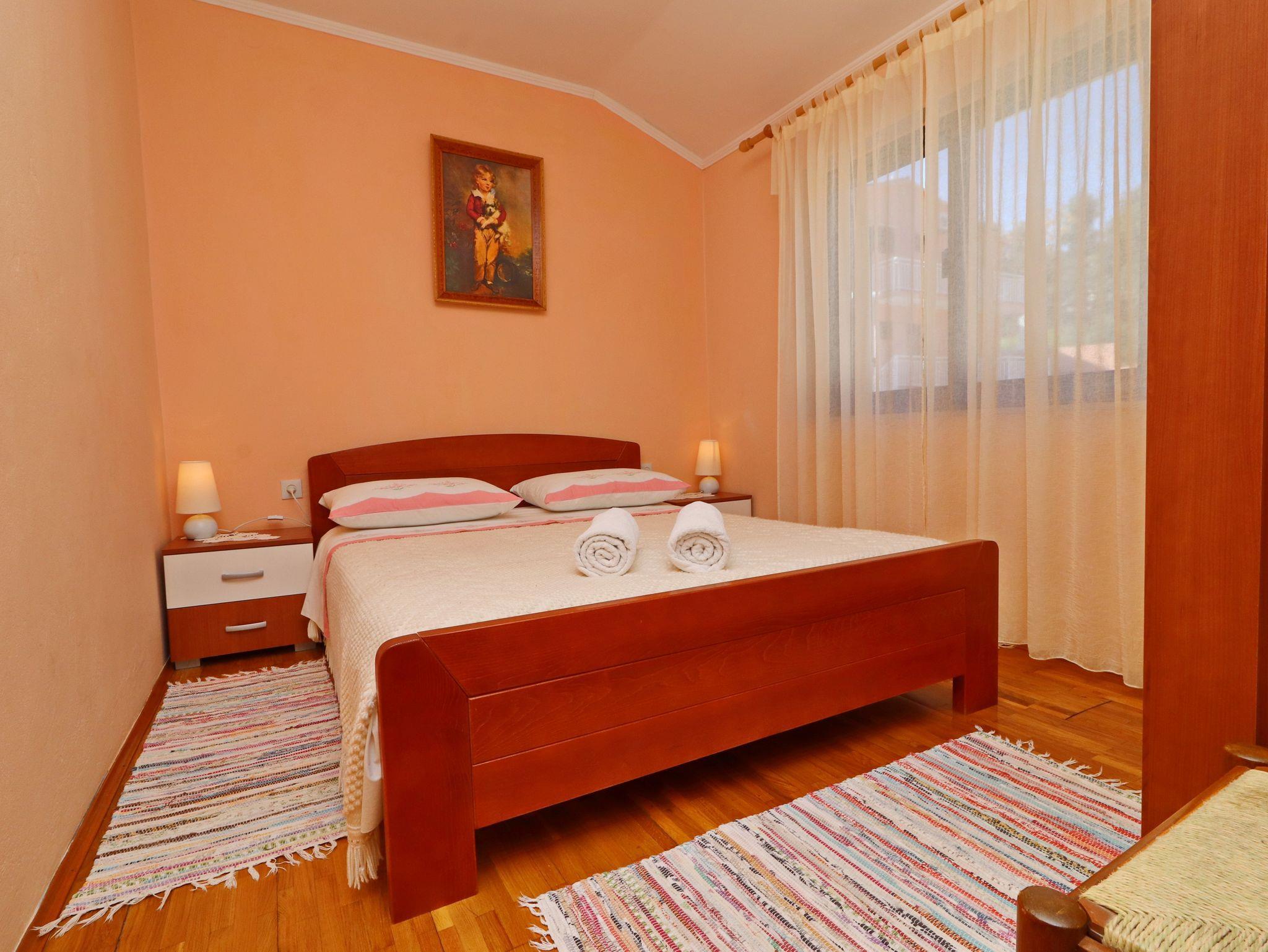 Ferienwohnung bietet Platz für 6 Gäste. Die Betten sind in Schlafzimmern, die es 3 gibt, innerhalb einer Gesamtfläche von 64m2, angeordnet. Die Gäste haben eine eigene Terrasse zur Verfügung, auf der sie in warmen Sommernächten genießen können. Das Apartment bietet Meerblick. Es ist erlaubt, Speisen auf dem Gemeinschafts-Grill vorzubereiten. IM PREIS INBEGRIFFEN: Kurtaxe, Endreinigung, Klimatisierung, Parkplatz, Internet, Bootsanlegeplatz, Bügeleisen, Bügelbrett. VERBINDLICHE ZUSÄTZLICHE KOSTEN: Aufzahlung für Kurzaufenthalte (prozentualer Zuschlag pro Nächtigungsanzahl: 30% - 1, 20% - 2, 10% - 3). Die Verfügbarkeit zusätzlicher Dienstleistungen in Ihrem reservierten Termin und die Preise derselben (falls nicht aufgeführt) müssen im Voraus überprüft werden. Zusätzliche Dienstleistungen die in der Zahlungsaufforderung nicht aufgeführt sind werden direkt beim Vermieter bezahlt, angenommen der Gast nutzt auch diese.