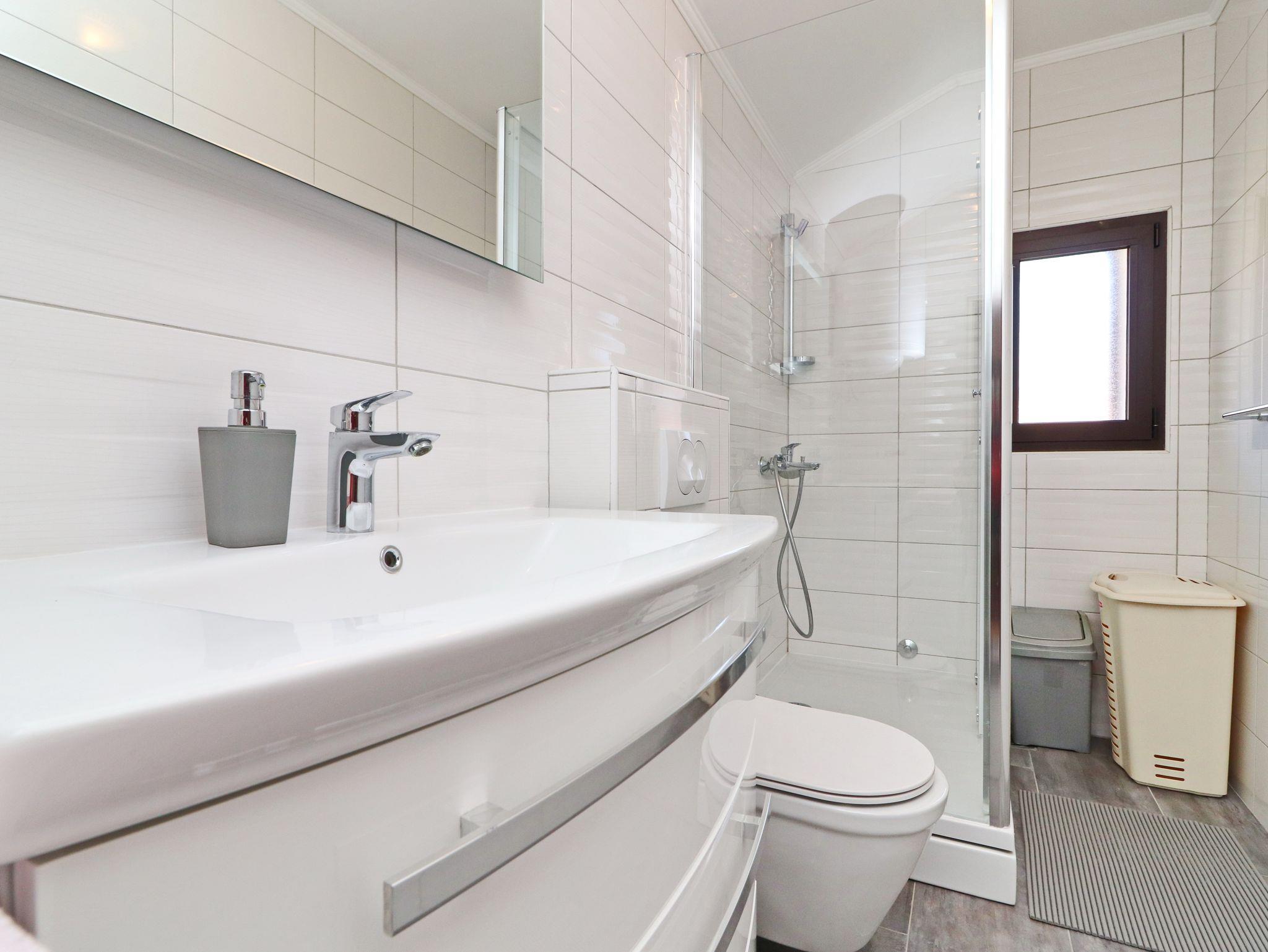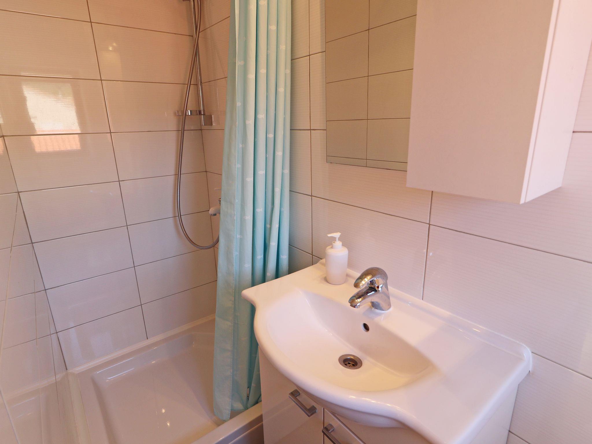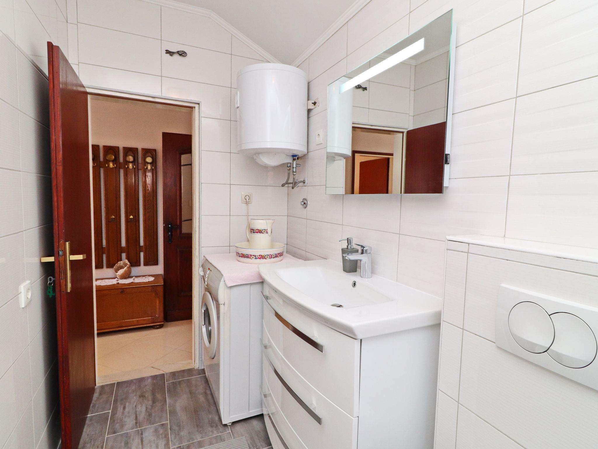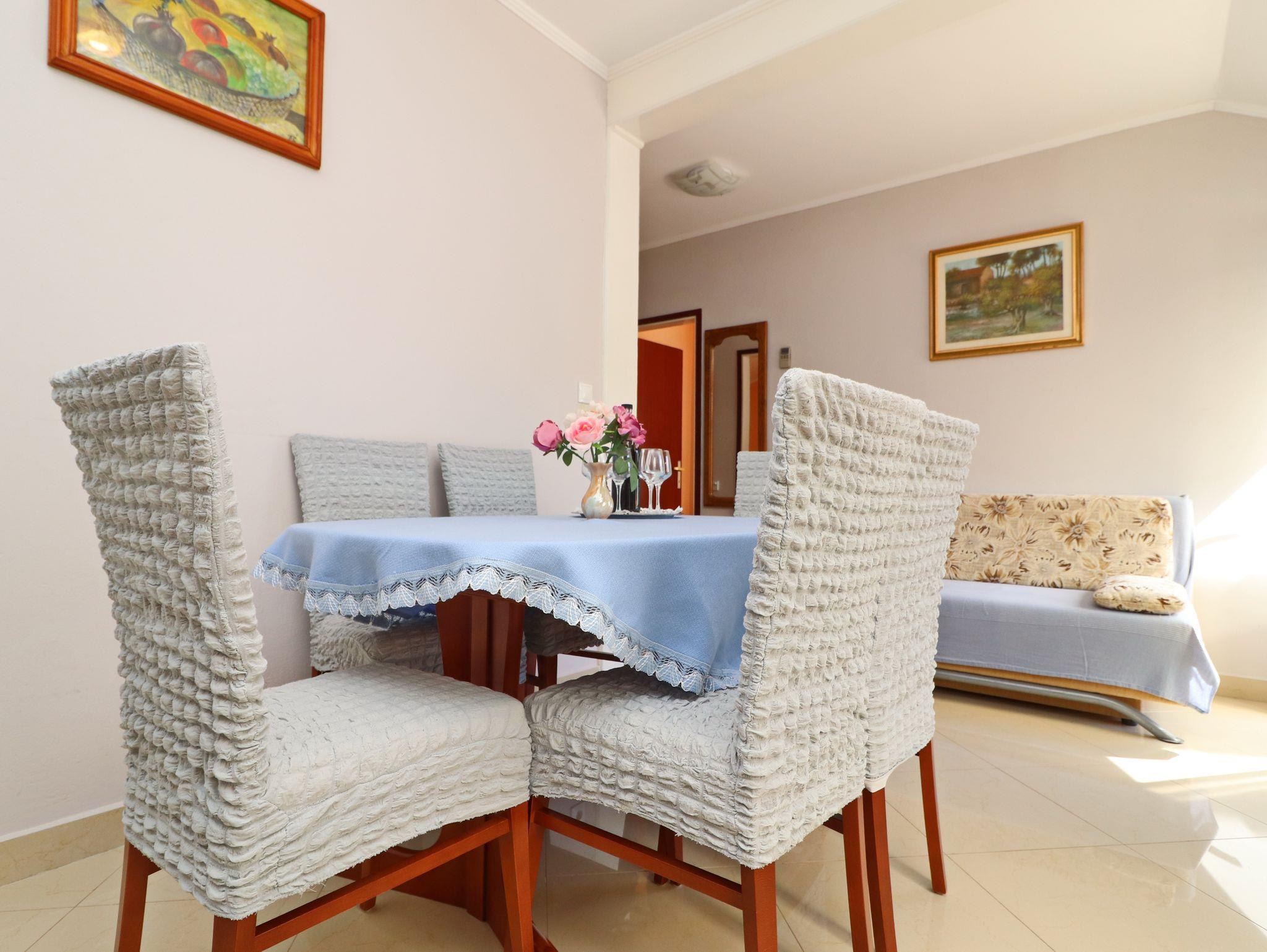 Ferienwohnung bietet Platz für 6 Gäste. Die Betten sind in Schlafzimmern, die es 3 gibt, innerhalb einer Gesamtfläche von 64m2, angeordnet. Die Gäste haben eine eigene Terrasse zur Verfügung, auf der sie in warmen Sommernächten genießen können. Das Apartment bietet Meerblick. Es ist erlaubt, Speisen auf dem Gemeinschafts-Grill vorzubereiten. IM PREIS INBEGRIFFEN: Kurtaxe, Endreinigung, Klimatisierung, Parkplatz, Internet, Bootsanlegeplatz, Bügeleisen, Bügelbrett. VERBINDLICHE ZUSÄTZLICHE KOSTEN: Aufzahlung für Kurzaufenthalte (prozentualer Zuschlag pro Nächtigungsanzahl: 30% - 1, 20% - 2, 10% - 3). Die Verfügbarkeit zusätzlicher Dienstleistungen in Ihrem reservierten Termin und die Preise derselben (falls nicht aufgeführt) müssen im Voraus überprüft werden. Zusätzliche Dienstleistungen die in der Zahlungsaufforderung nicht aufgeführt sind werden direkt beim Vermieter bezahlt, angenommen der Gast nutzt auch diese.
