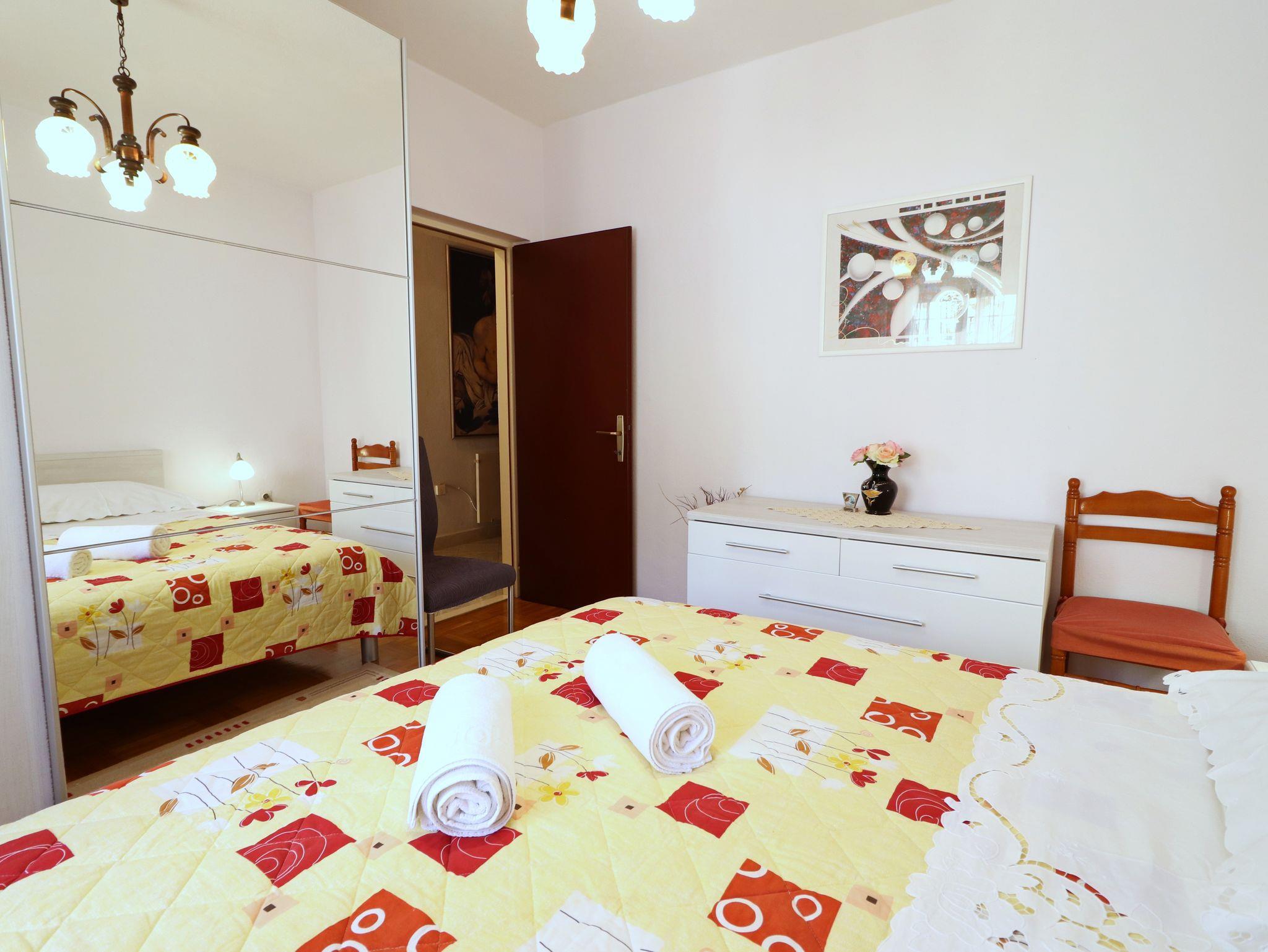 Ferienwohnung bietet Platz für 7 Gäste. Die Betten sind in Schlafzimmern, die es 3 gibt, und in Wohnzimmer, innerhalb einer Gesamtfläche von 85m2, angeordnet. Die Gäste haben eine eigene Terrasse zur Verfügung, auf der sie in warmen Sommernächten genießen können. Das Apartment bietet Meerblick. Es ist erlaubt, Speisen auf dem Gemeinschafts-Grill vorzubereiten. IM PREIS INBEGRIFFEN: Kurtaxe, Endreinigung, Klimatisierung, Parkplatz, Internet, Bootsanlegeplatz, Bügeleisen, Bügelbrett. VERBINDLICHE ZUSÄTZLICHE KOSTEN: Aufzahlung für Kurzaufenthalte (prozentualer Zuschlag pro Nächtigungsanzahl: 30% - 1, 20% - 2, 10% - 3). Die Verfügbarkeit zusätzlicher Dienstleistungen in Ihrem reservierten Termin und die Preise derselben (falls nicht aufgeführt) müssen im Voraus überprüft werden. Zusätzliche Dienstleistungen die in der Zahlungsaufforderung nicht aufgeführt sind werden direkt beim Vermieter bezahlt, angenommen der Gast nutzt auch diese.